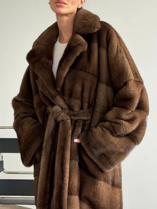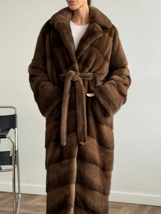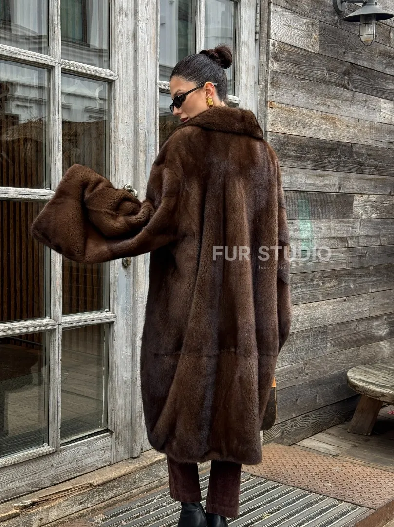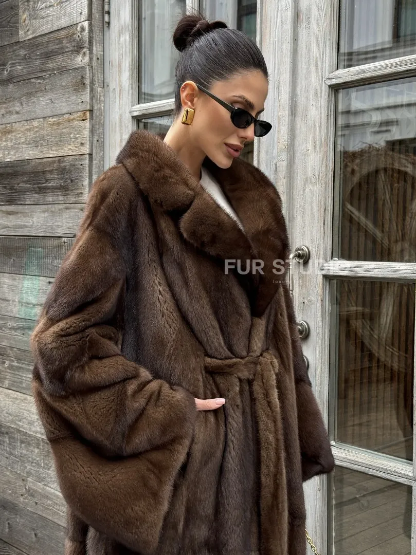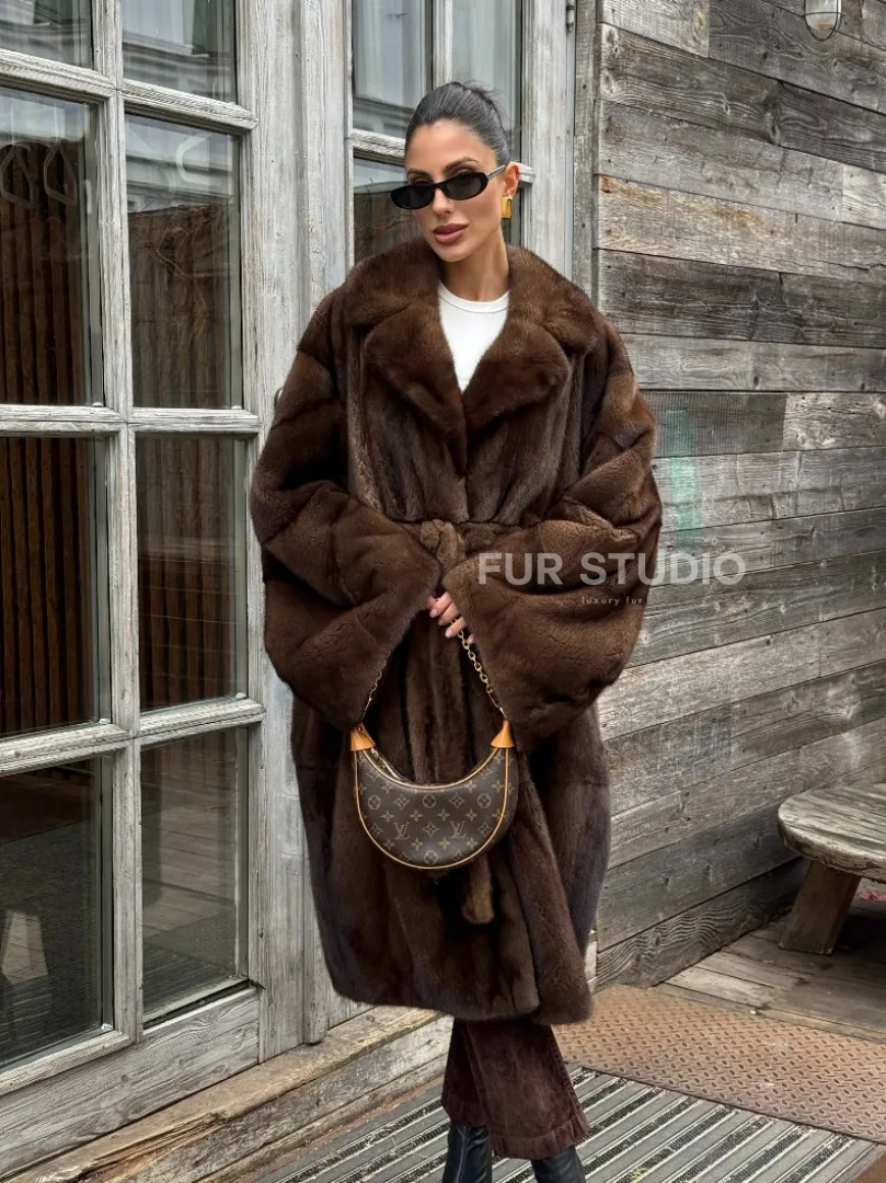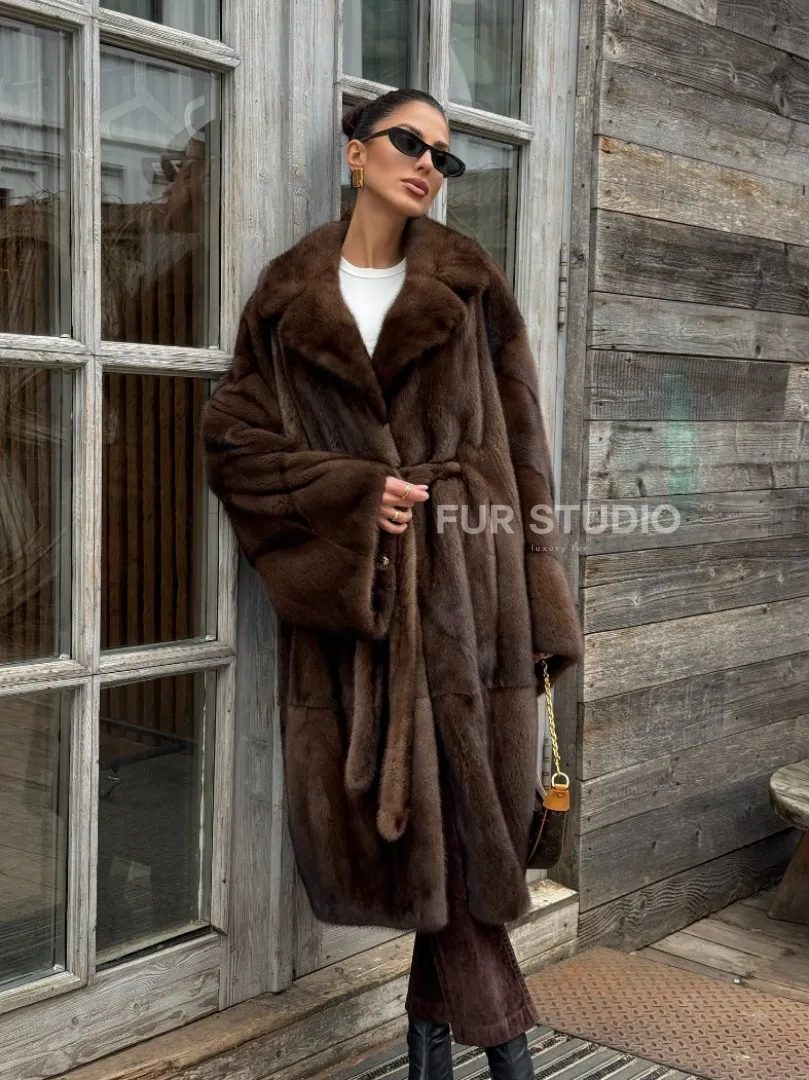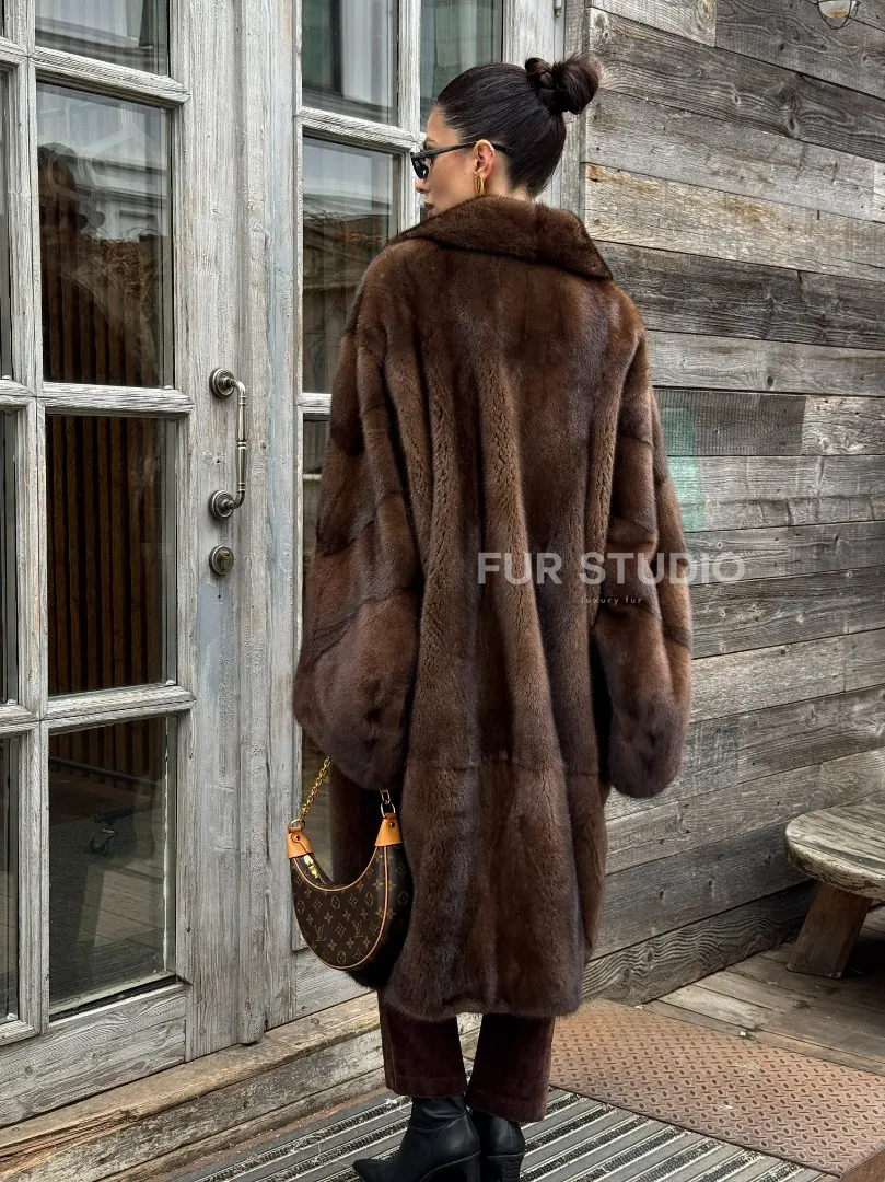 Шуба - кимоно Chic Fashion из норки орех с английским воротником доступна для покупки в нашем шоуруме Furs Studio в Москве. У нас так же есть доставка во все города России. Добавьте немного роскоши в свой гардероб с этой шубой, которая будет служить вам многие годы.