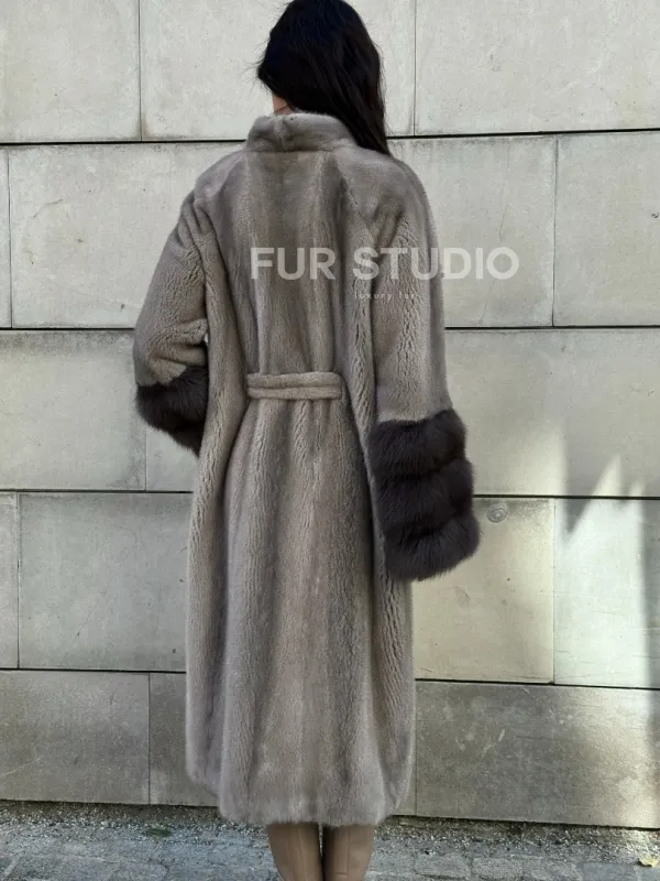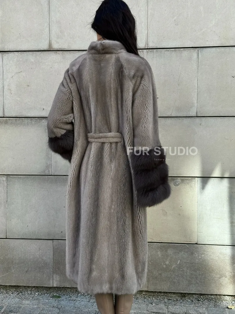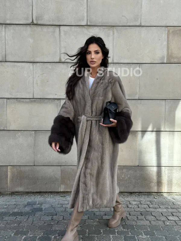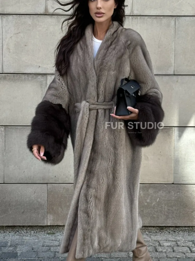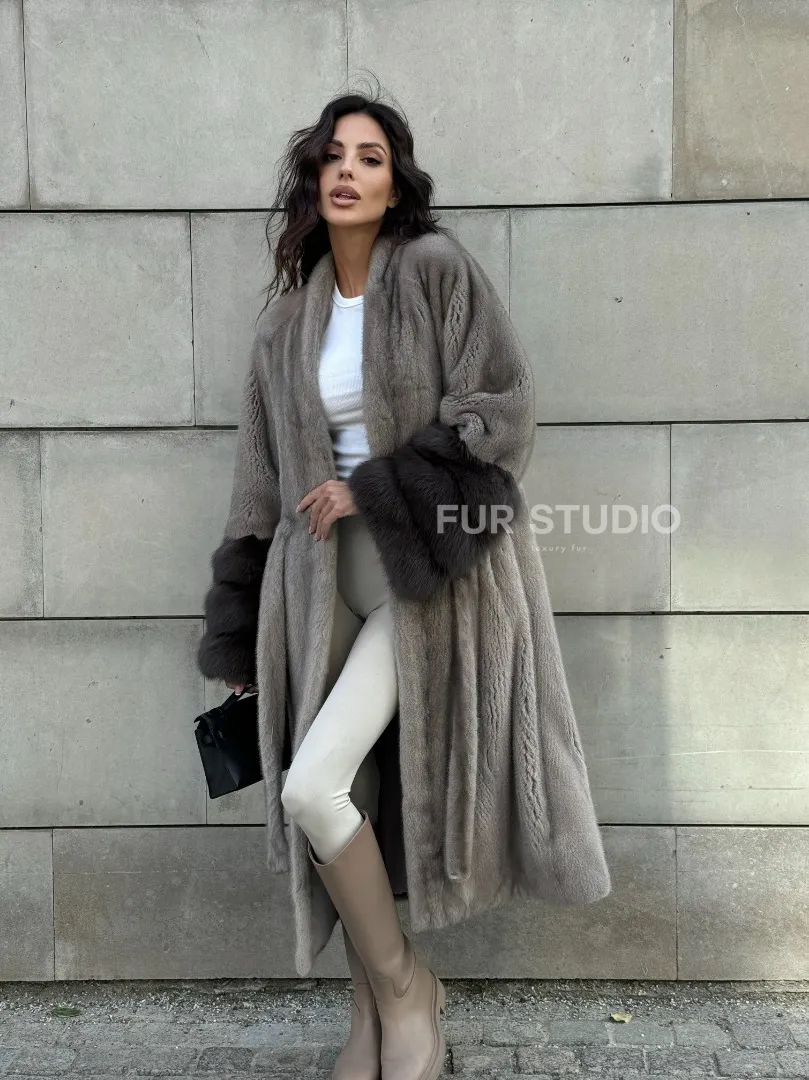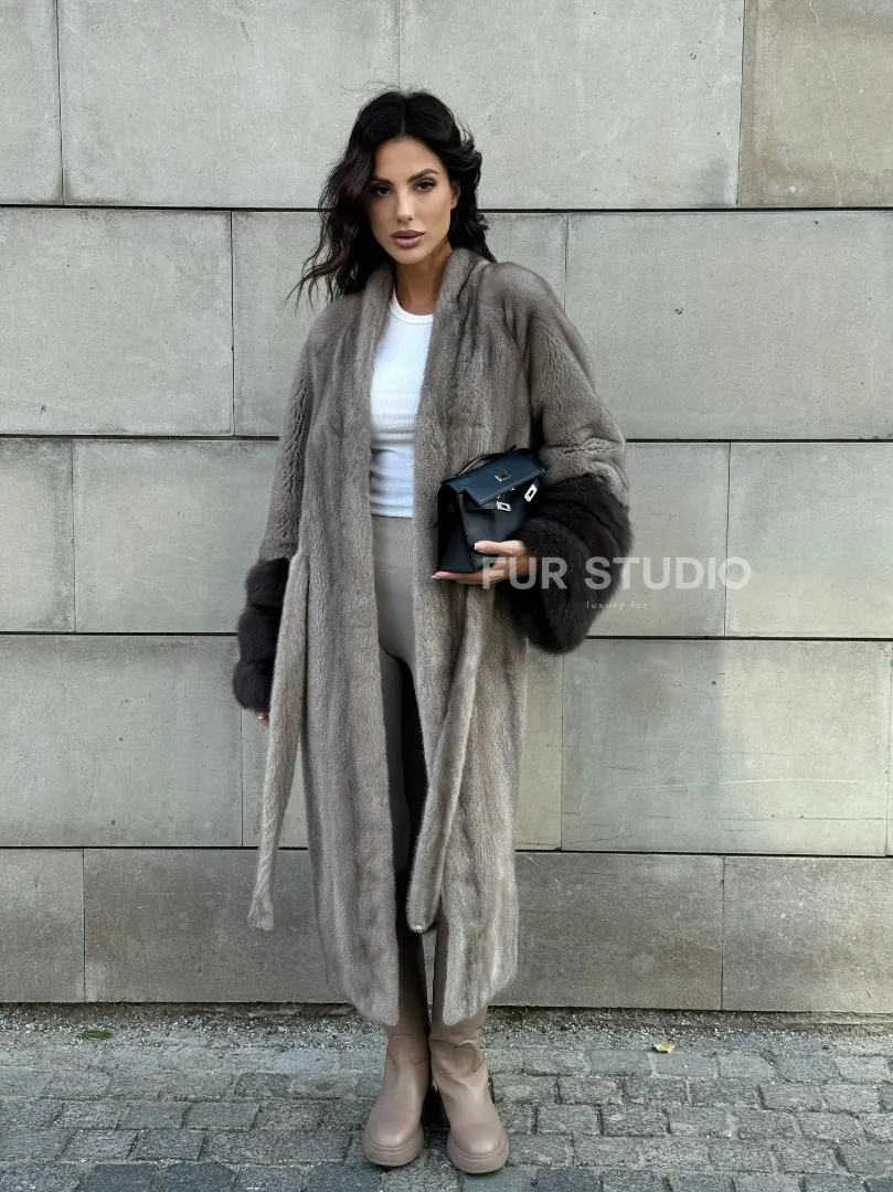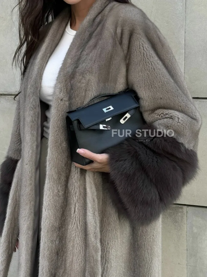 Шуба кимоно из меха норки Vintage Grey рукава с отделкой из куницы доступна для покупки в нашем шоуруме Furs Studio в Москве. У нас так же есть доставка во все города России. Добавьте немного роскоши в свой гардероб с этой шубой, которая будет служить вам многие годы.