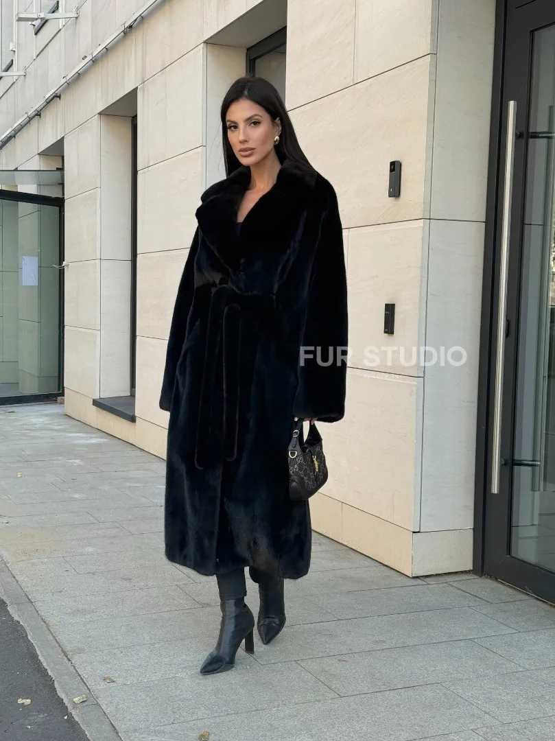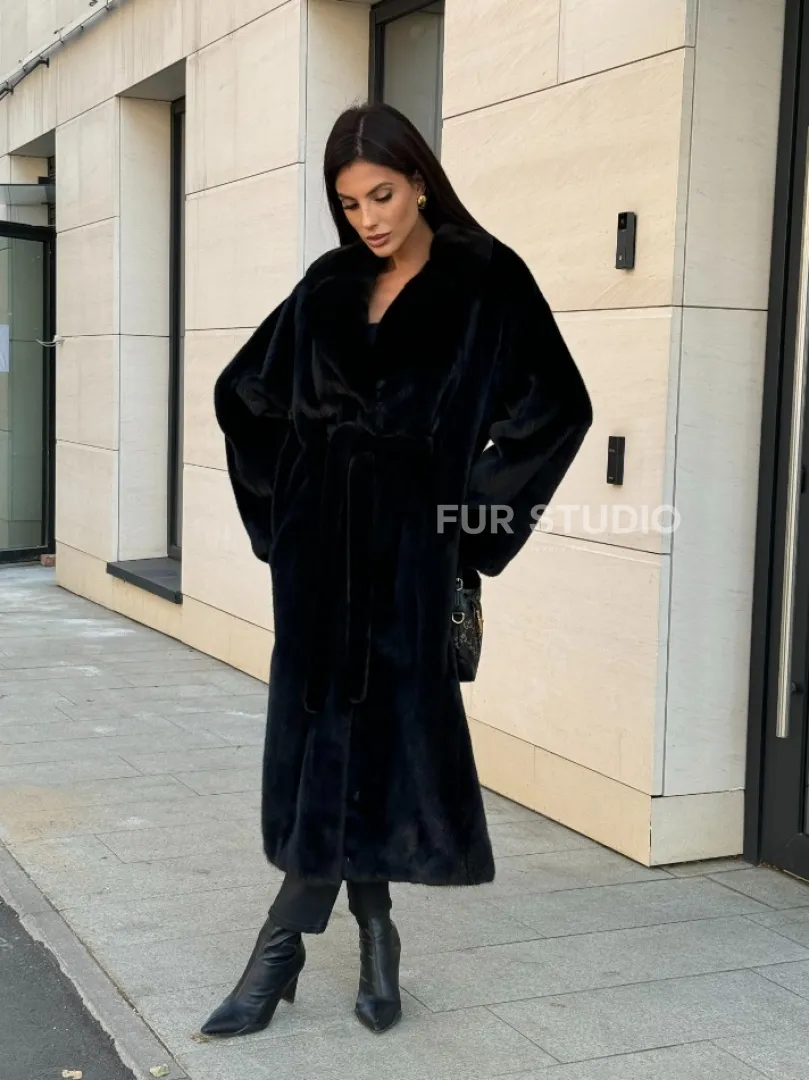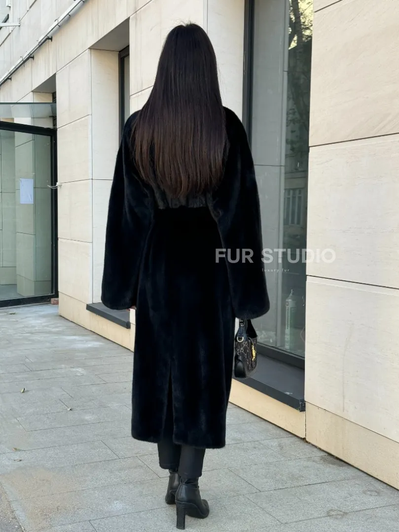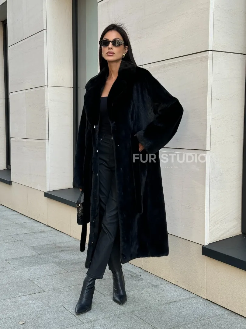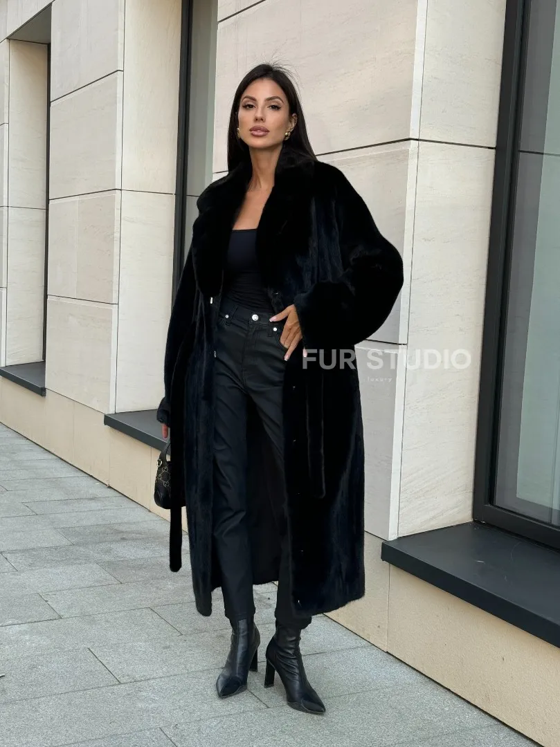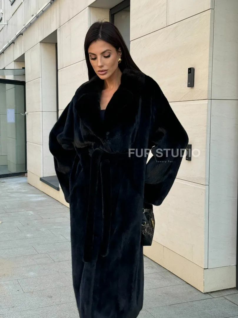 Мех данной шубы норка Blackglama , цвет черный. Предлагается в размерах от 42 до 54. Длина модели 115-120 см, что выгодно подчеркивает фигуру девушек. Эта модель идеально подойдет для девушек и женщин, предпочитающих роскошные натуральные меха.