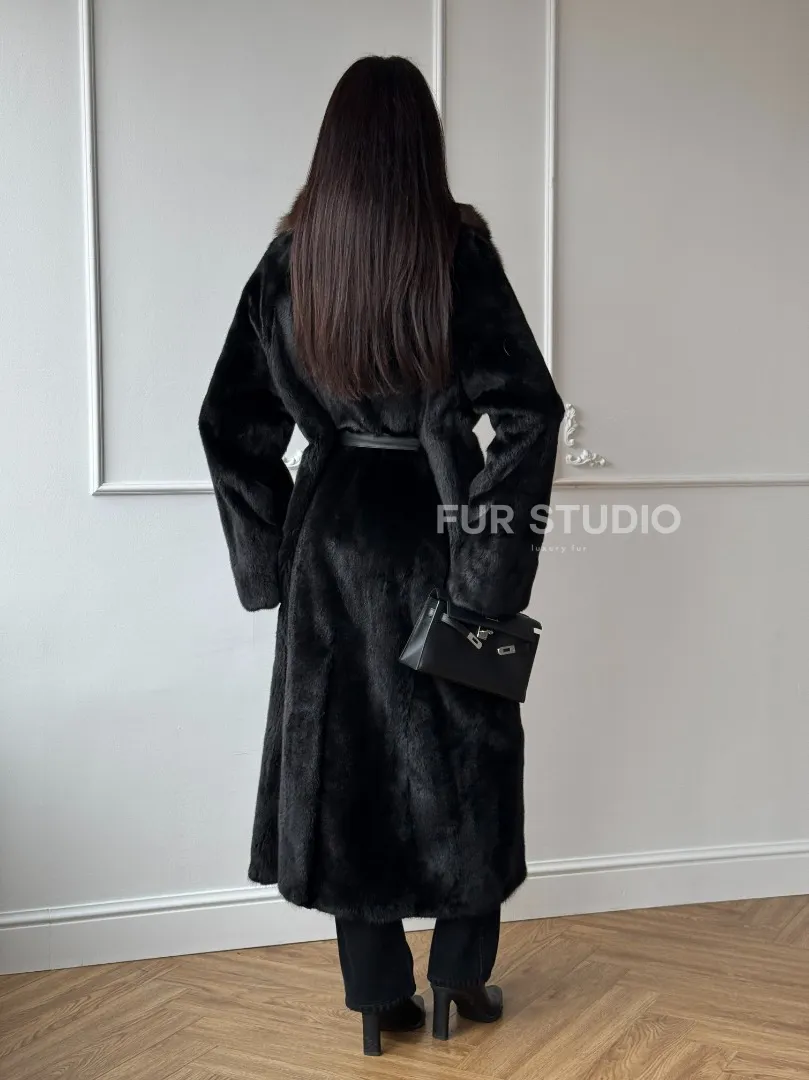 Мех данной шубы аукционная норка , цвет черный. Предлагается в размерах от 42 до 50. Длина модели 125-130 см, что выгодно подчеркивает фигуру девушек. Эта модель идеально подойдет для девушек и женщин, предпочитающих роскошные натуральные меха.