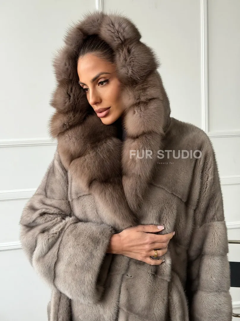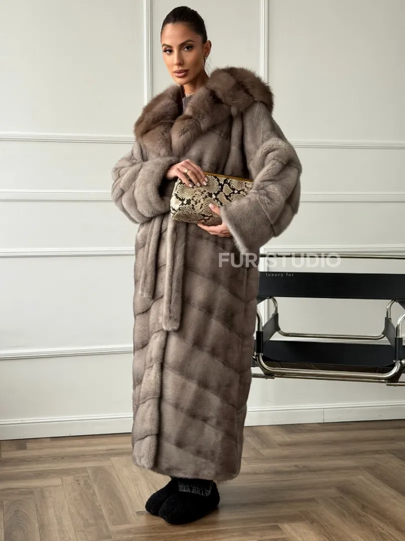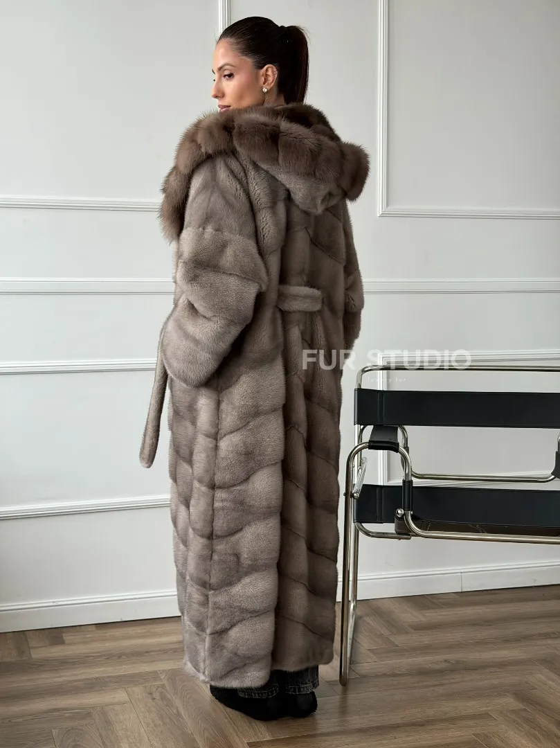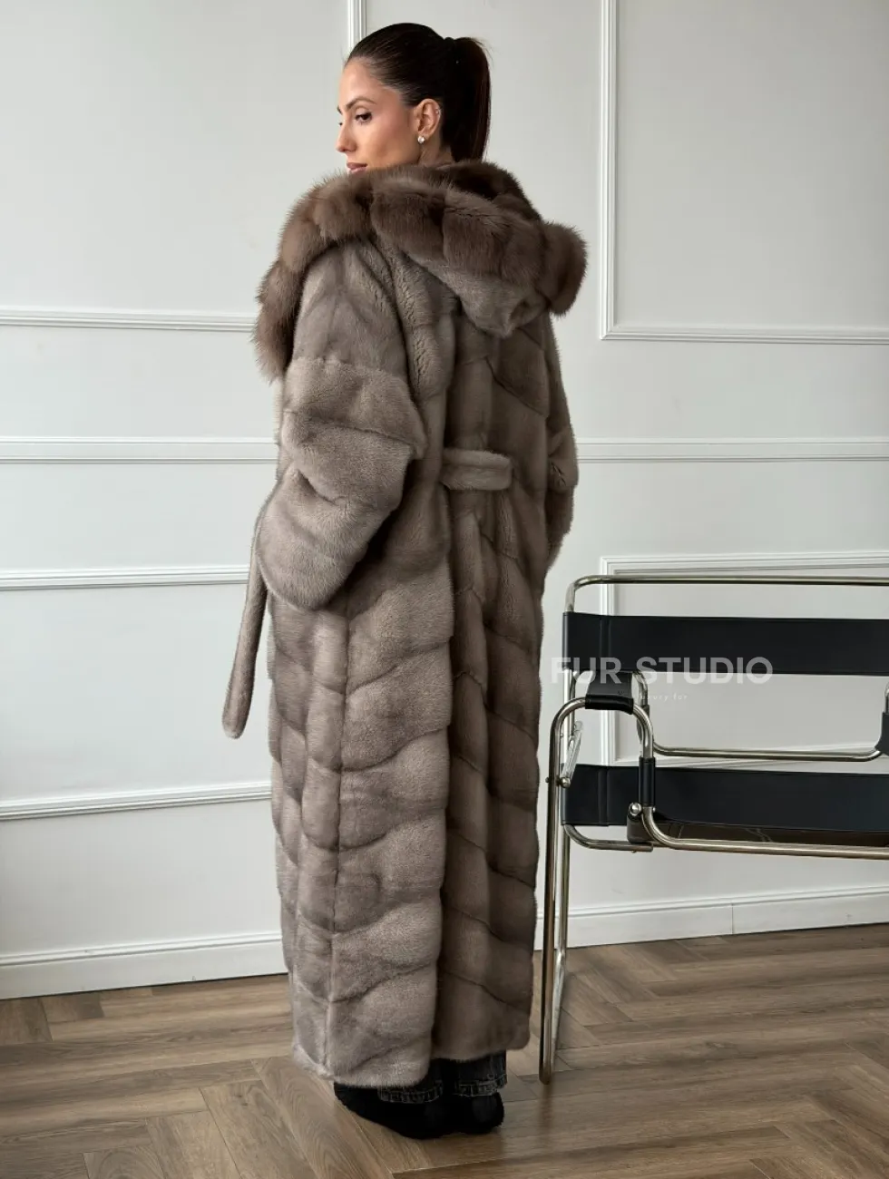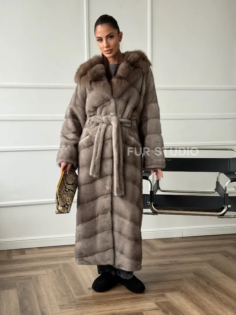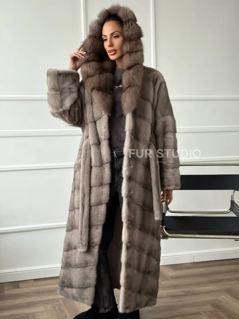 Шуба-кимоно норка в пол с капюшоном куница доступна для покупки в нашем шоуруме Furs Studio в Москве. У нас так же есть доставка во все города России. Добавьте немного роскоши в свой гардероб с этой шубой, которая будет служить вам многие годы.