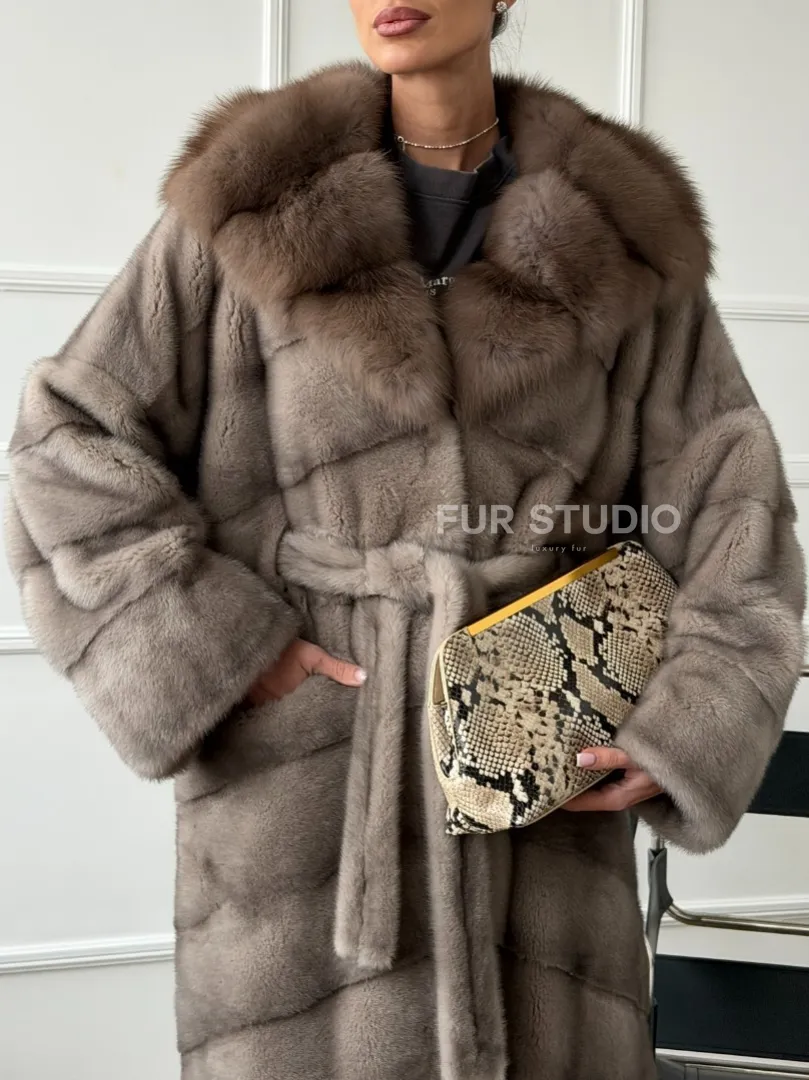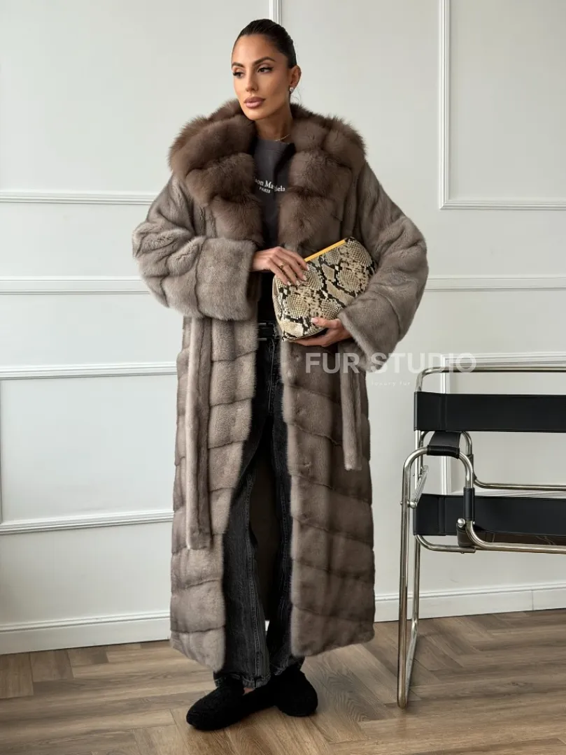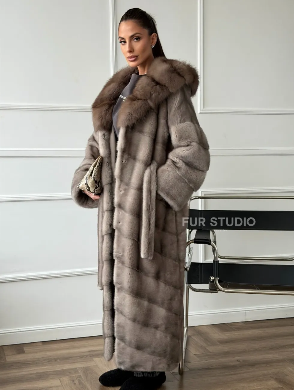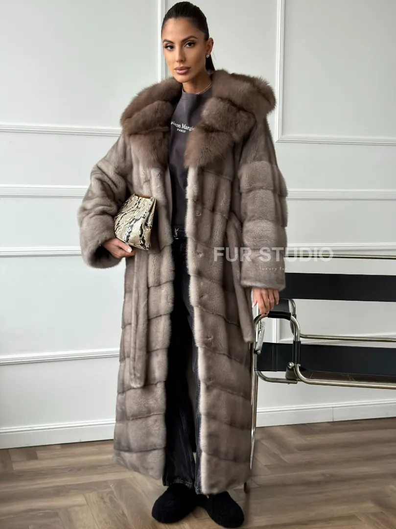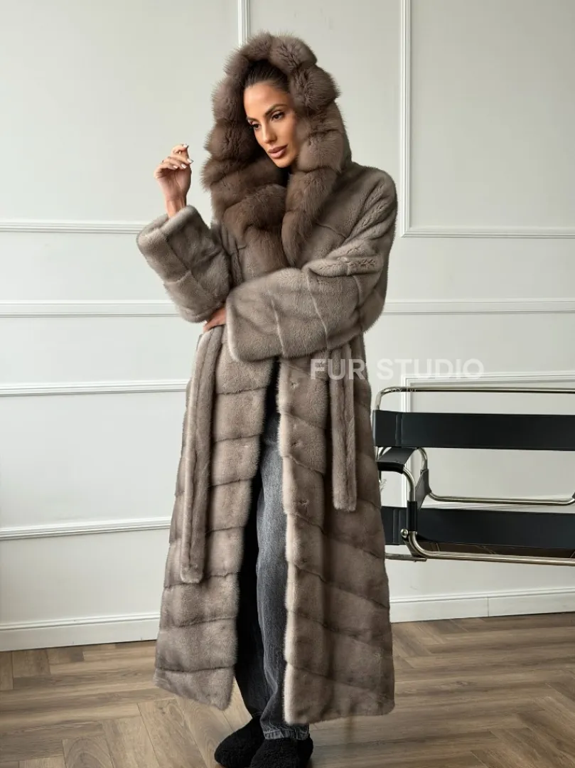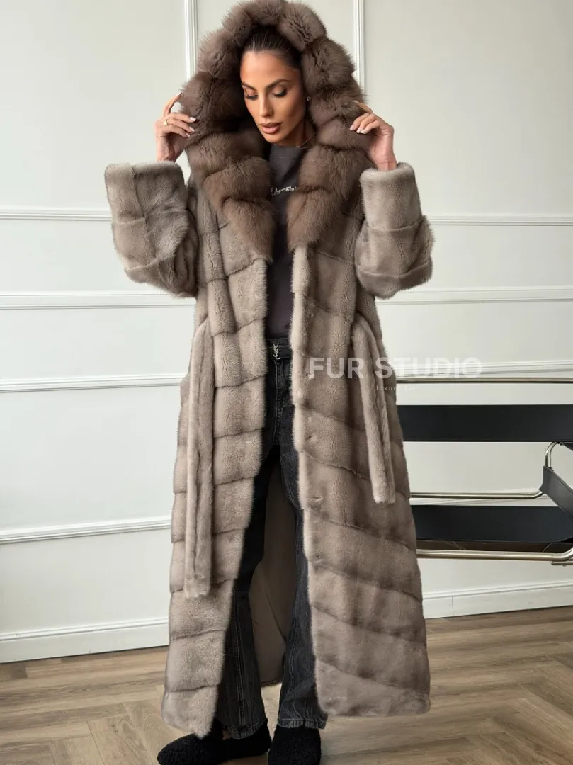 Шуба-кимоно норка в пол с капюшоном куница доступна для покупки в нашем шоуруме Furs Studio в Москве. У нас так же есть доставка во все города России. Добавьте немного роскоши в свой гардероб с этой шубой, которая будет служить вам многие годы.