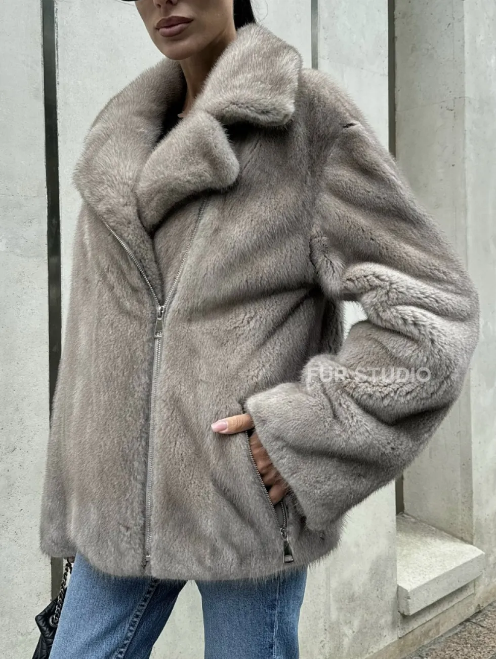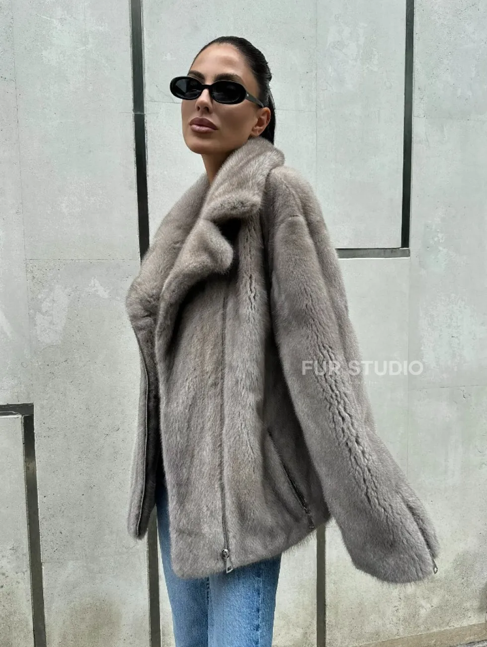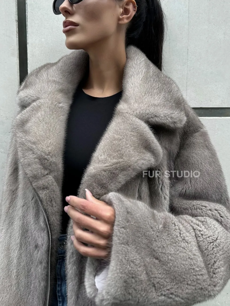 Мех данной шубы аукционная норка, цвет серый. Предлагается в размерах от 42 до 50. Длина модели 65-70 см, что выгодно подчеркивает фигуру девушек. Эта модель идеально подойдет для девушек и женщин, предпочитающих роскошные натуральные меха.
