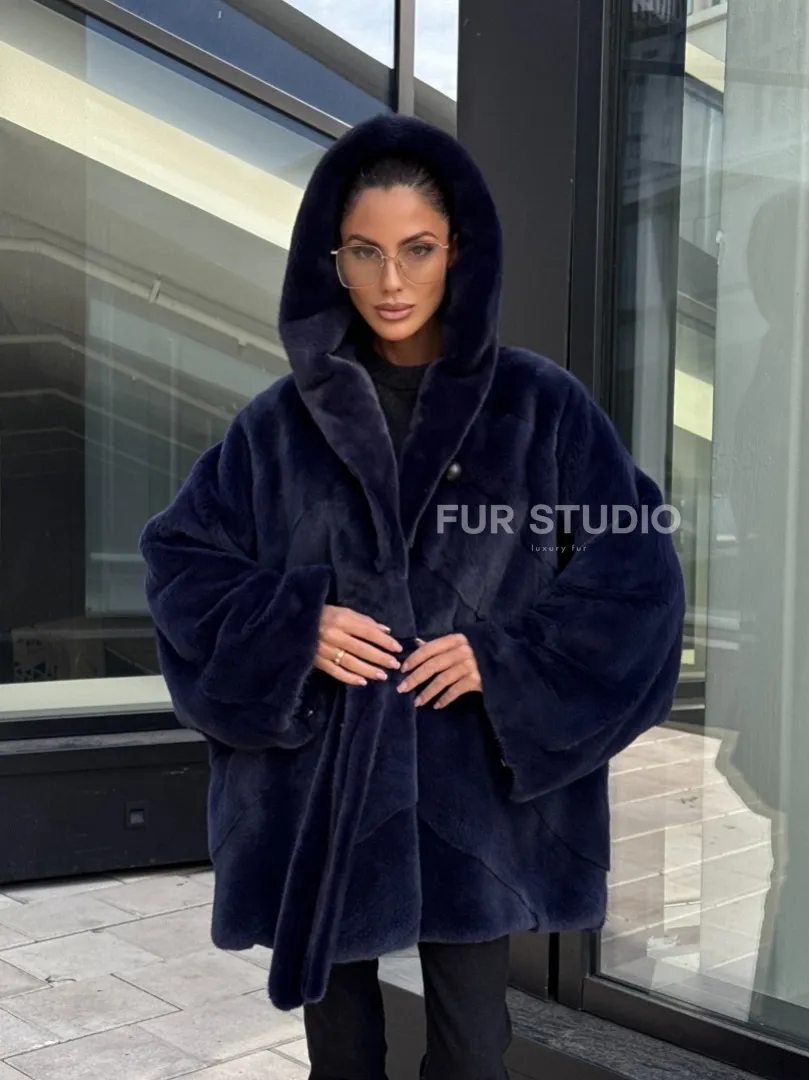 Шуба летучая мышь с капюшоном цвет аквамарин - паркетная раскладка доступна для покупки в нашем шоуруме Furs Studio в Москве. У нас так же есть доставка во все города России. Добавьте немного роскоши в свой гардероб с этой шубой, которая будет служить вам многие годы.