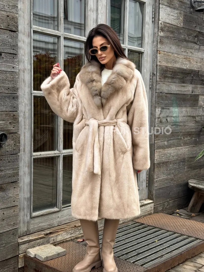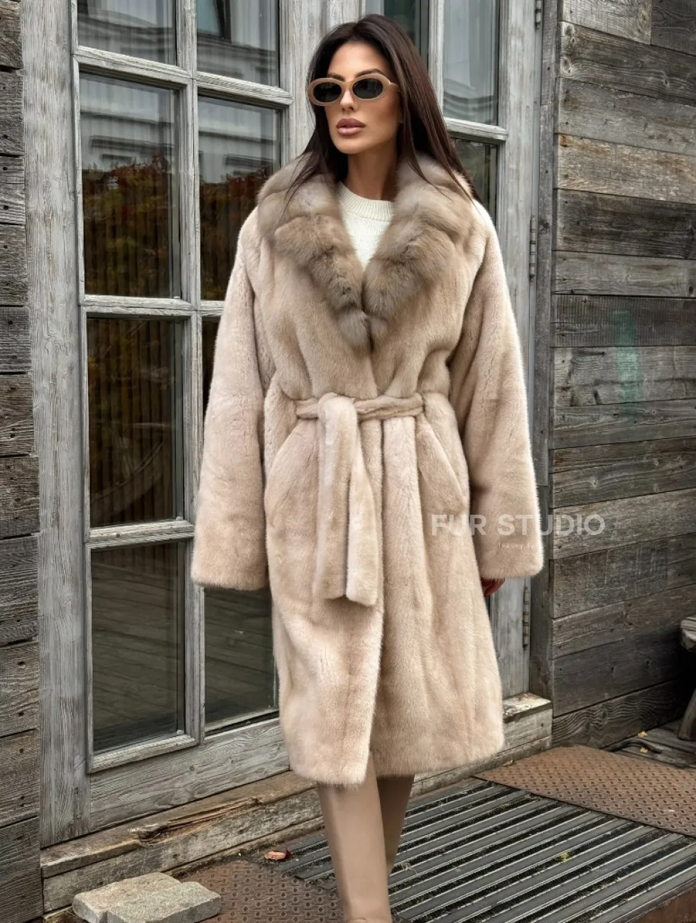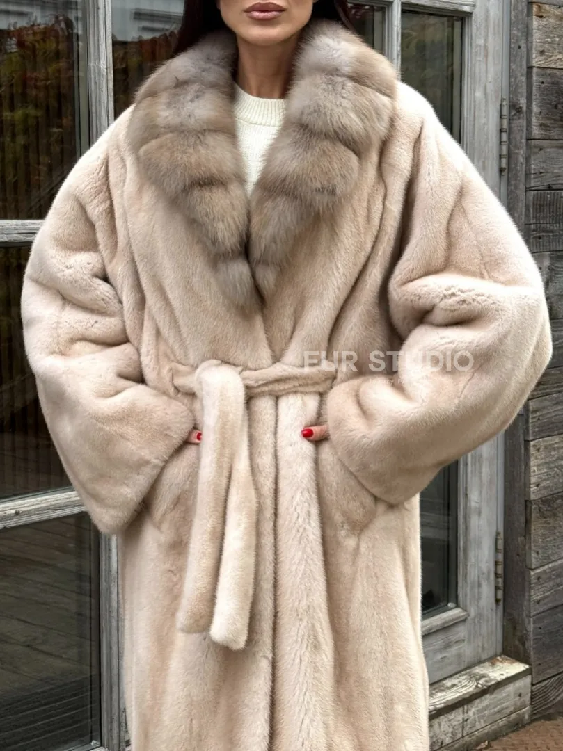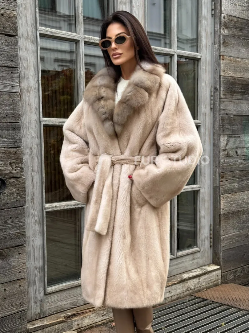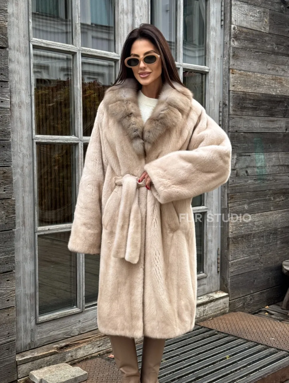 Шуба LUXURY кимоно из норки IVORY с английским воротником из меха куницы доступна для покупки в нашем шоуруме Furs Studio в Москве. У нас так же есть доставка во все города России. Добавьте немного роскоши в свой гардероб с этой шубой, которая будет служить вам многие годы.