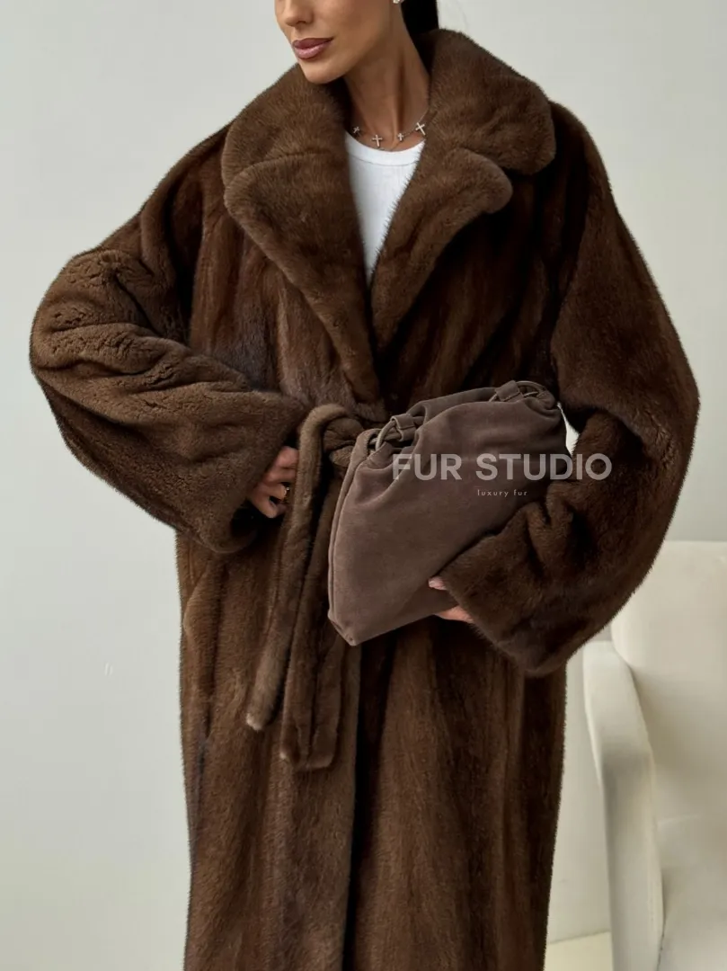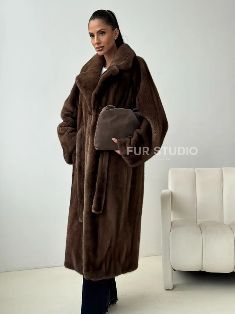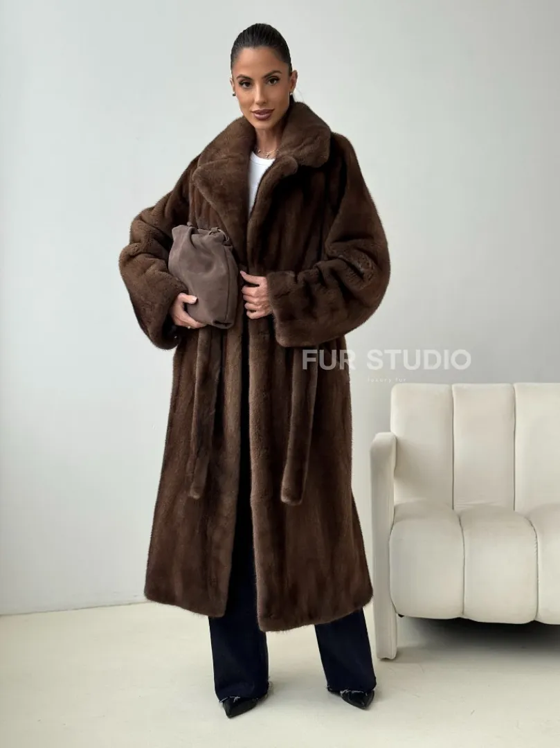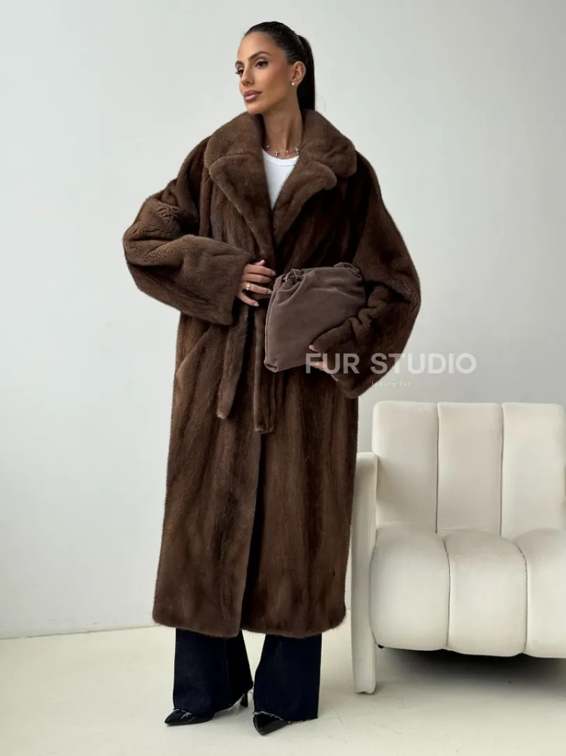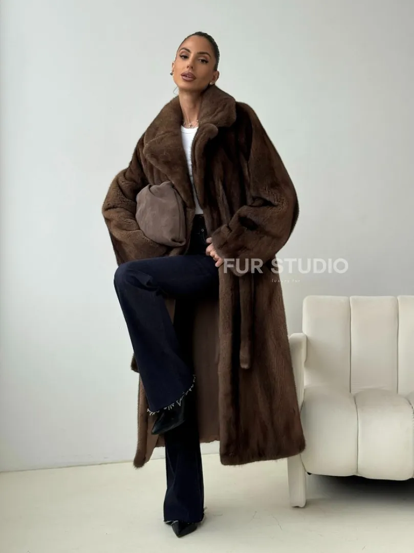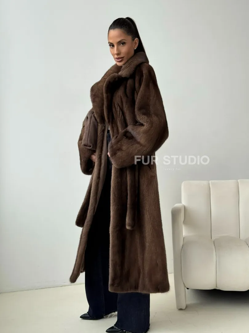 Мех данной шубы аукционная норка , цвет коричневый. Предлагается в размерах от 42 до 54. Длина модели 115-120 см, что выгодно подчеркивает фигуру девушек. Эта модель идеально подойдет для девушек и женщин, предпочитающих роскошные натуральные меха.