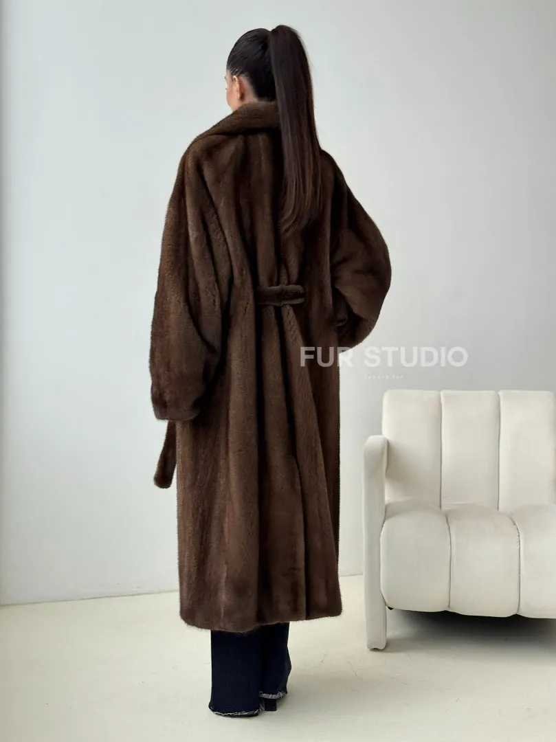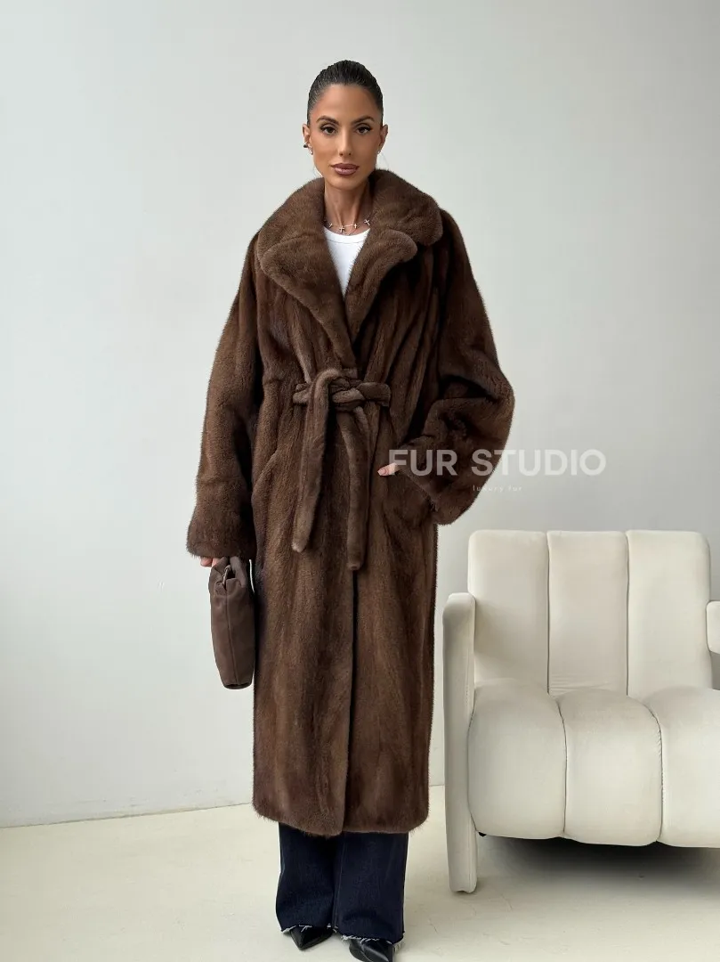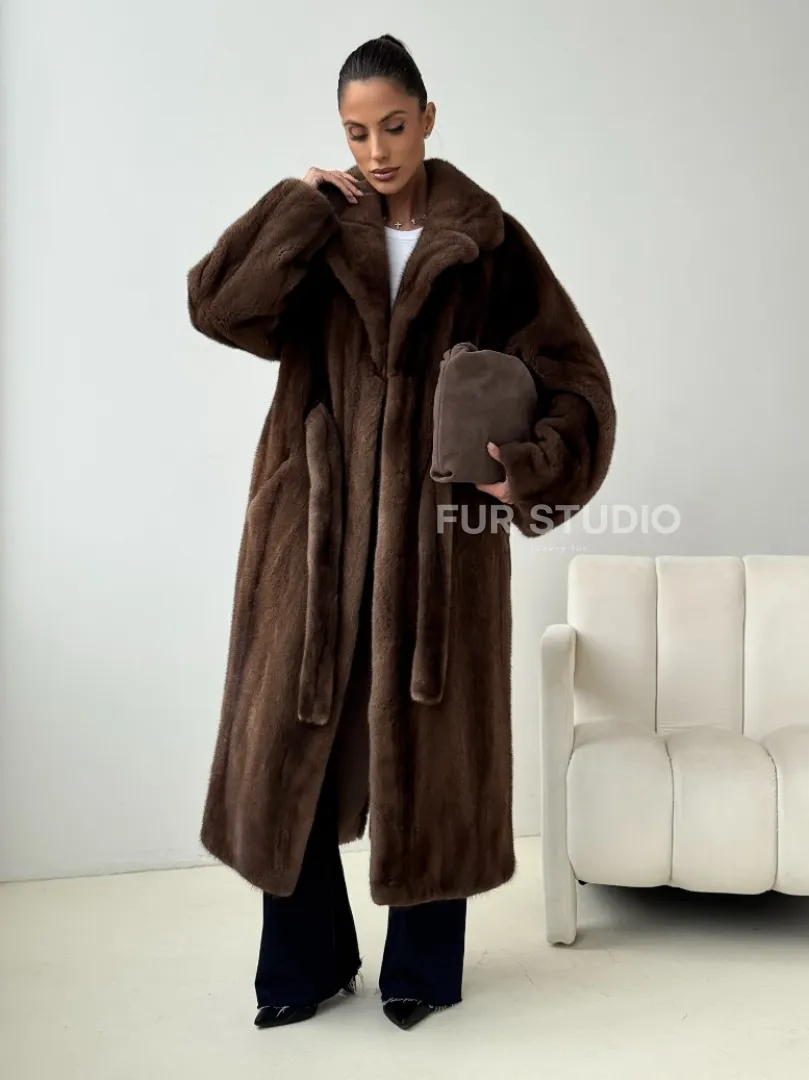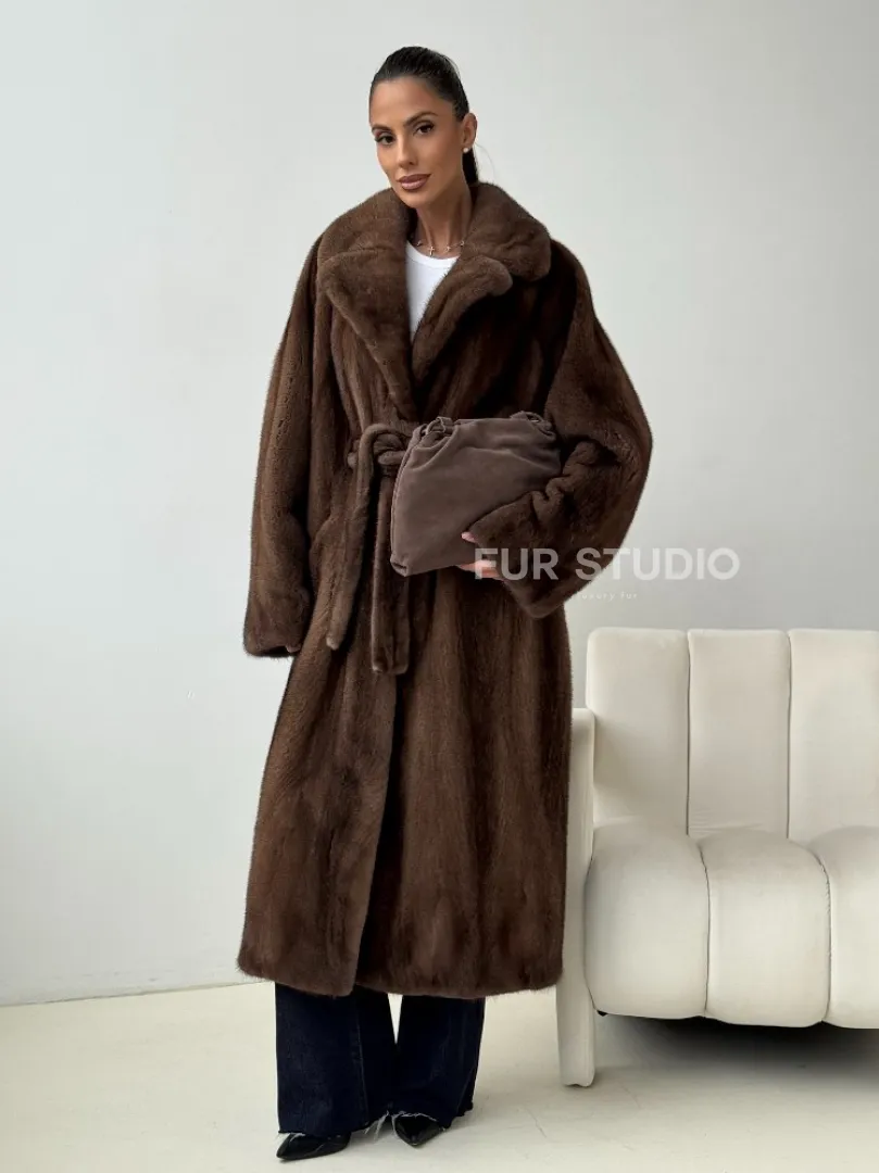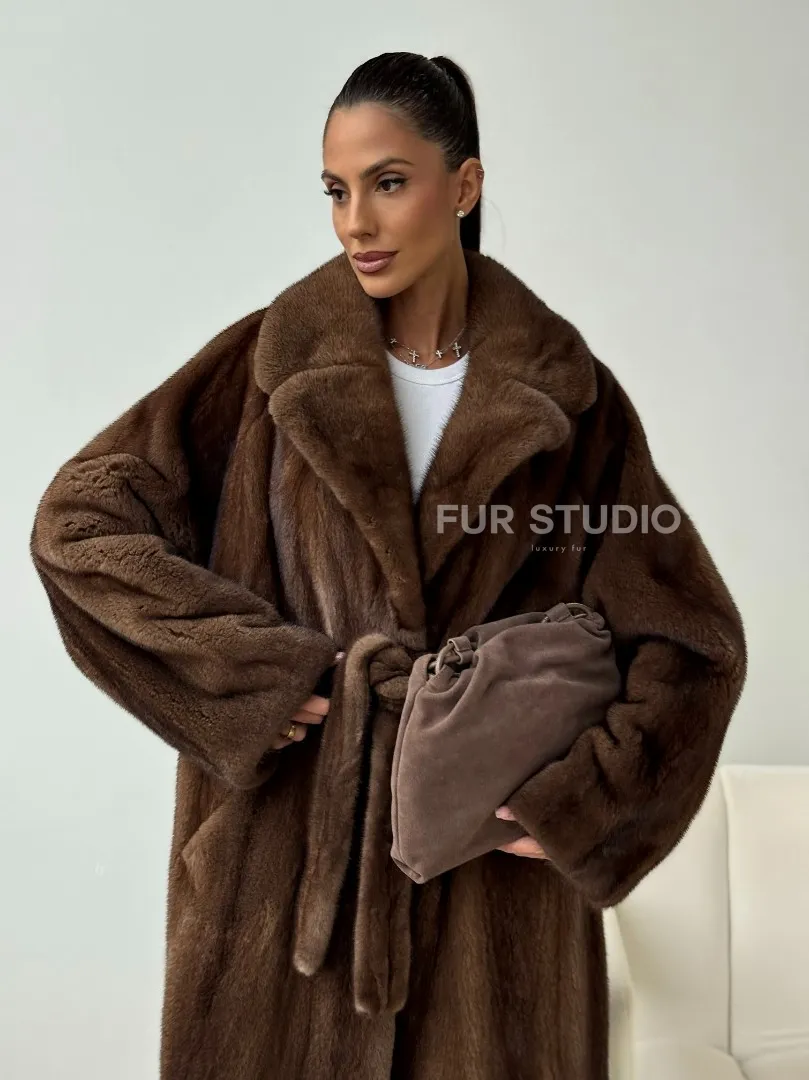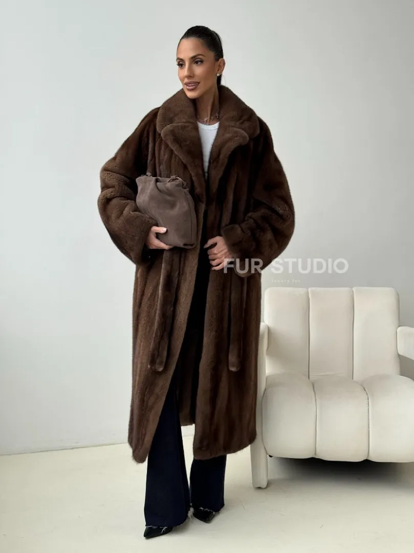 Мех данной шубы аукционная норка , цвет коричневый. Предлагается в размерах от 42 до 54. Длина модели 115-120 см, что выгодно подчеркивает фигуру девушек. Эта модель идеально подойдет для девушек и женщин, предпочитающих роскошные натуральные меха.