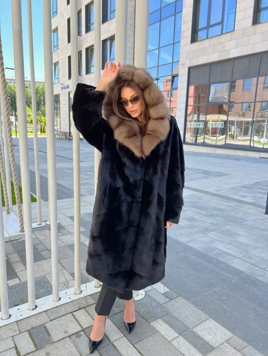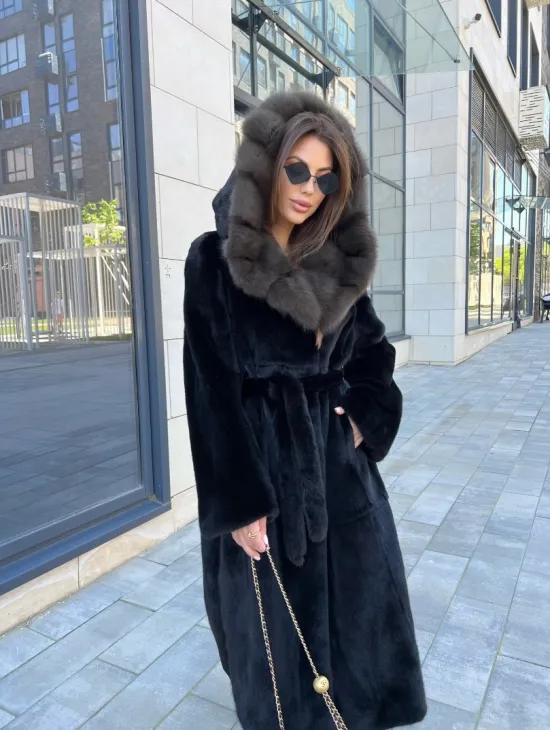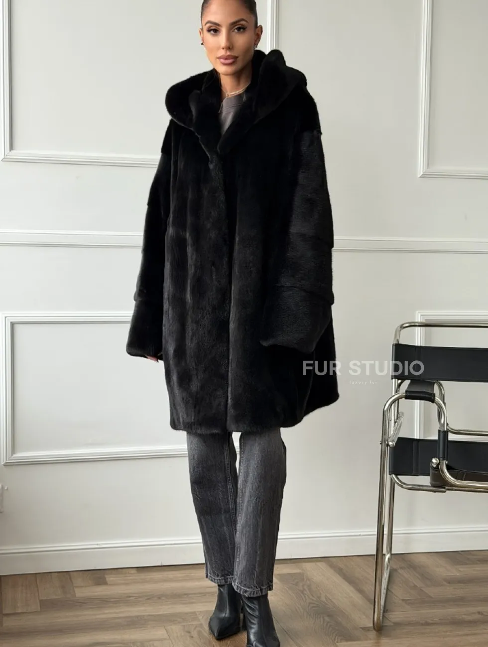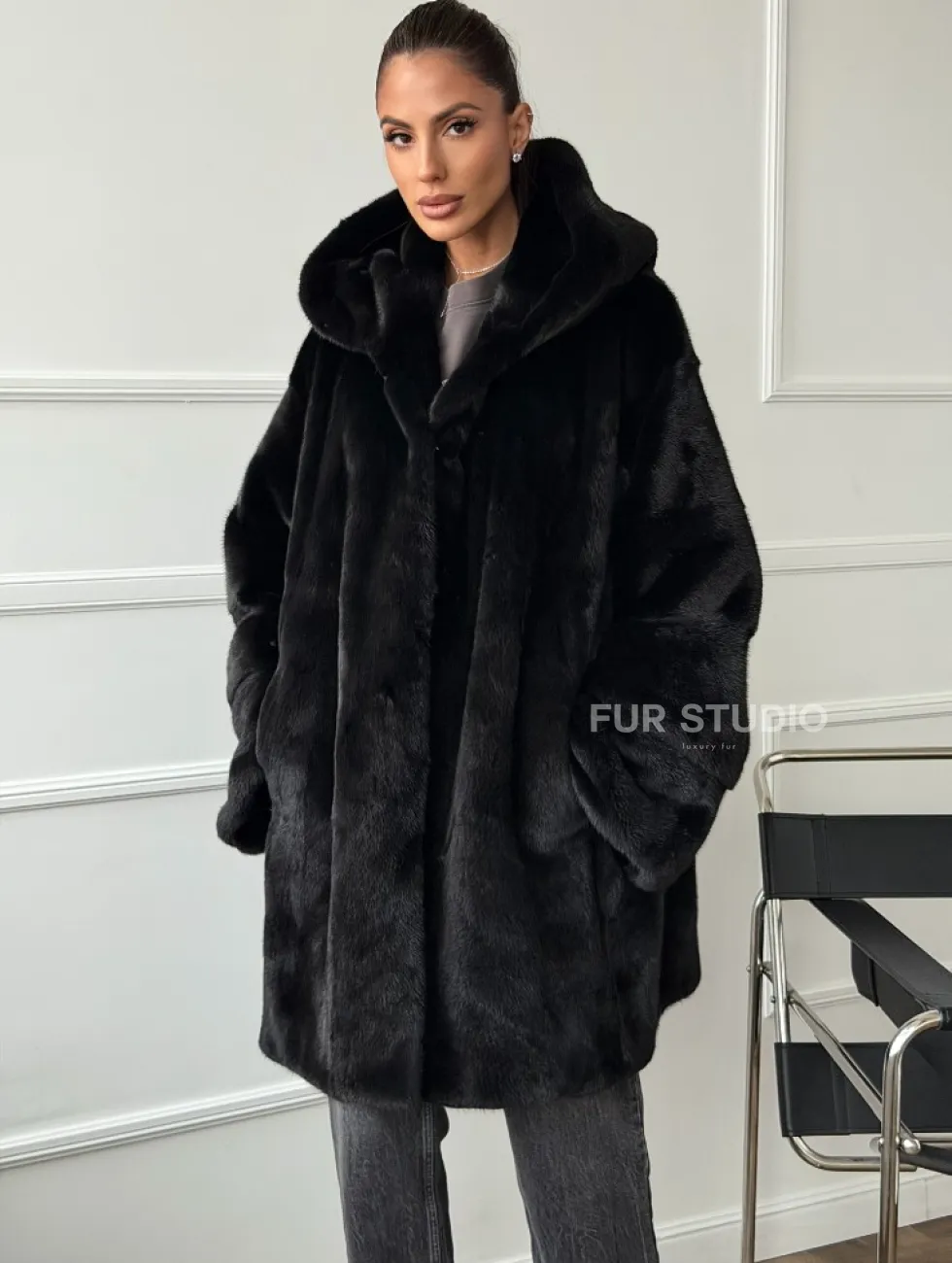 Шуба натуральная женская из норки Blackglama с капюшоном доступна для покупки в нашем шоуруме Furs Studio в Москве. У нас так же есть доставка во все города России. Добавьте немного роскоши в свой гардероб с этой шубой, которая будет служить вам многие годы.