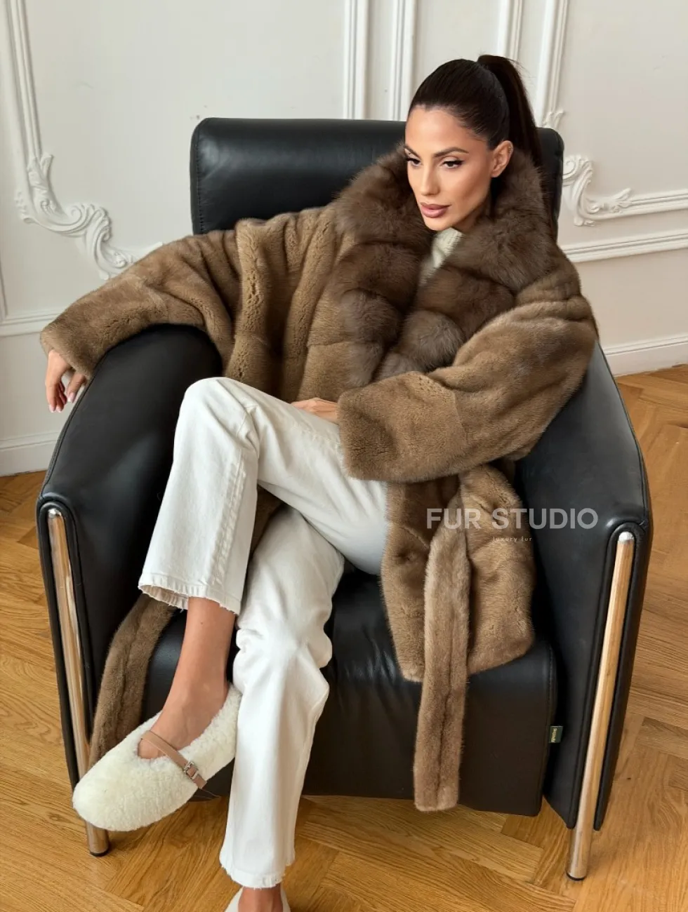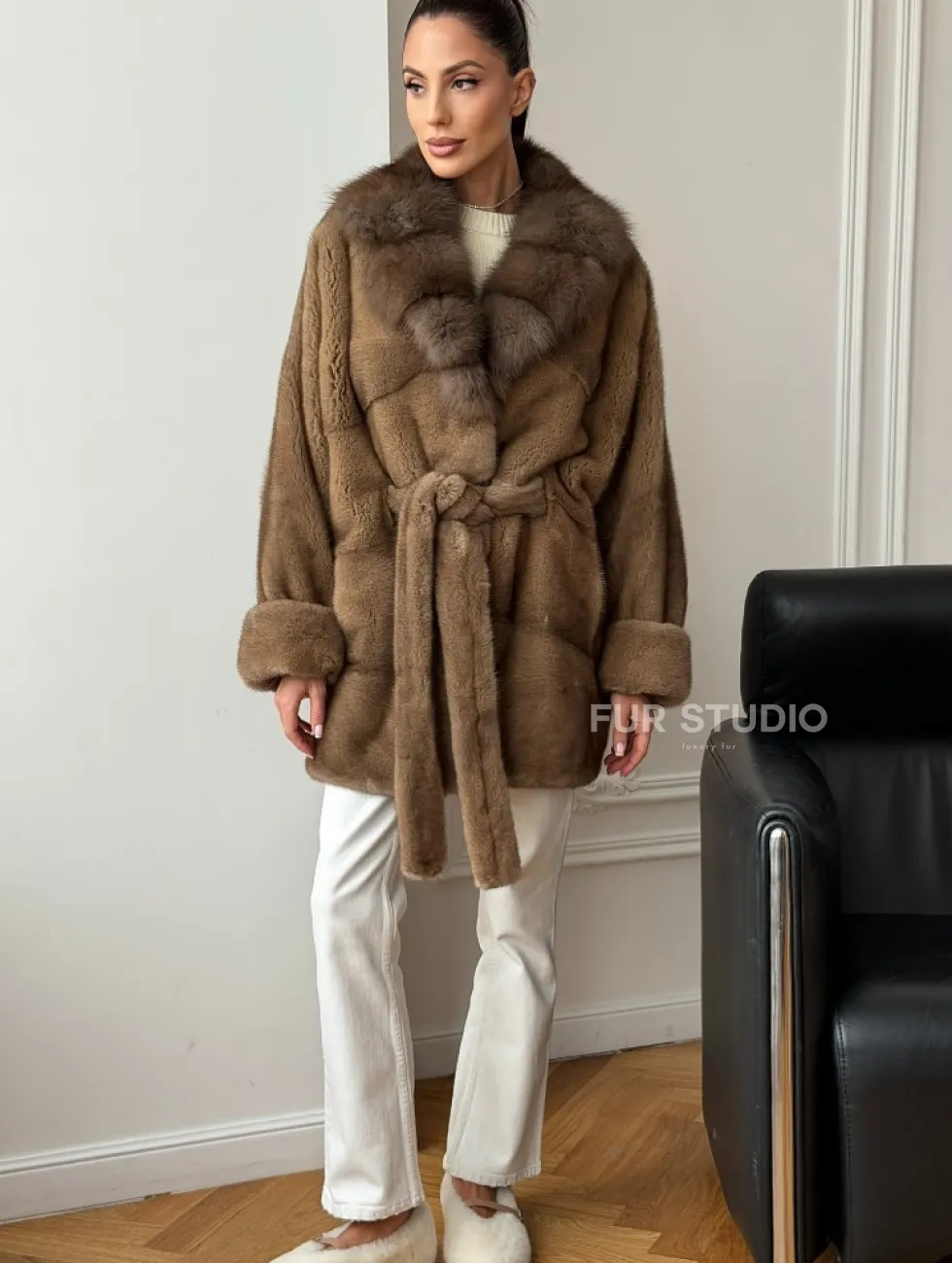 Шуба норка - воротник куница доступна для покупки в нашем шоуруме Furs Studio в Москве. У нас так же есть доставка во все города России. Добавьте немного роскоши в свой гардероб с этой шубой, которая будет служить вам многие годы.