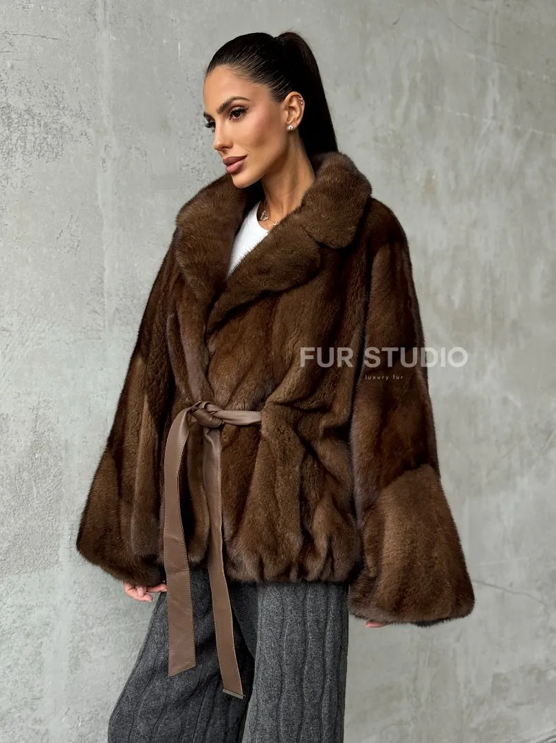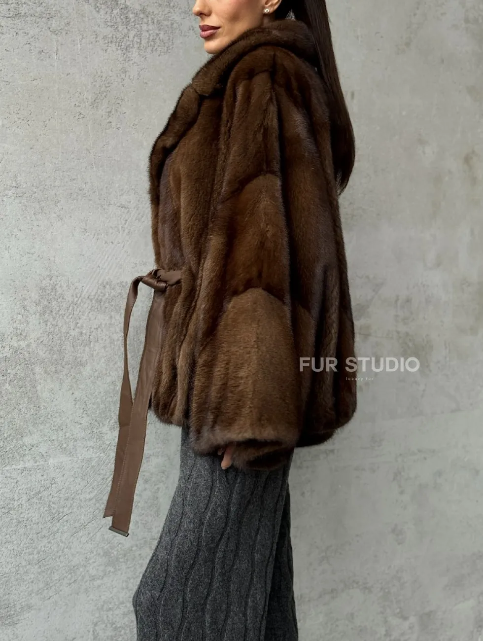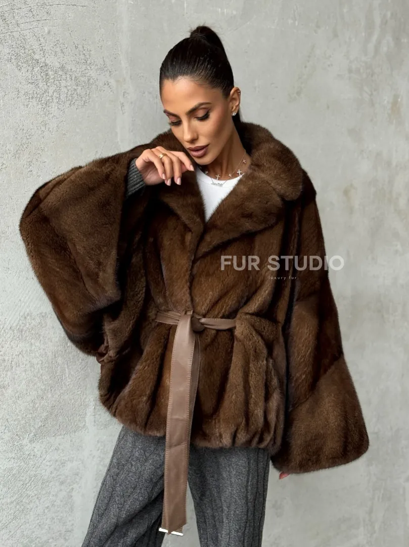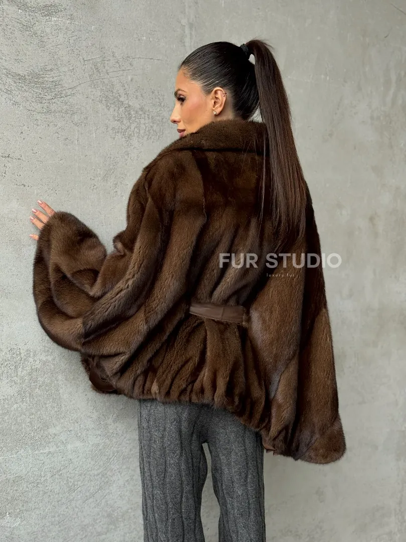 Мех данной шубы аукционная норка , цвет коричневый. Предлагается в размерах от 42 до 56 (oversize). Длина модели 70-75 см, что выгодно подчеркивает фигуру девушек. Эта модель идеально подойдет для девушек и женщин, предпочитающих роскошные натуральные меха.