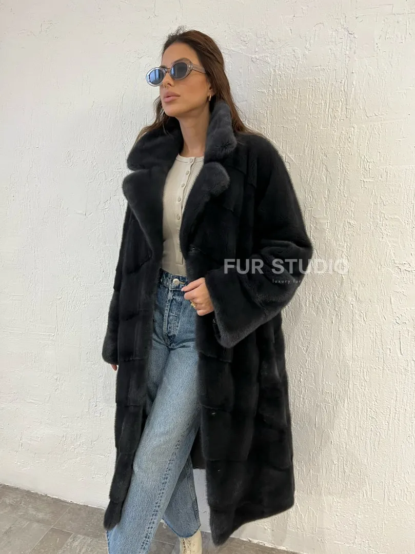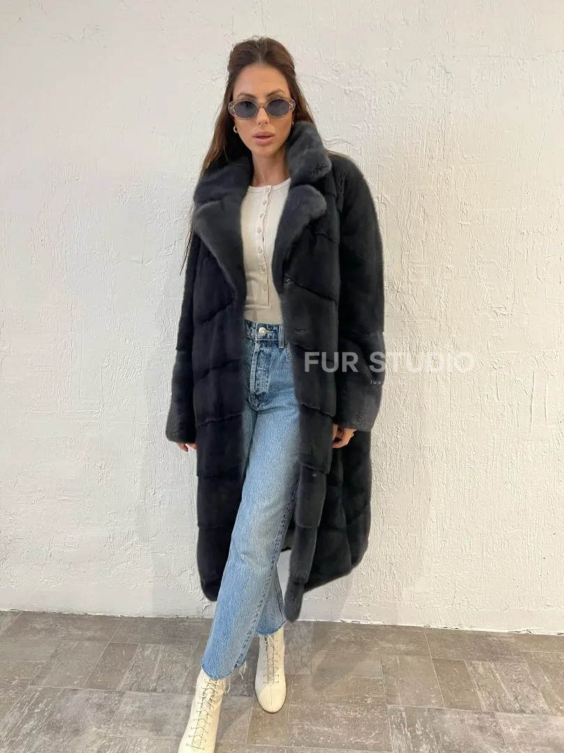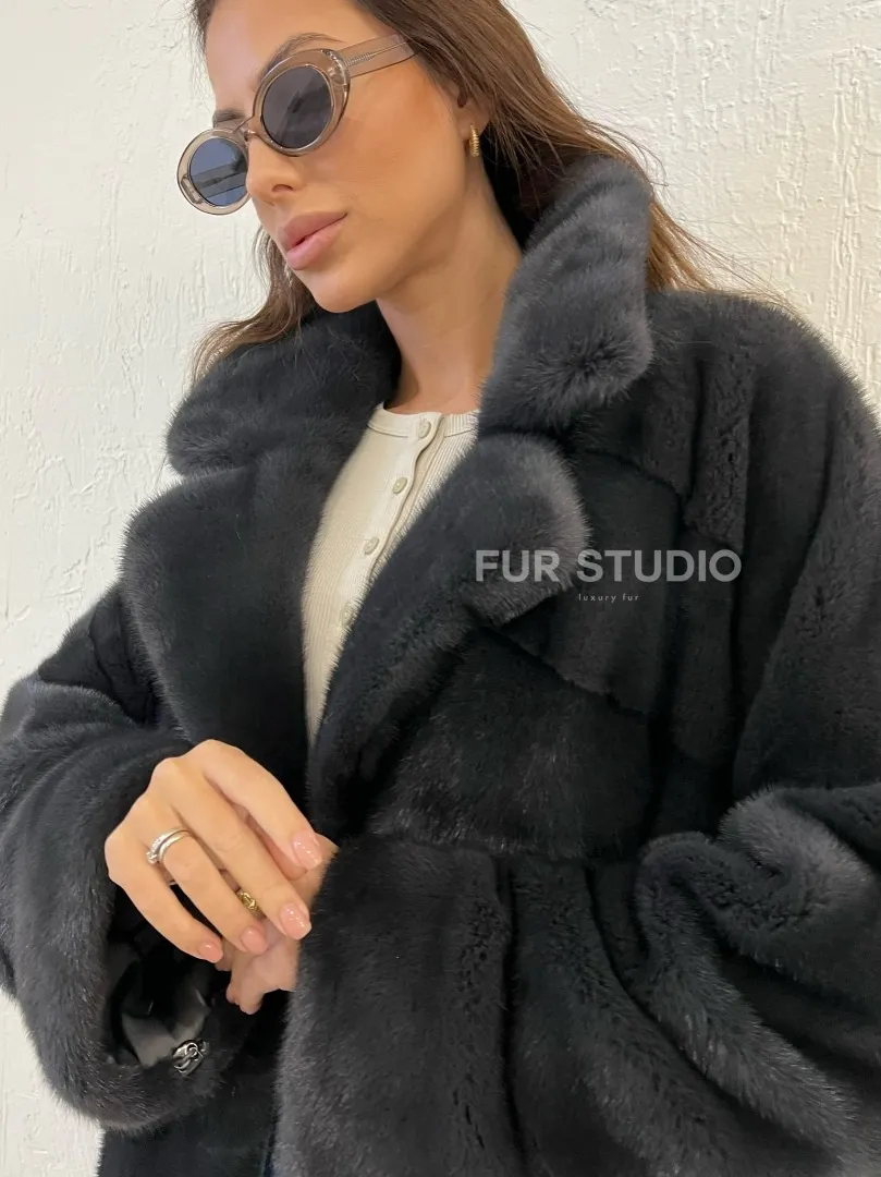 Цвет графит акцентирует внимание на оттенке волос и кожи владелицы. Модель можно носить с джинсами, леггинсами, но подойдет и для вечернего мероприятия. Добавьте к образу оригинальную сумочку, стильную обувь и вы будете выглядеть, как звезда Голливуда. Купить шубу норковую с английским воротником цвета графит могут девушки, которые любят блистать.
