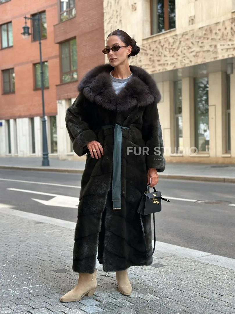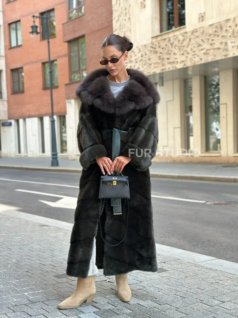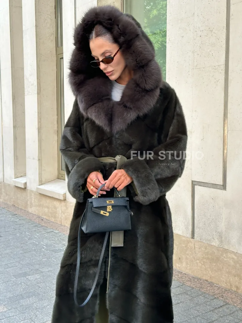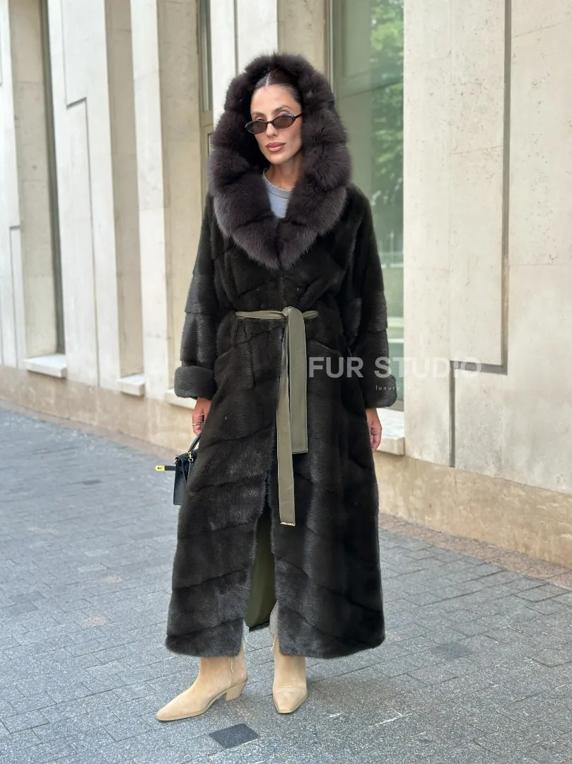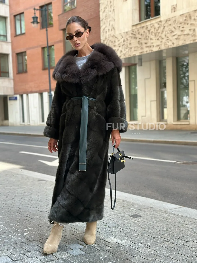 Шуба норковая с капюшоном из меха куницы - цвет темный хаки доступна для покупки в нашем шоуруме Furs Studio в Москве. У нас так же есть доставка во все города России. Добавьте немного роскоши в свой гардероб с этой шубой, которая будет служить вам многие годы.