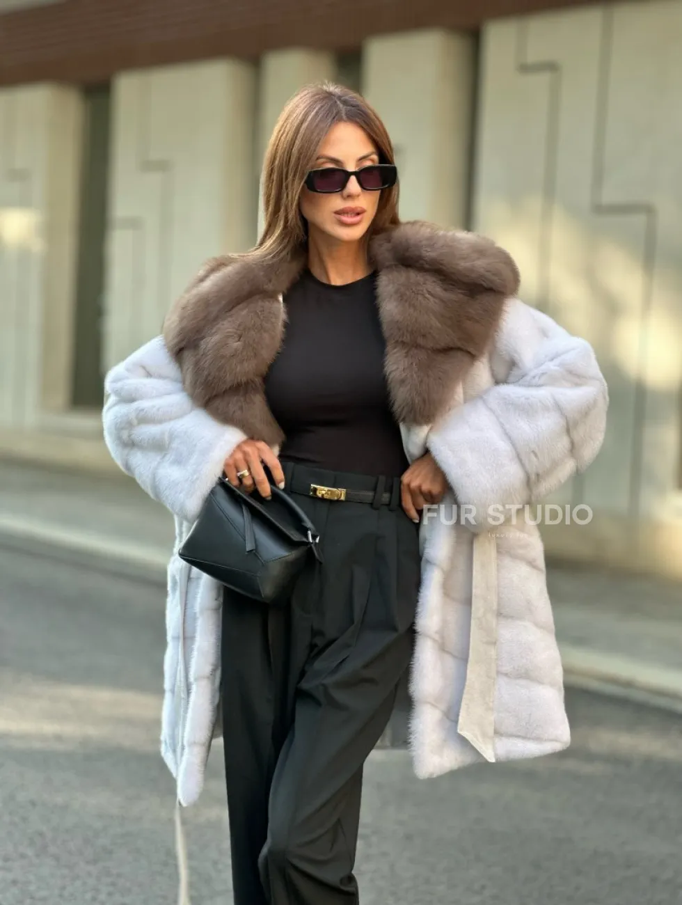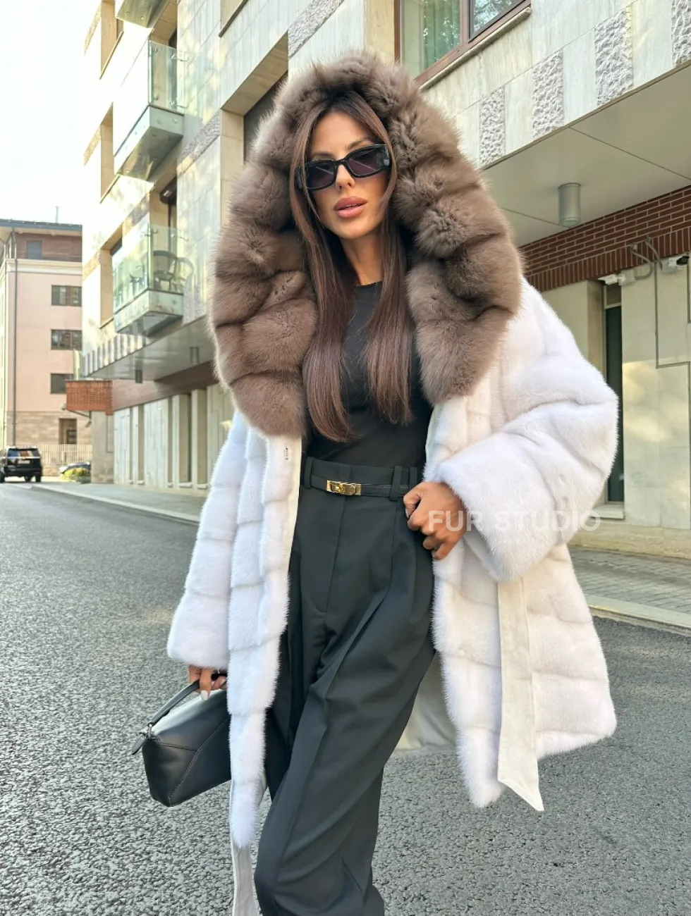 Модель выглядит дорого и нарядно. Беспроигрышный вариант для настоящих модниц, которые любят приковывать взгляды. Длина прекрасно подходит под любой гардероб. Купить белую норковую шубу с капюшоном из меха куницы может только женщина, которая умеет любить себя.