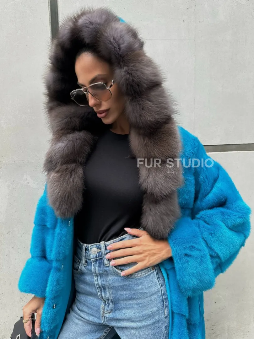 Шуба норковая с капюшоном из меха куницы - цвет тиффани доступна для покупки в нашем шоуруме Furs Studio в Москве. У нас так же есть доставка во все города России. Добавьте немного роскоши в свой гардероб с этой шубой, которая будет служить вам многие годы.