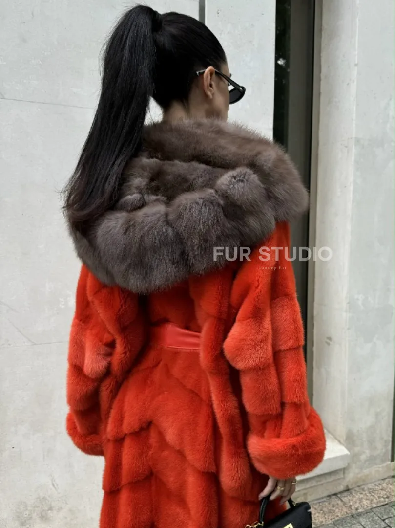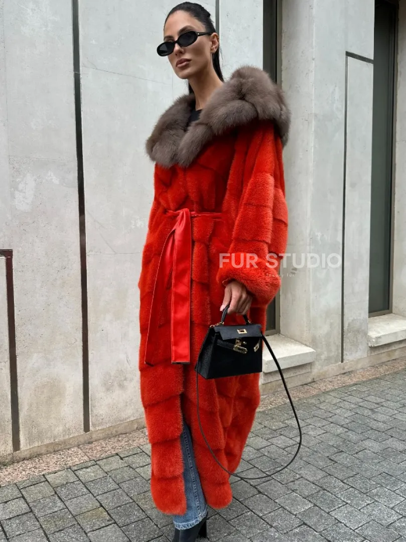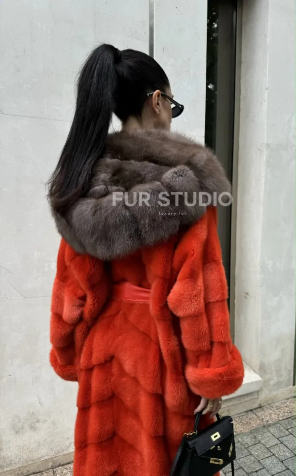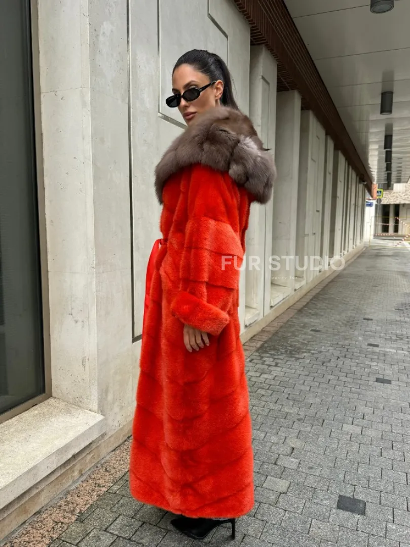 Шуба норковая с капюшоном из меха куницы в красном цвете доступна для покупки в нашем шоуруме Furs Studio в Москве. У нас так же есть доставка во все города России. Добавьте немного роскоши в свой гардероб с этой шубой, которая будет служить вам многие годы.