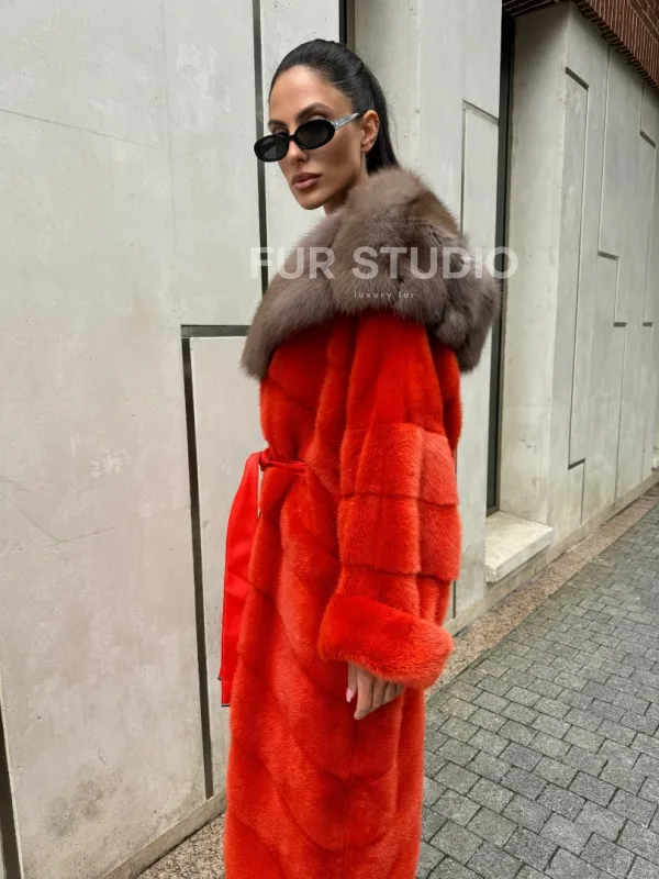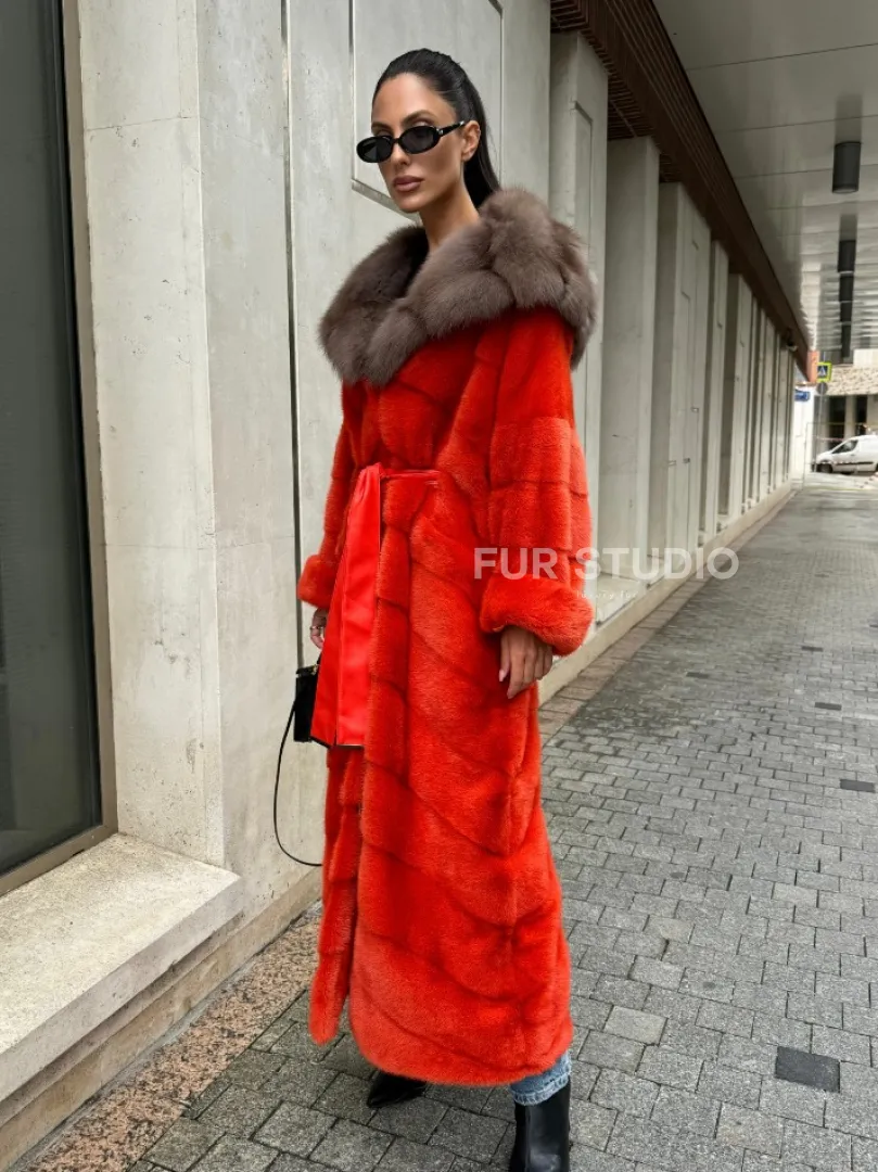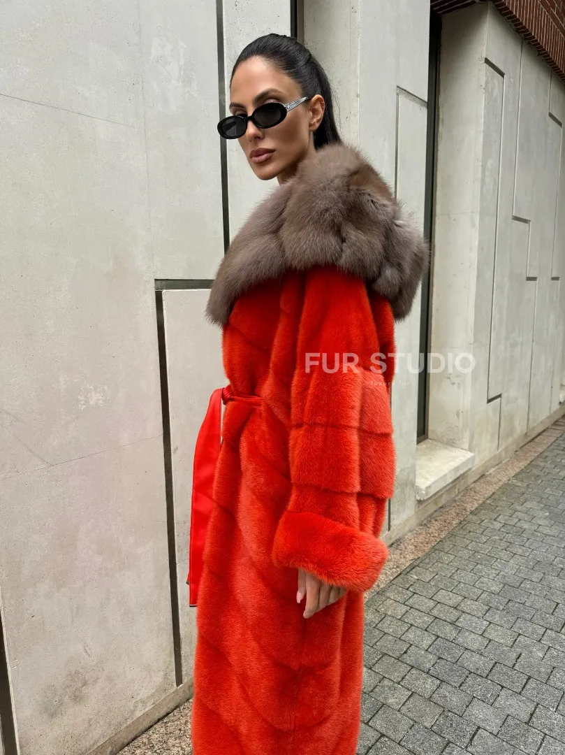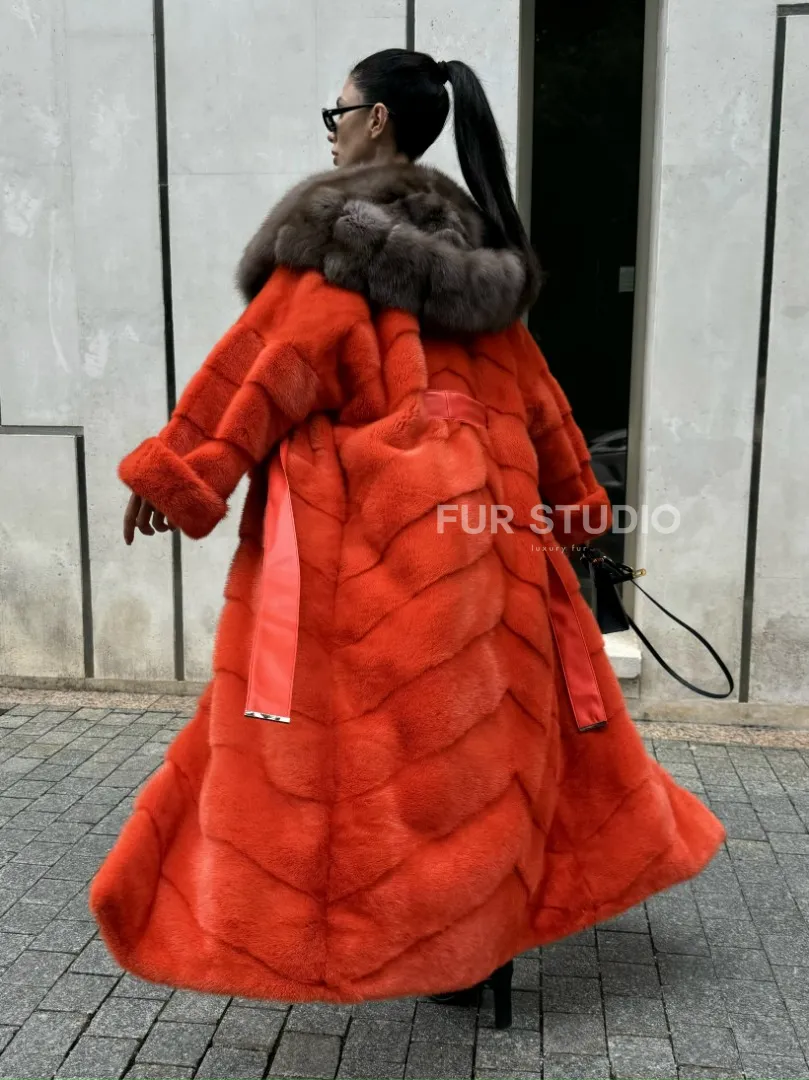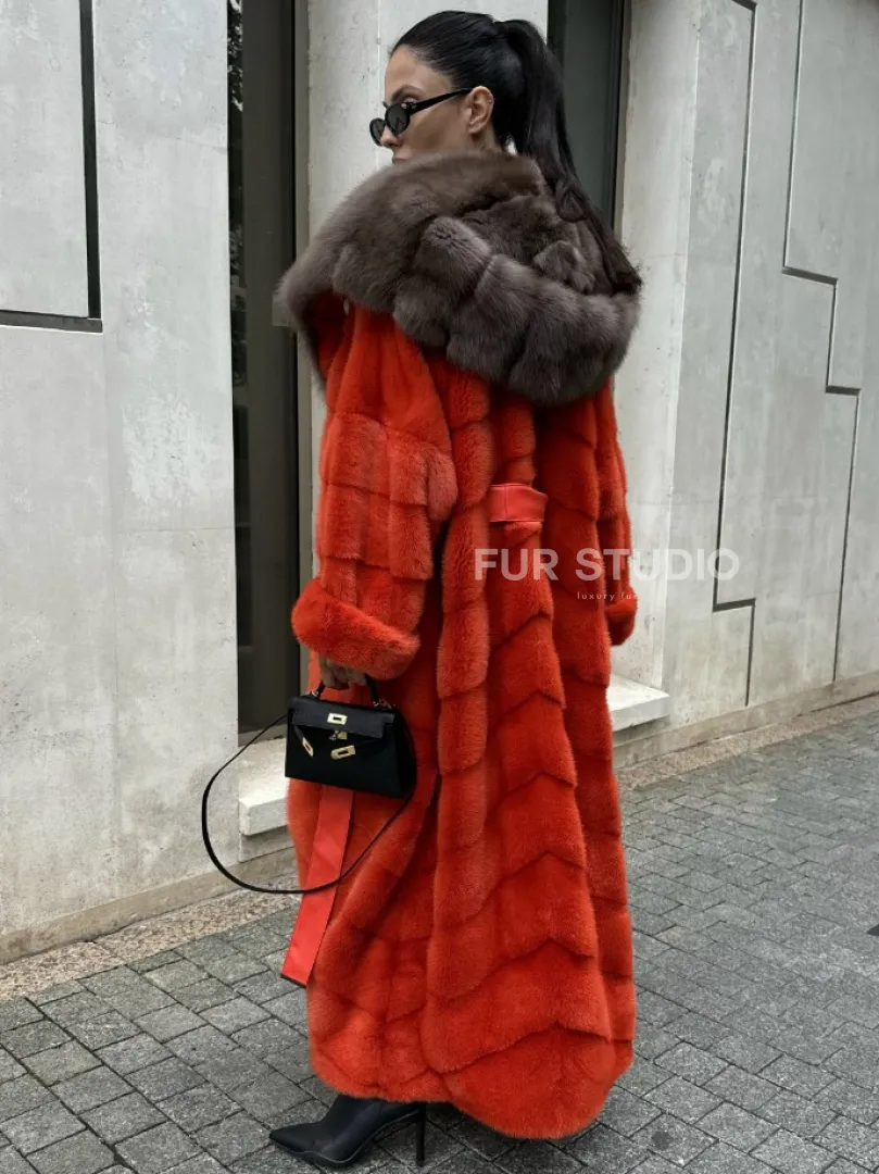 Шуба норковая с капюшоном из меха куницы в красном цвете доступна для покупки в нашем шоуруме Furs Studio в Москве. У нас так же есть доставка во все города России. Добавьте немного роскоши в свой гардероб с этой шубой, которая будет служить вам многие годы.