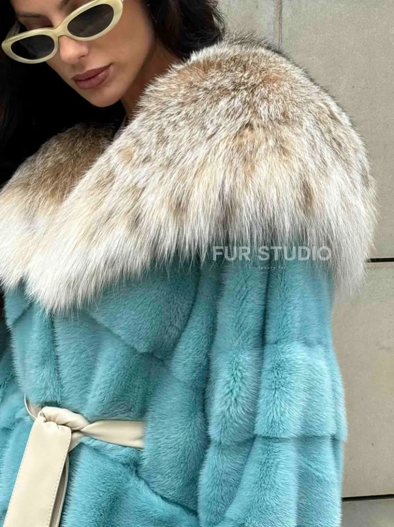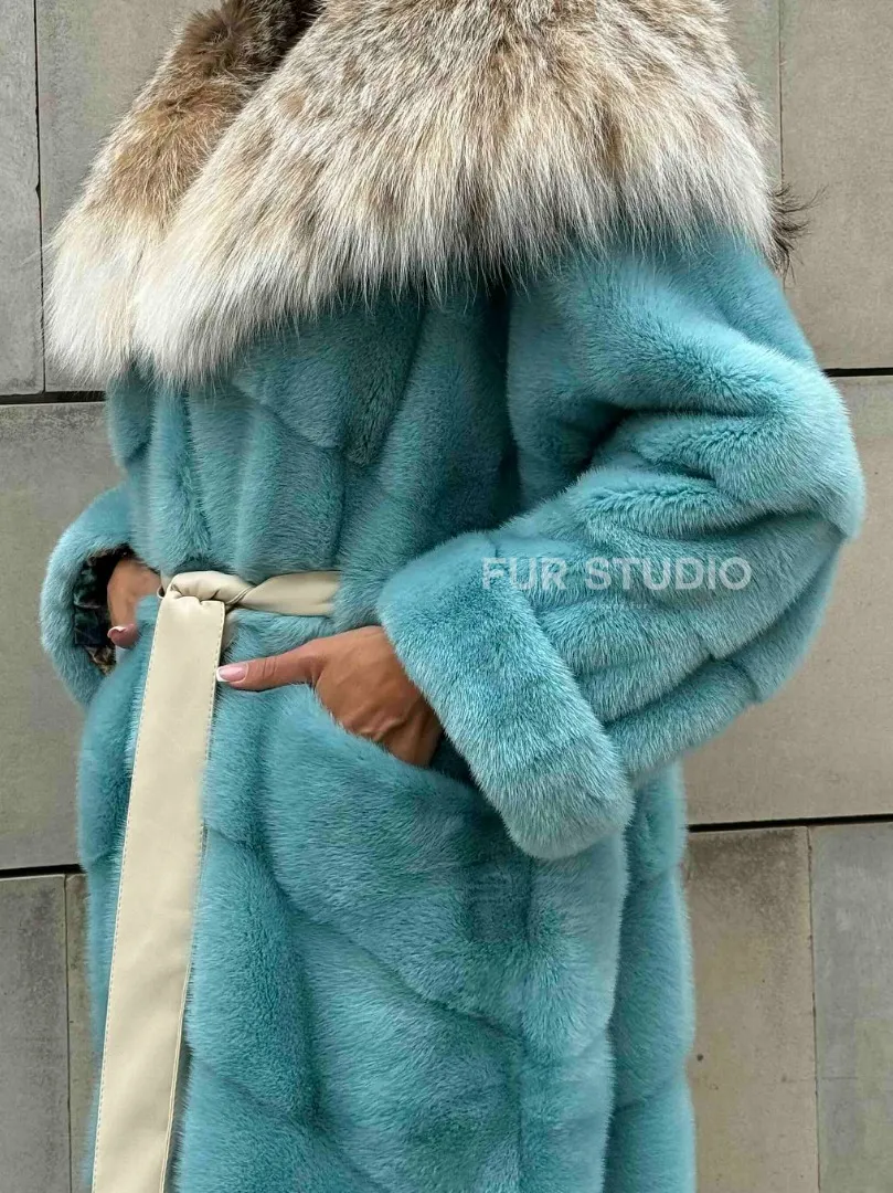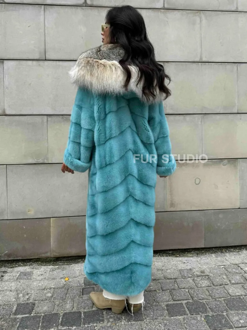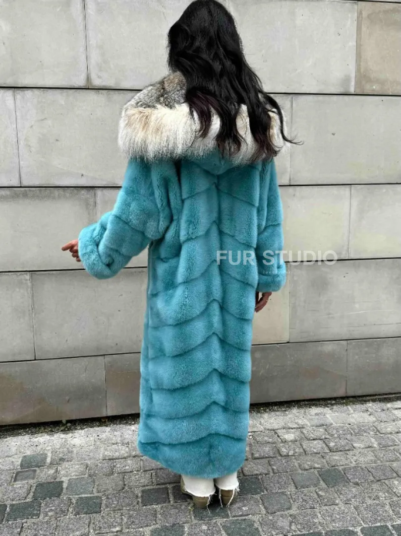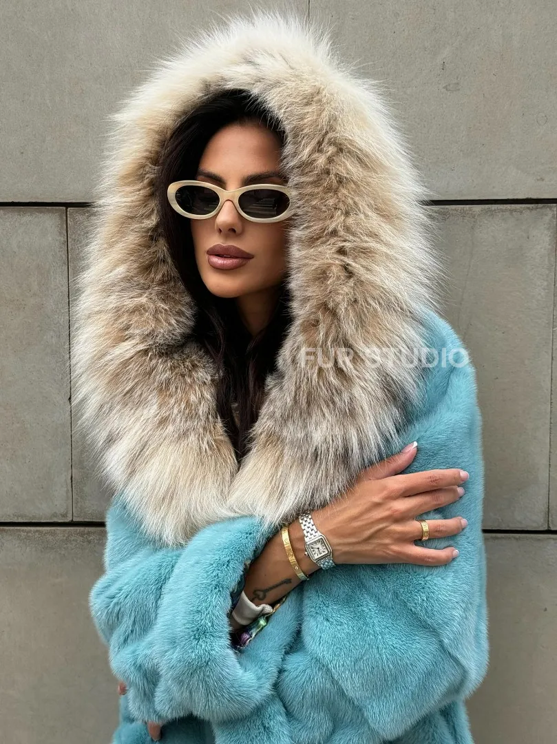 Шуба норковая с капюшоном из меха рыси - цвет Тиффани доступна для покупки в нашем шоуруме Furs Studio в Москве. У нас так же есть доставка во все города России. Добавьте немного роскоши в свой гардероб с этой шубой, которая будет служить вам многие годы.