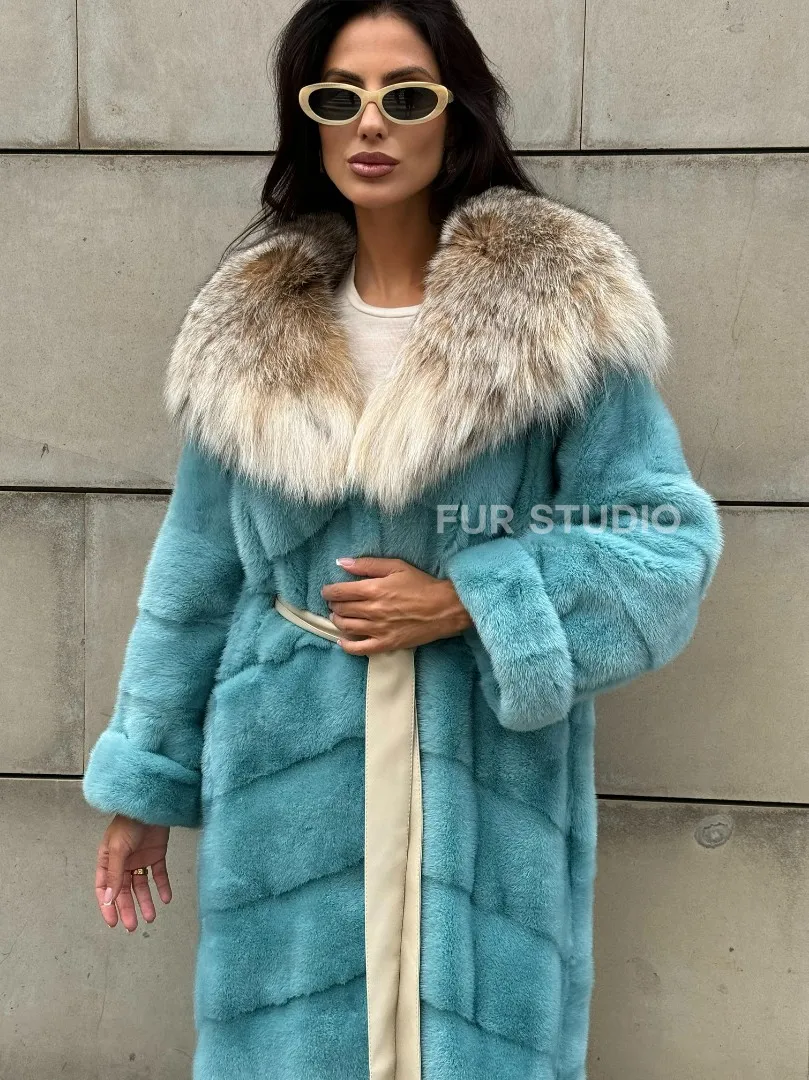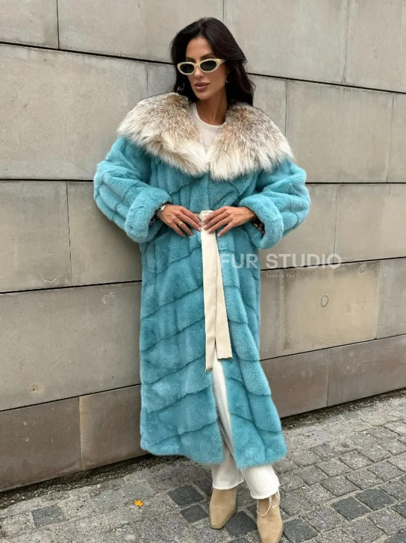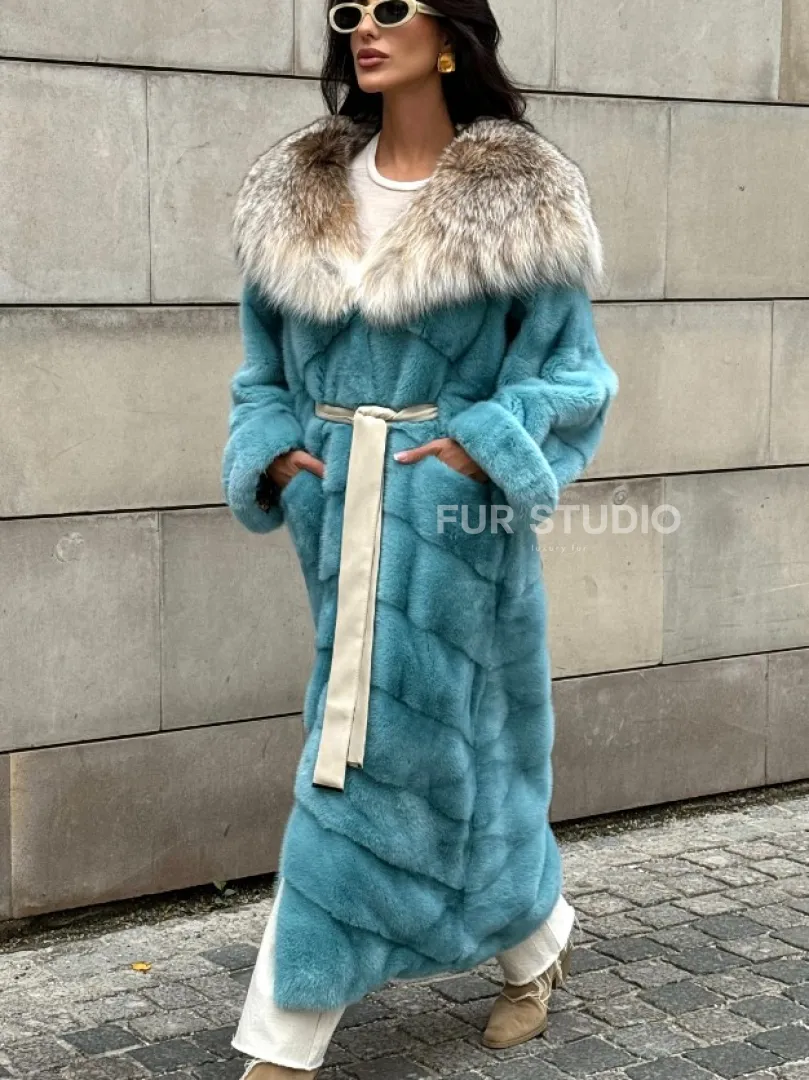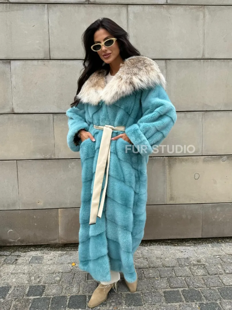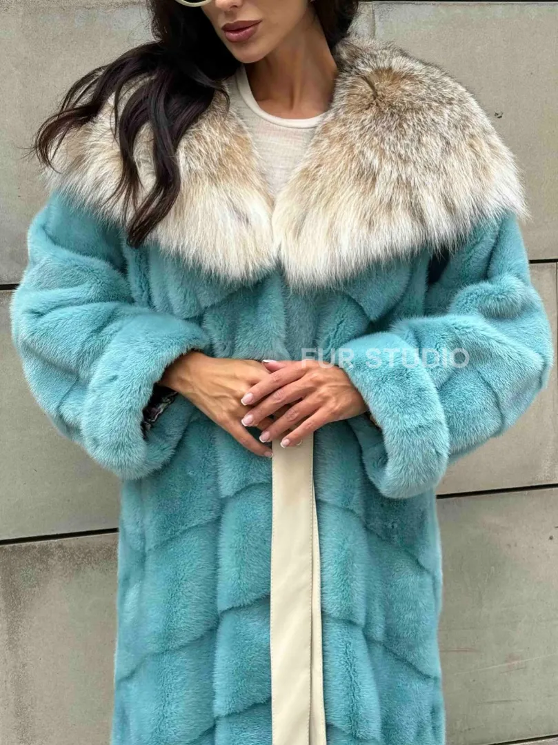Шуба норковая с капюшоном из меха рыси - цвет Тиффани доступна для покупки в нашем шоуруме Furs Studio в Москве. У нас так же есть доставка во все города России. Добавьте немного роскоши в свой гардероб с этой шубой, которая будет служить вам многие годы.