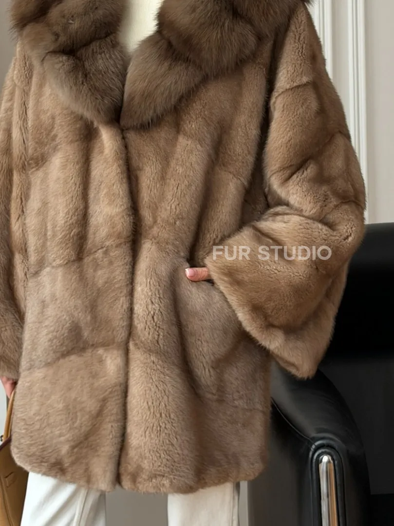 Мех данной шубы аукционная норка , цвет бежевый. Предлагается в размерах от 50 до 56. Длина модели 80-85 см, что выгодно подчеркивает фигуру девушек. Эта модель идеально подойдет для девушек и женщин, предпочитающих роскошные натуральные меха.