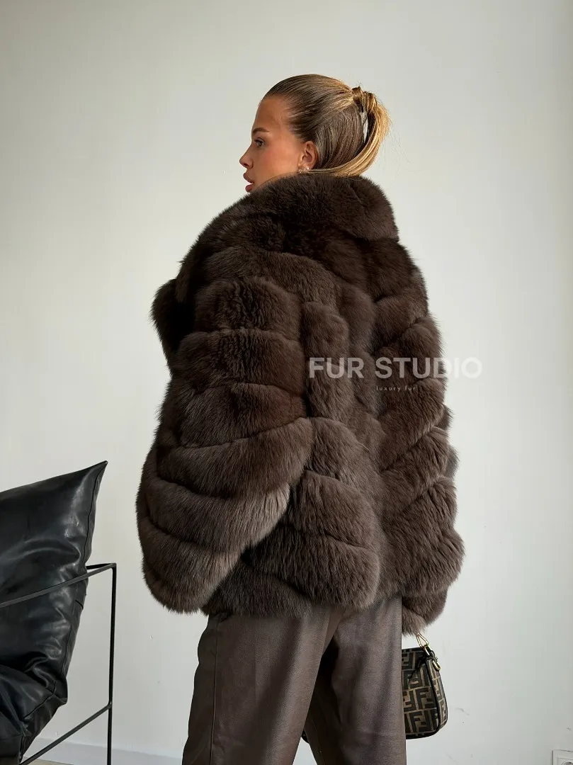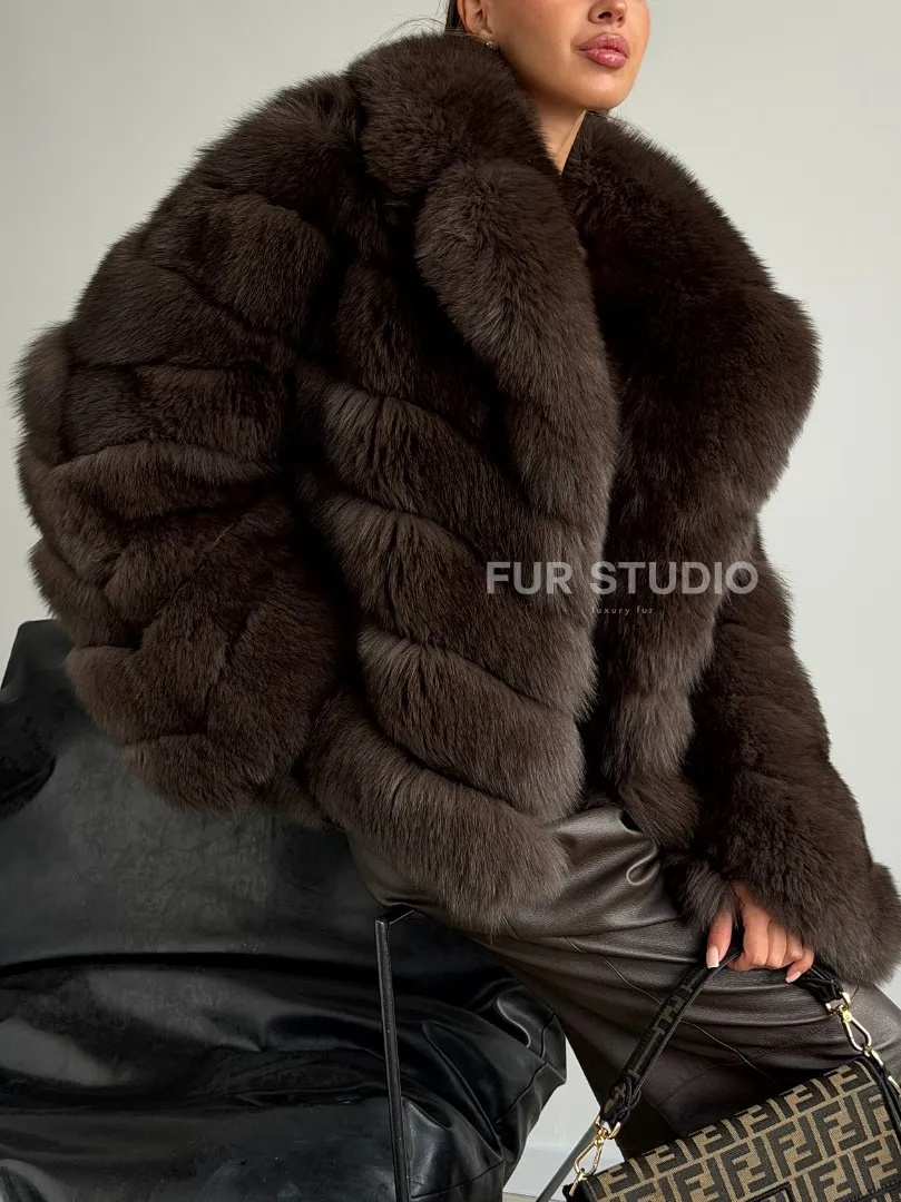 Мех данной шубы финский песец, цвет коричневый. Предлагается в размерах от 42 до 50. Длина модели 55-60 см, что выгодно подчеркивает фигуру девушек. Эта модель идеально подойдет для девушек и женщин, предпочитающих роскошные натуральные меха.