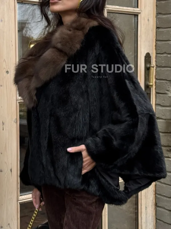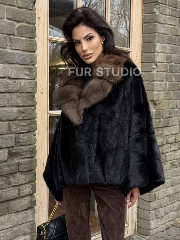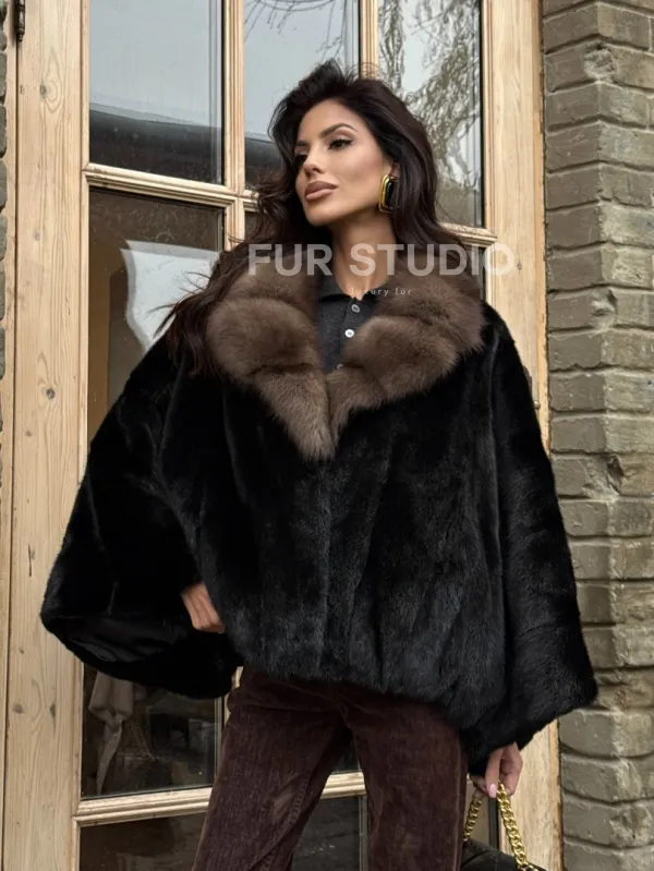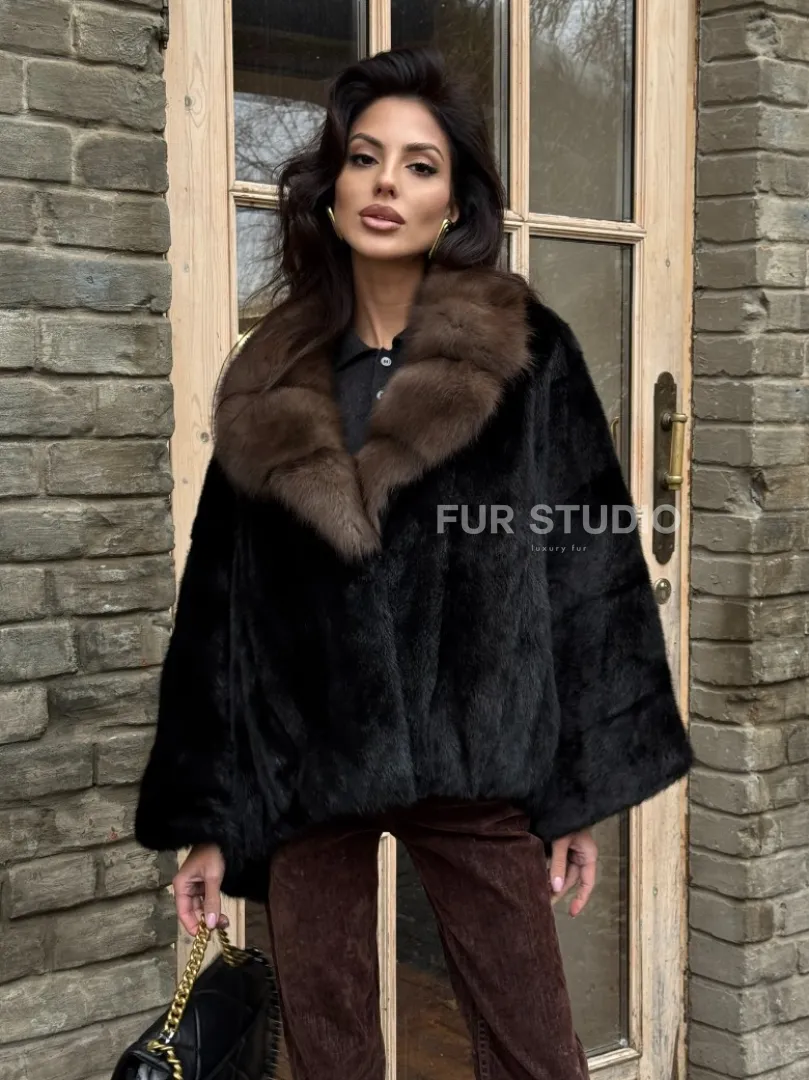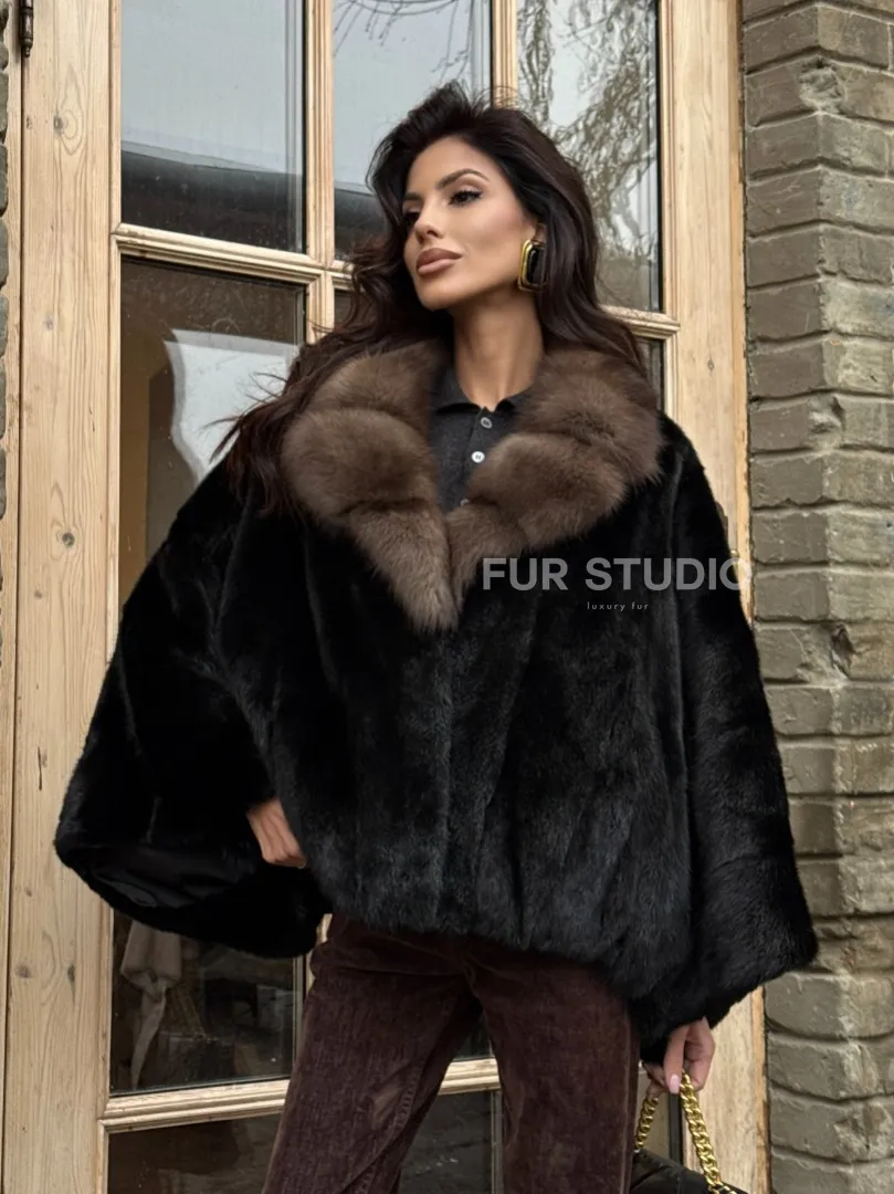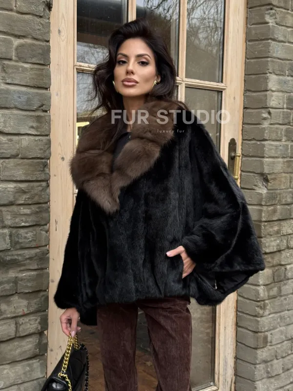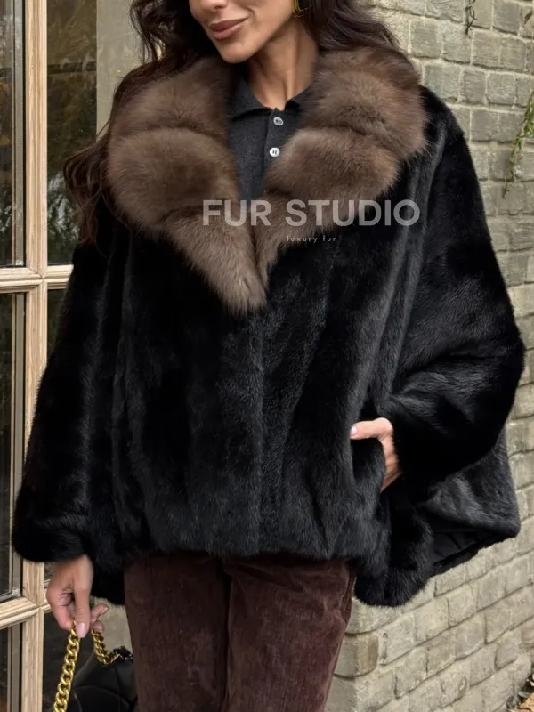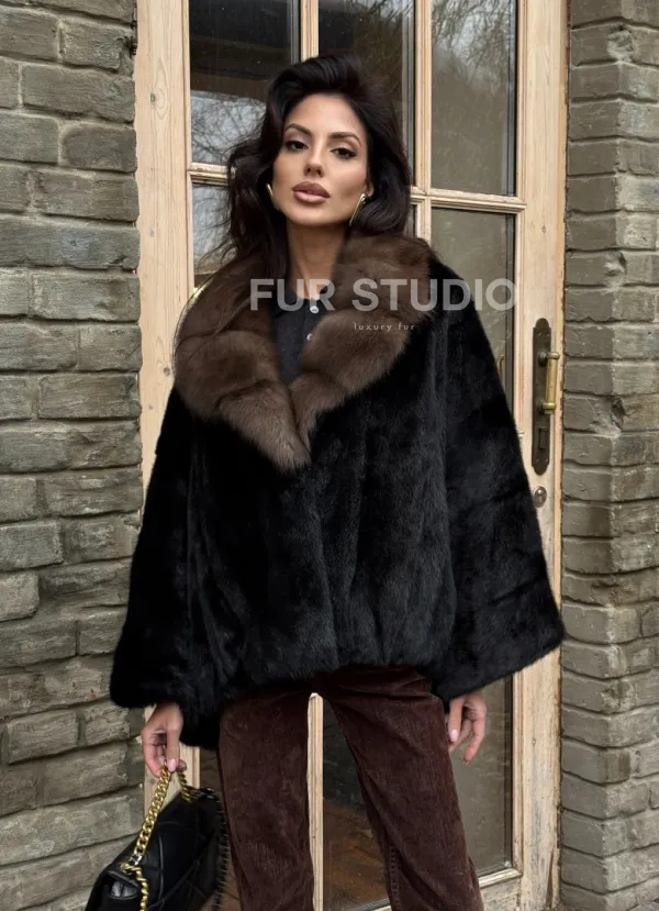 Шуба - пончо из аукционной норки Black с воротником из куницы доступна для покупки в нашем шоуруме Furs Studio в Москве. У нас так же есть доставка во все города России. Добавьте немного роскоши в свой гардероб с этой шубой, которая будет служить вам многие годы.