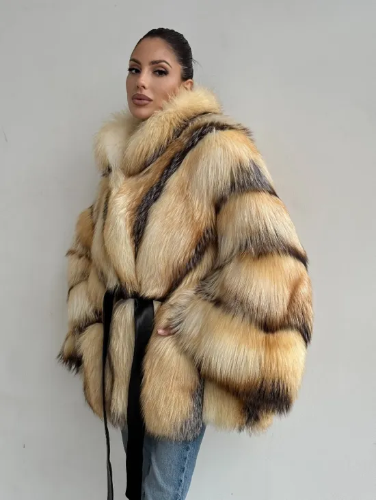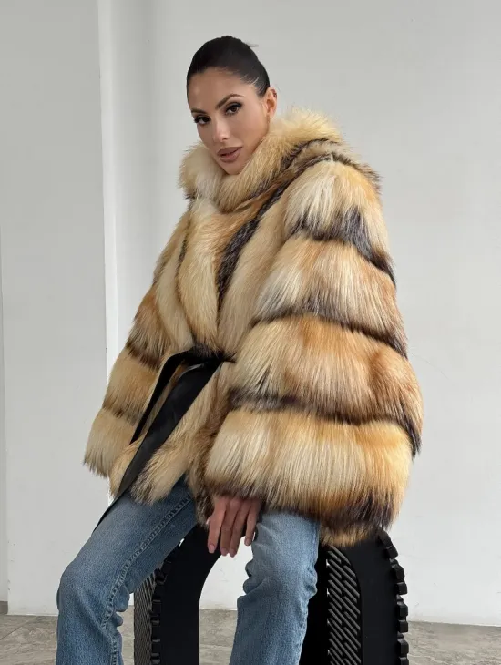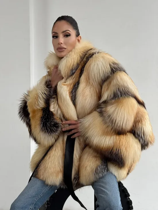 Мех данной шубы лиса, цвет рыжий. Предлагается в размерах от 42 до 52. Длина модели 70-75 см, что выгодно подчеркивает фигуру девушек. Эта модель идеально подойдет для девушек и женщин, предпочитающих роскошные натуральные меха.