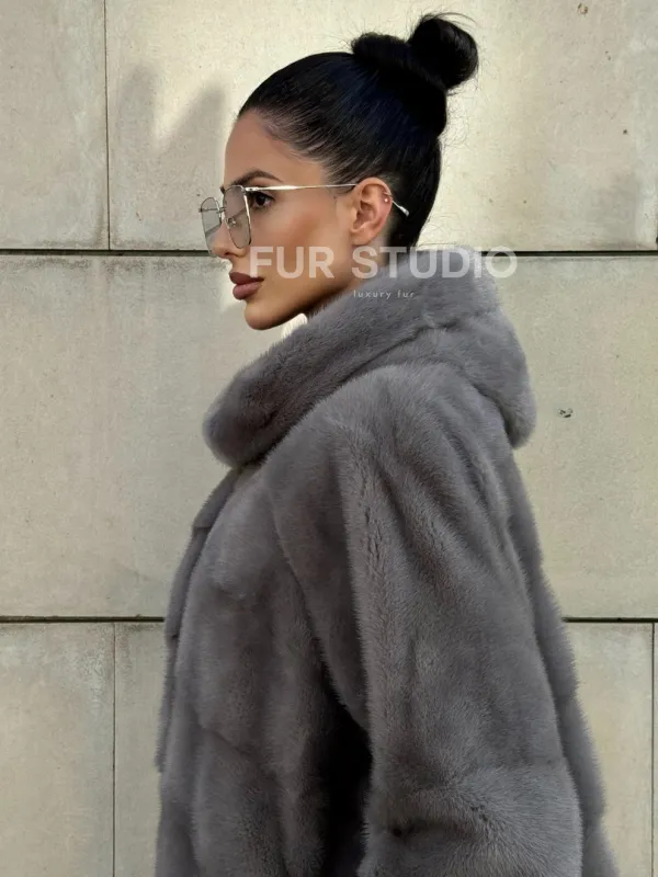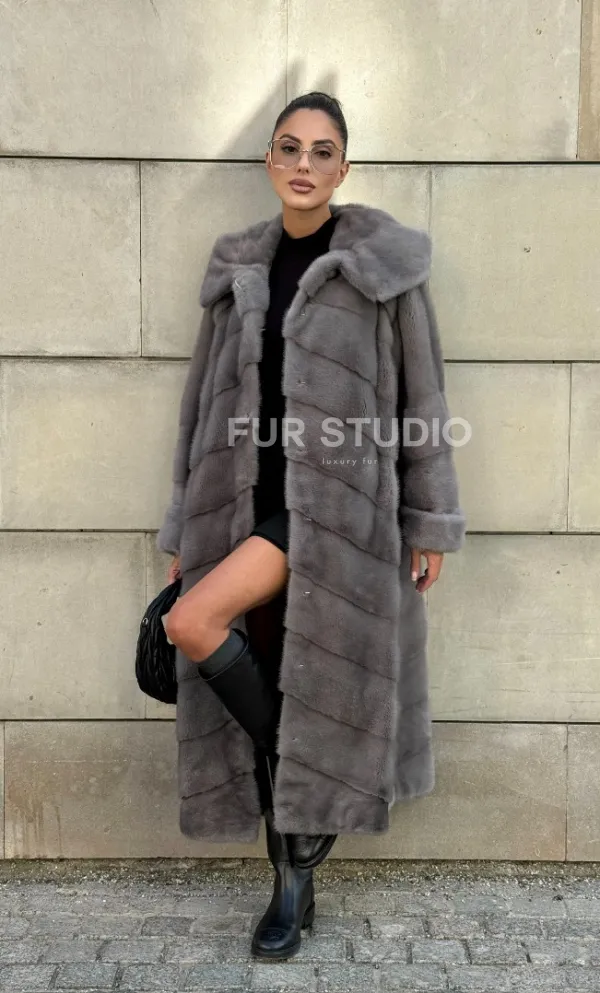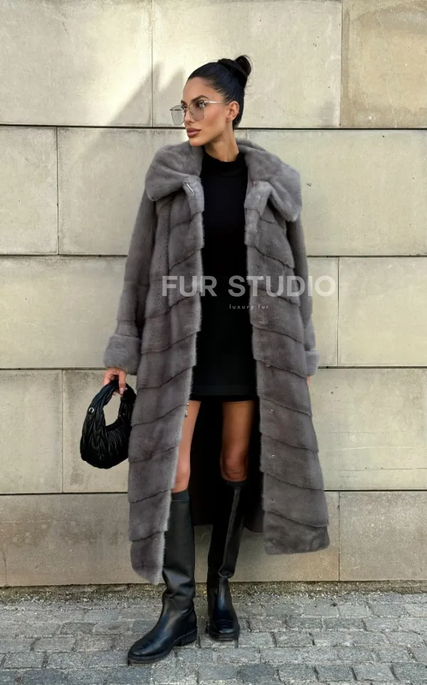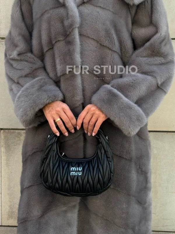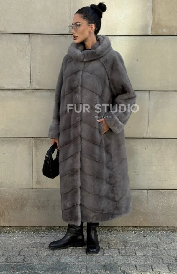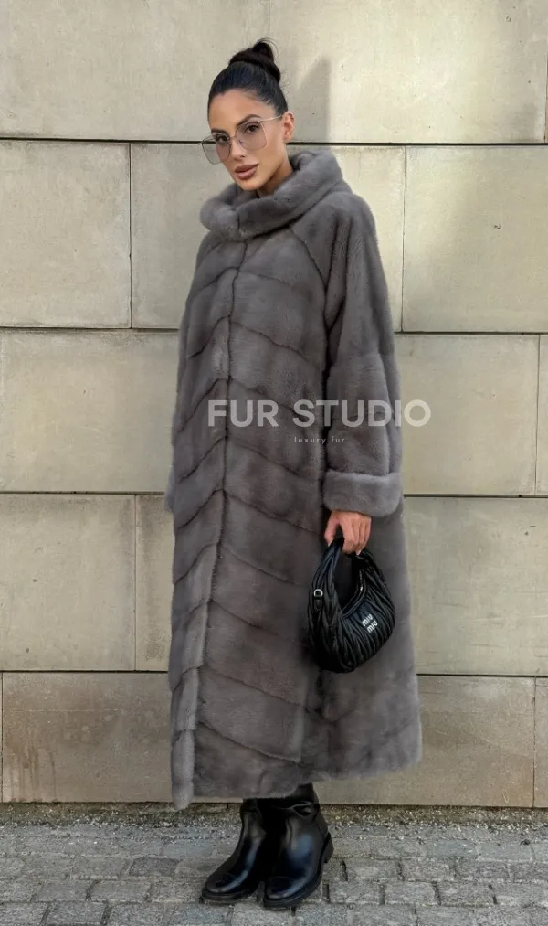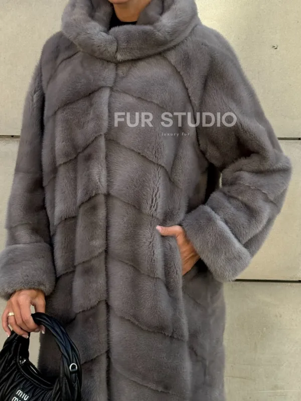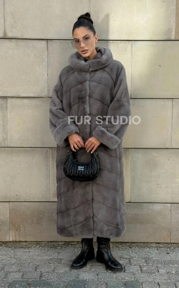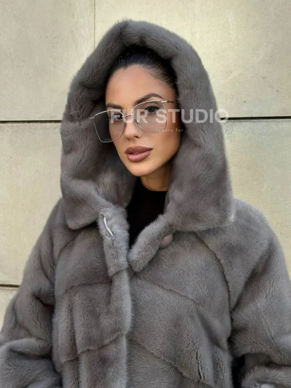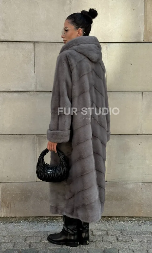 Шуба в диагональной выкладке меха норки, графит грей с капюшоном доступна для покупки в нашем шоуруме Furs Studio в Москве. У нас так же есть доставка во все города России. Добавьте немного роскоши в свой гардероб с этой шубой, которая будет служить вам многие годы.
