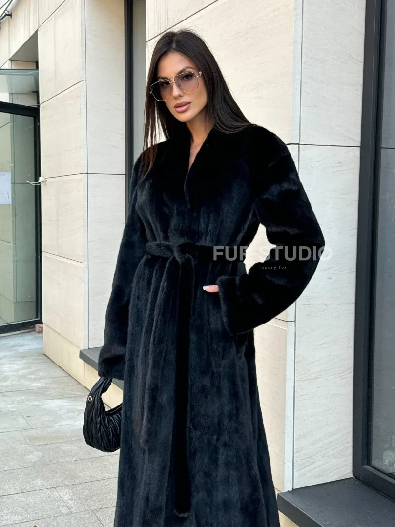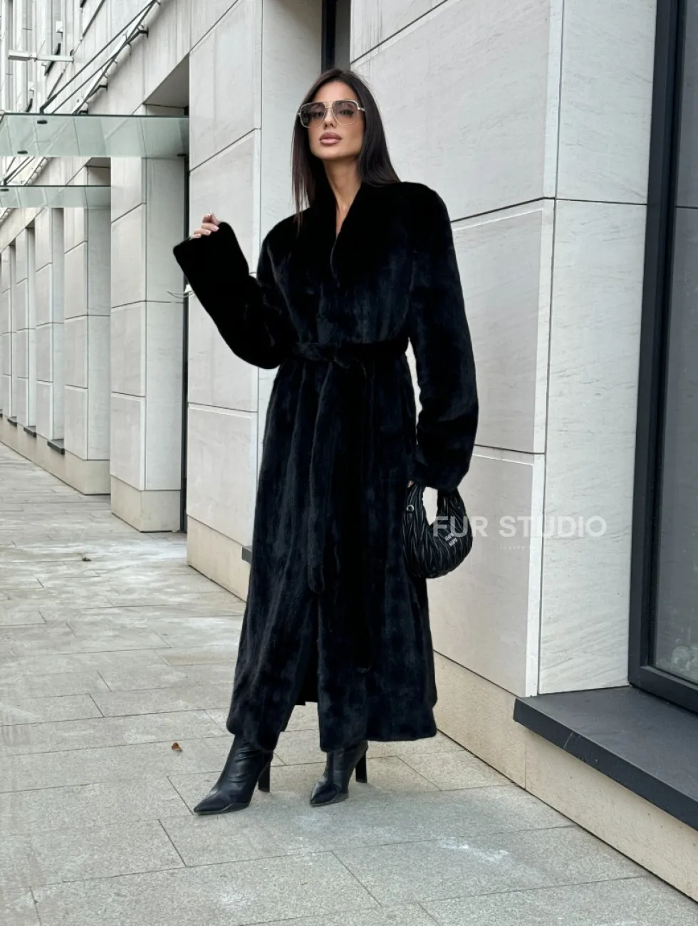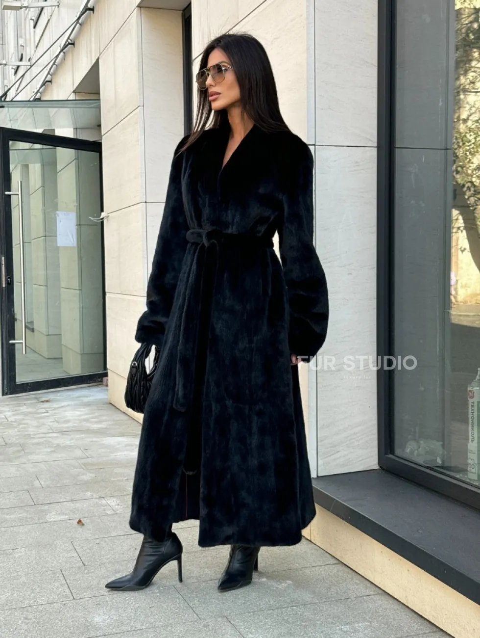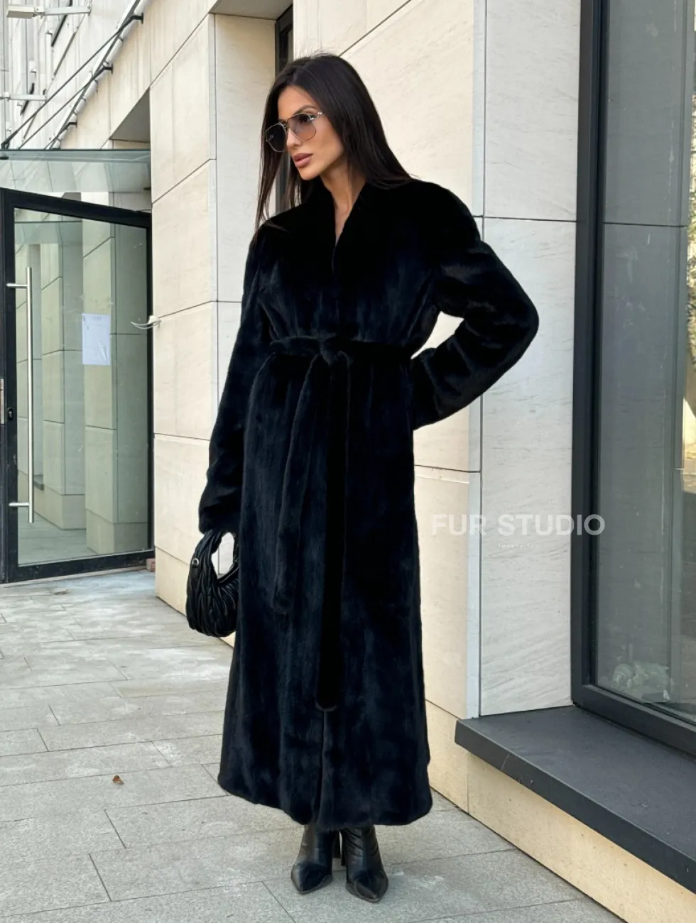 Шуба халат из аукционного меха норки, V-образный воротник с поясом доступна для покупки в нашем шоуруме Furs Studio в Москве. У нас так же есть доставка во все города России. Добавьте немного роскоши в свой гардероб с этой шубой, которая будет служить вам многие годы.