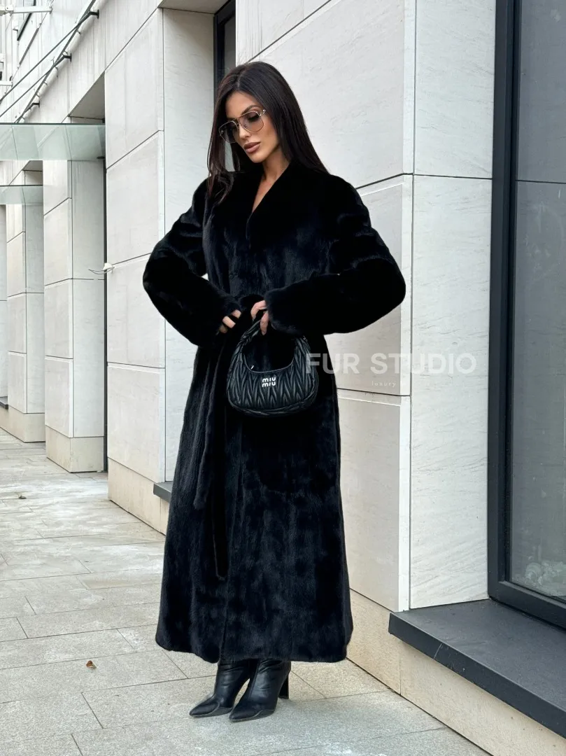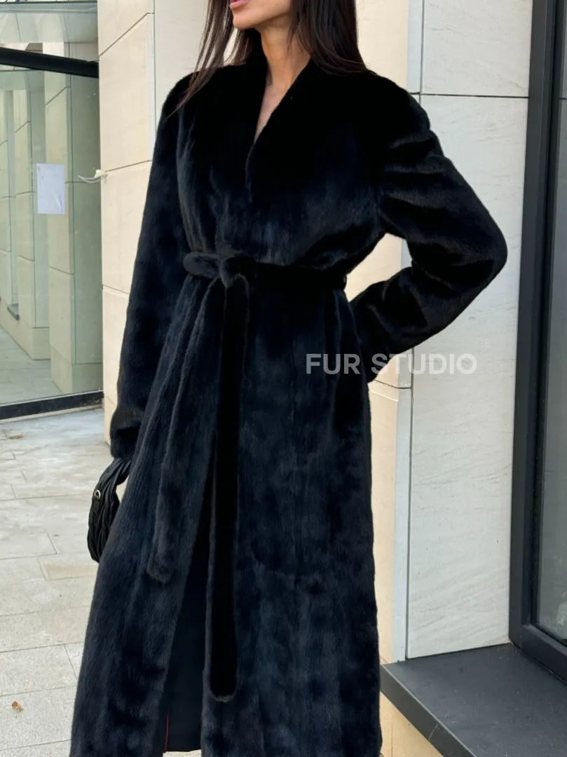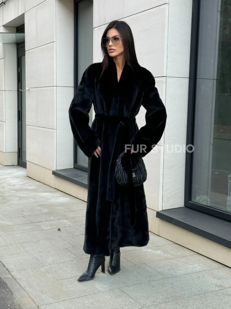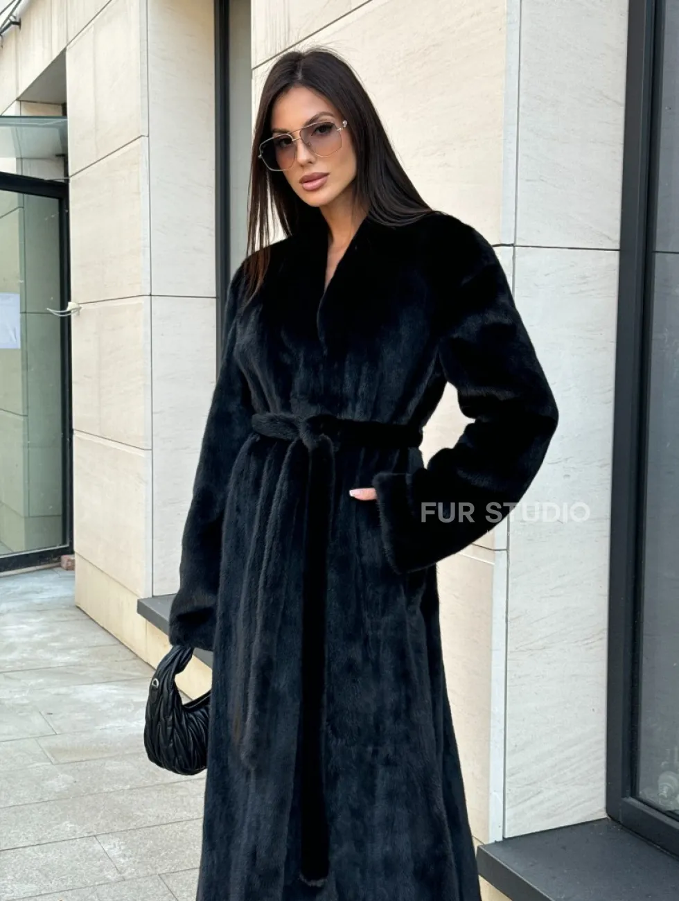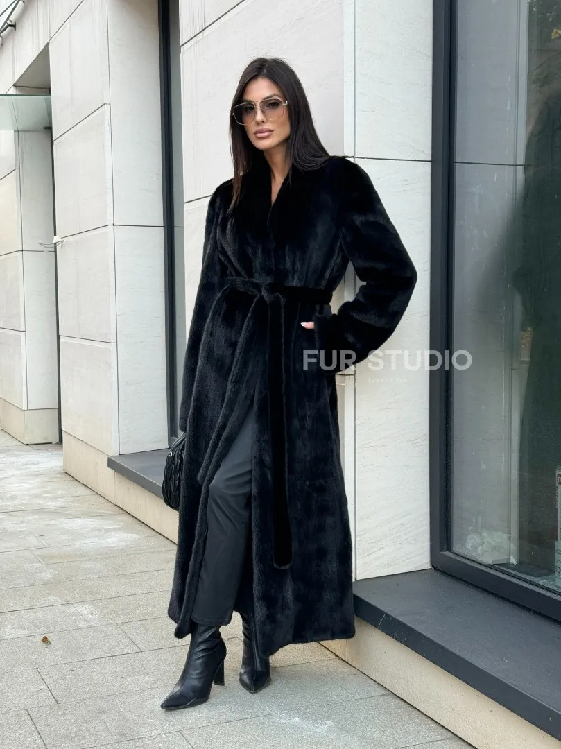 Шуба халат из аукционного меха норки, V-образный воротник с поясом доступна для покупки в нашем шоуруме Furs Studio в Москве. У нас так же есть доставка во все города России. Добавьте немного роскоши в свой гардероб с этой шубой, которая будет служить вам многие годы.