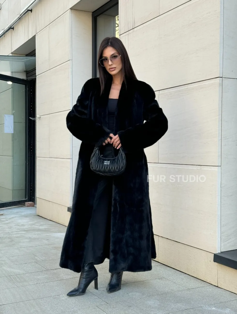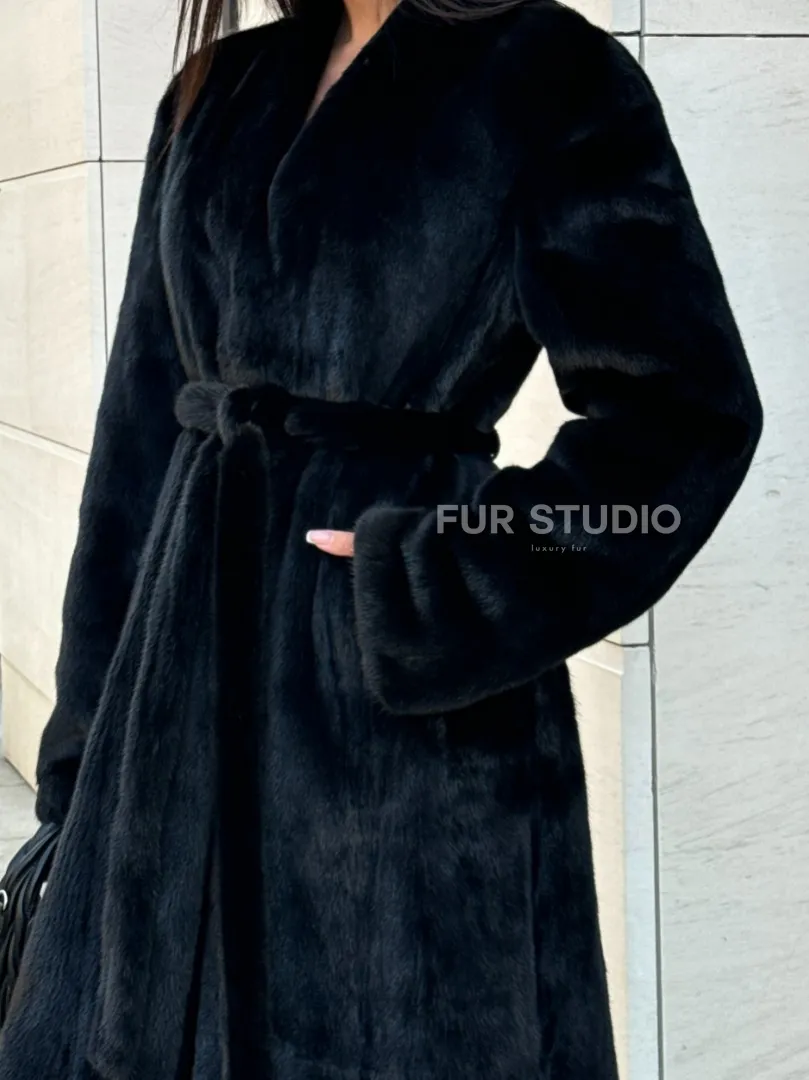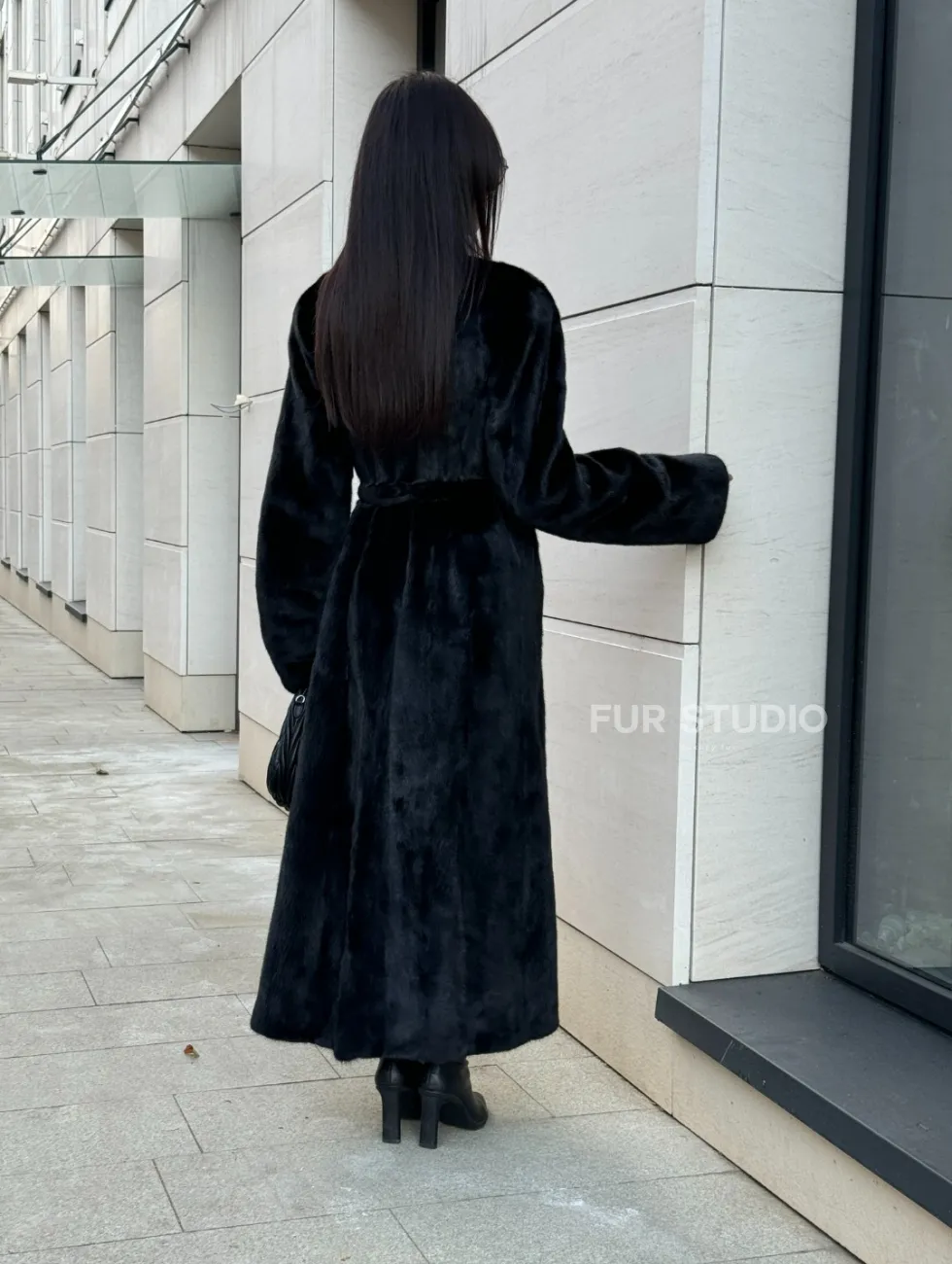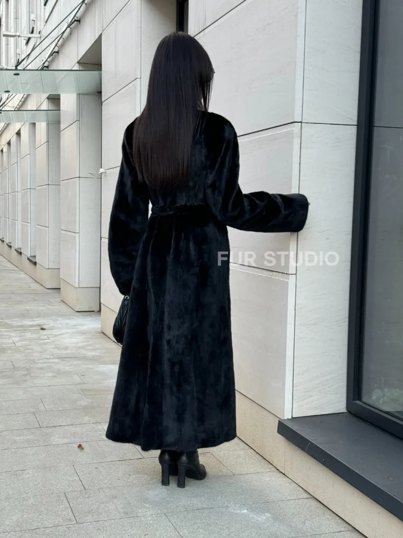 Шуба халат из аукционного меха норки, V-образный воротник с поясом доступна для покупки в нашем шоуруме Furs Studio в Москве. У нас так же есть доставка во все города России. Добавьте немного роскоши в свой гардероб с этой шубой, которая будет служить вам многие годы.