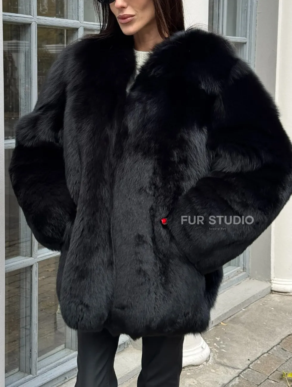 Мех данной шубы лиса, цвет черный. Предлагается в размерах от 42 до 46. Длина модели 70-75 см, что выгодно подчеркивает фигуру девушек. Эта модель идеально подойдет для девушек и женщин, предпочитающих роскошные натуральные меха.