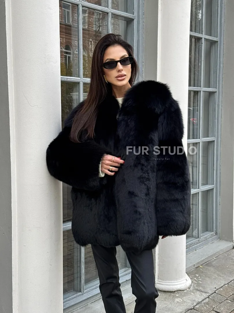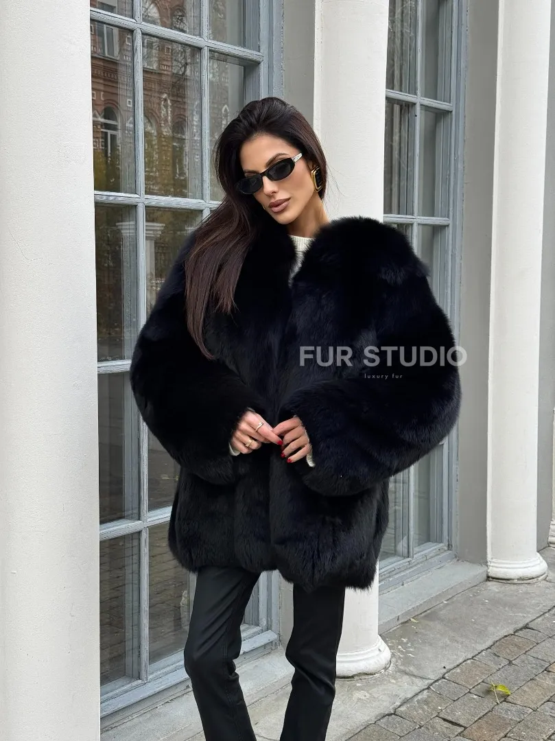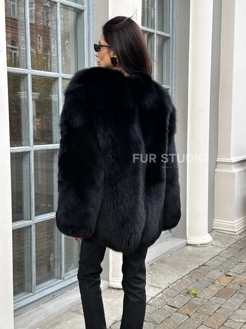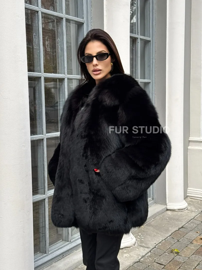 Шуба - жакет из меха песца цельные платины TOTAL BLACK доступна для покупки в нашем шоуруме Furs Studio в Москве. У нас так же есть доставка во все города России. Добавьте немного роскоши в свой гардероб с этой шубой, которая будет служить вам многие годы.