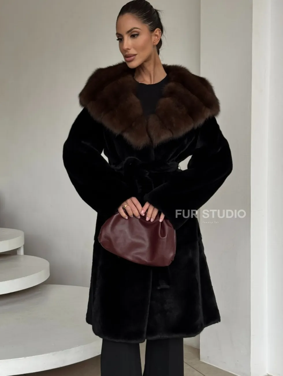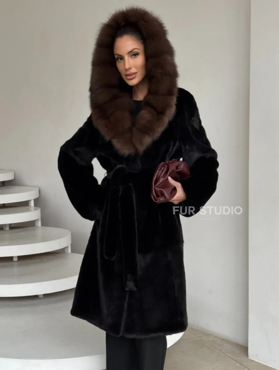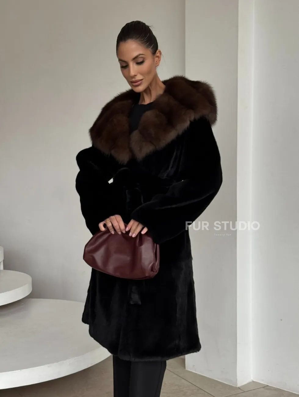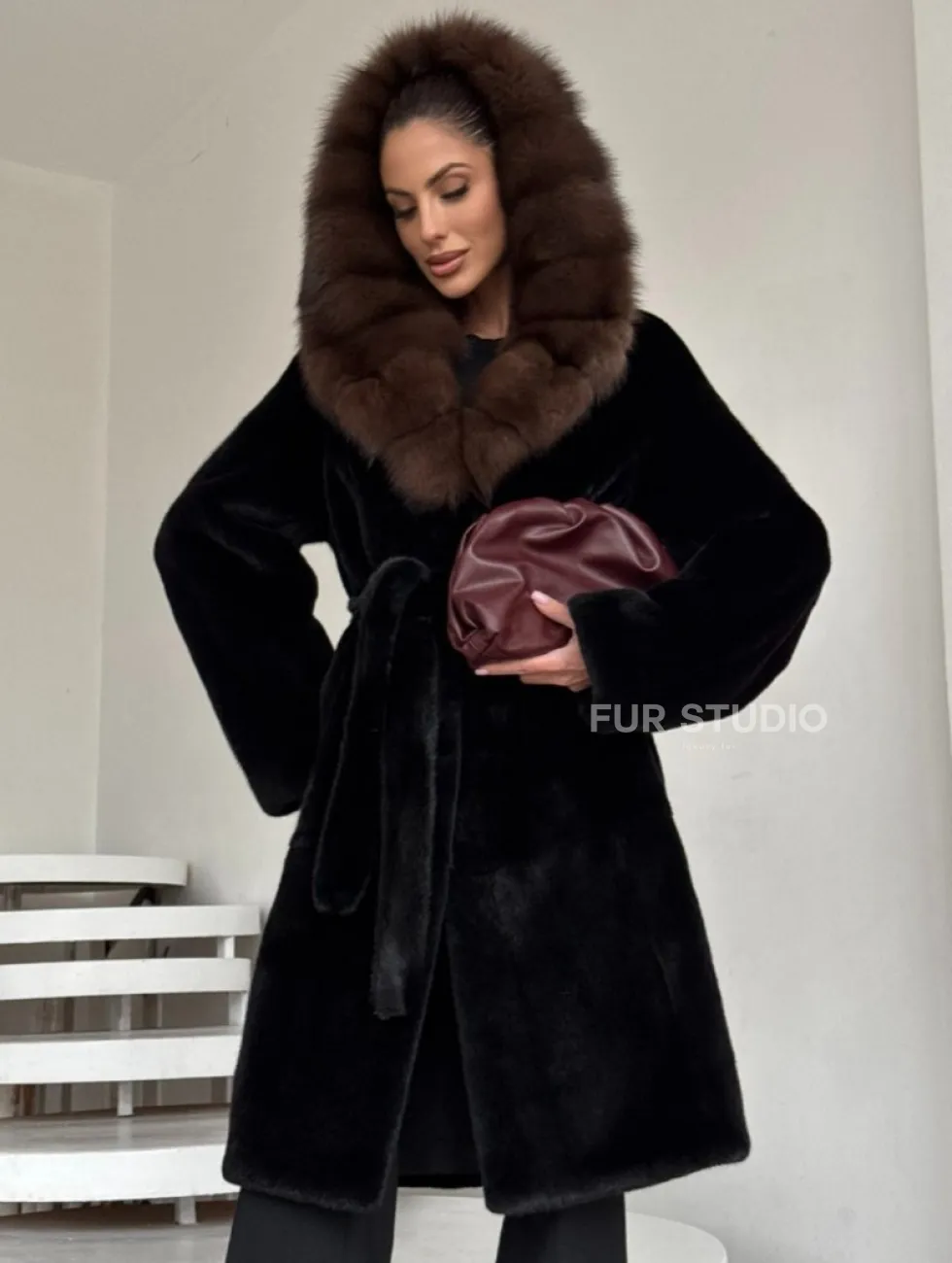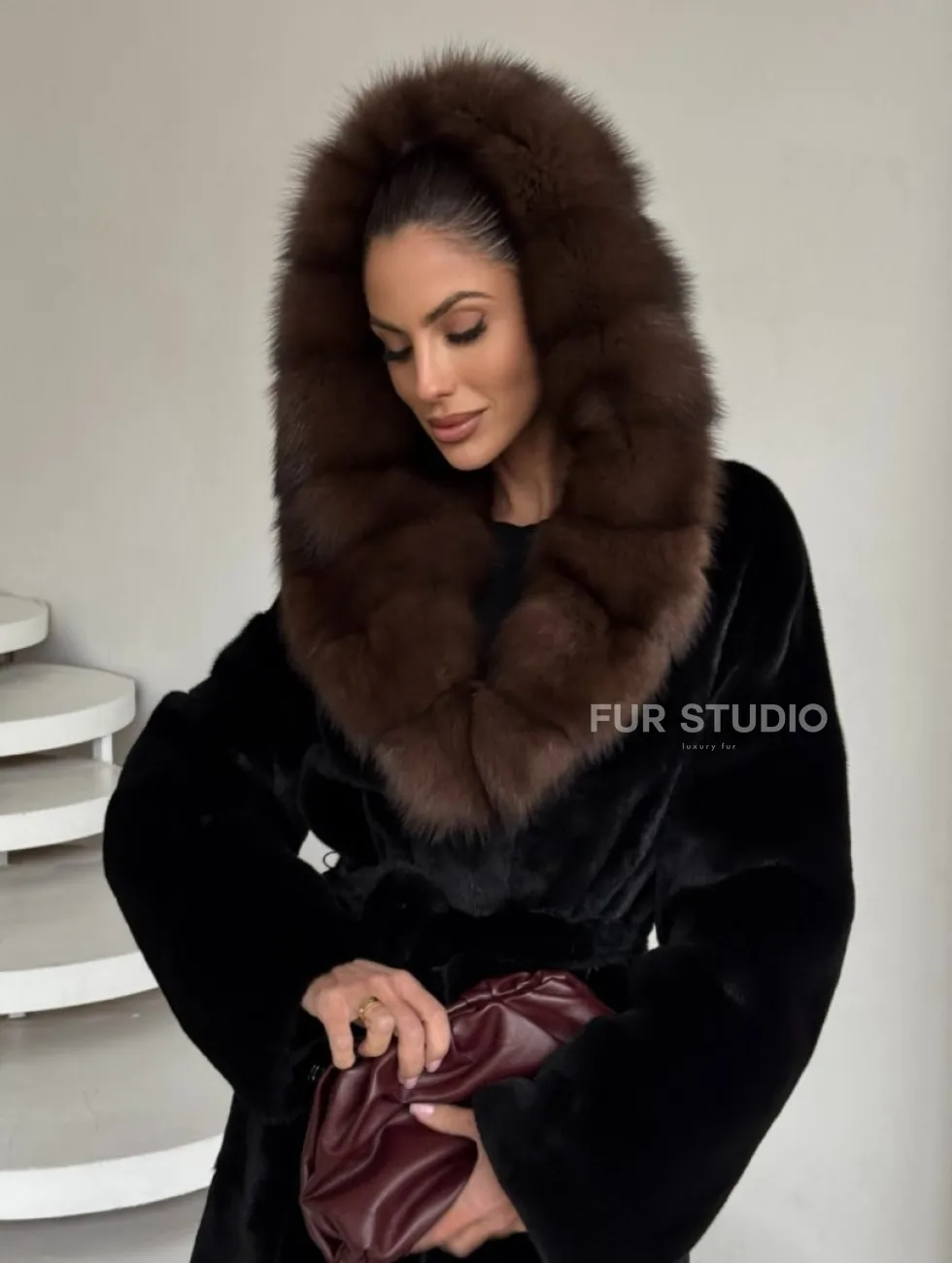 Шуба женская из норки PREMIUM BLACKGLAMA с капюшоном кобра из меха куницы доступна для покупки в нашем шоуруме Furs Studio в Москве. У нас так же есть доставка во все города России. Добавьте немного роскоши в свой гардероб с этой шубой, которая будет служить вам многие годы.