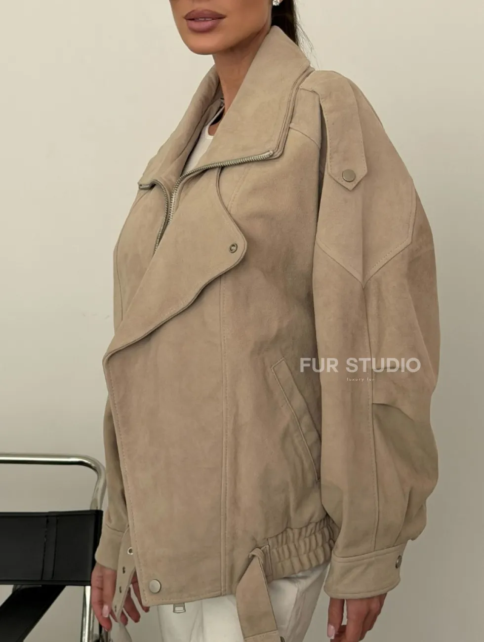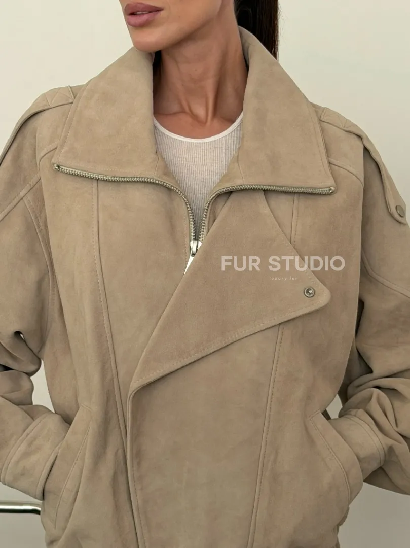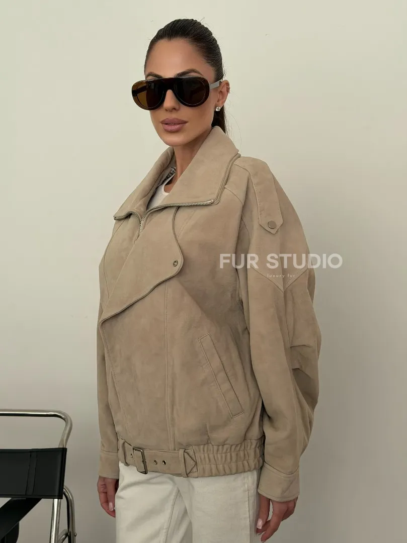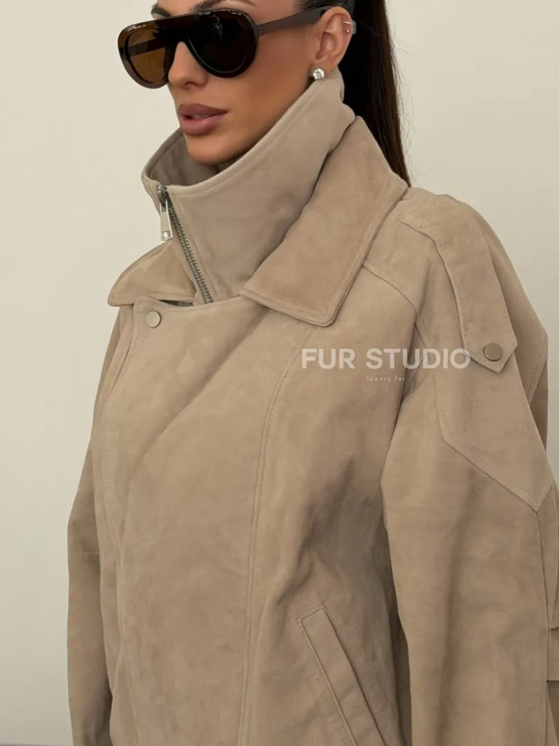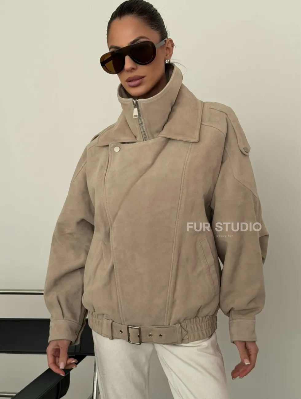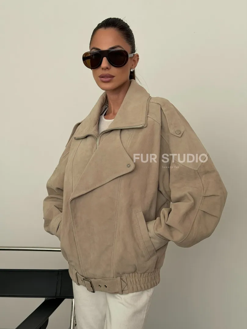Современная куртка из замшевой кожи доступна для покупки в нашем шоуруме Furs Studio в Москве, где также предоставляется удобная доставка во все города России.