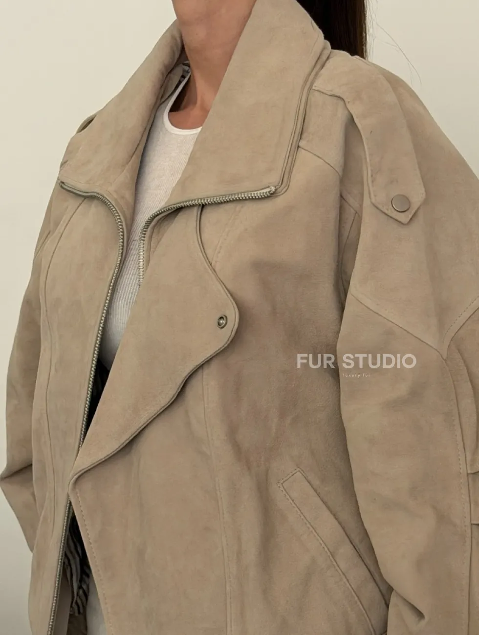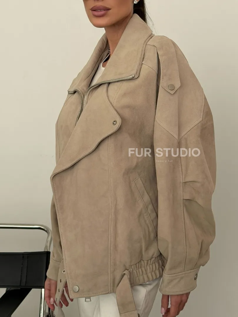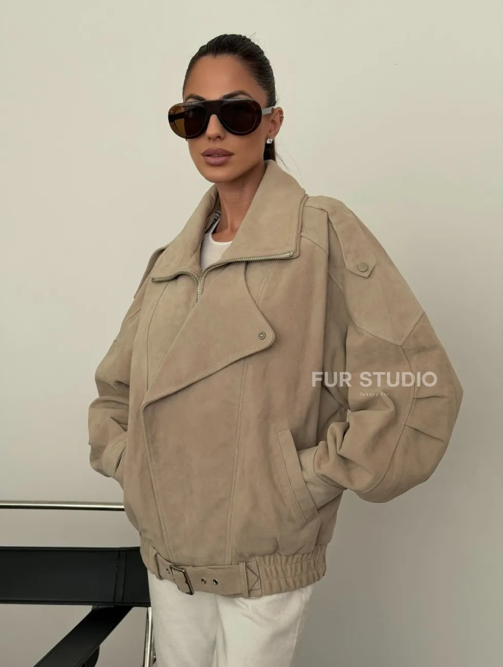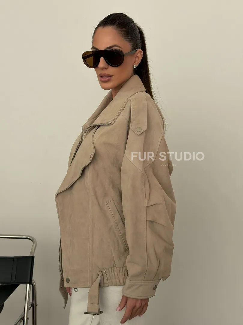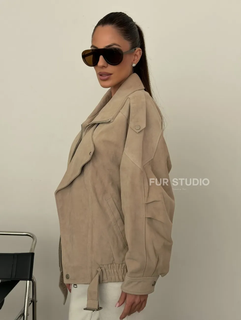 Современная куртка из замшевой кожи доступна для покупки в нашем шоуруме Furs Studio в Москве, где также предоставляется удобная доставка во все города России.