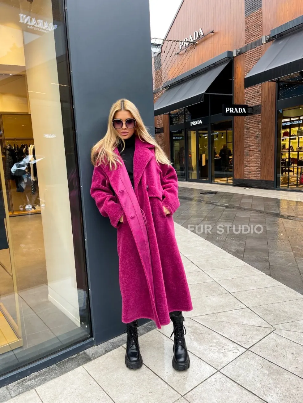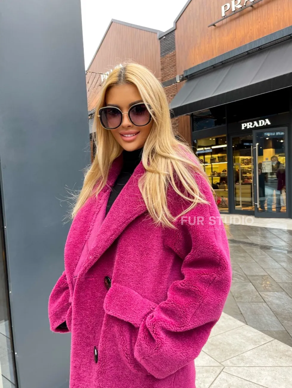 Современная шуба из натуральной шерсти отличная альтернатива для модниц, у которых бюджет ограничен. Яркий цвет подчеркивает индивидуальность владелицы и делает акцент на оттенке волос и глаз хозяйки. Длина позволяет носить короткие наряды, что очень актуально для любительниц мини в холодное время года. Широкие карманы позаботятся о тепле ручек. Прямой крой зрительно удлинит силуэт и скроет недостатки фигуры.