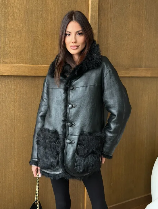 Стильная куртка - дубленка из овчины. Модель предлагается в размерах от 42 до 48. Оптимальная длина моделей 55-60 см подчеркивает линии вашей фигуры. Эта дубленка станет неотъемлемой частью гардероба для тех, кто предпочитает роскошь и утонченность натуральной кожи.