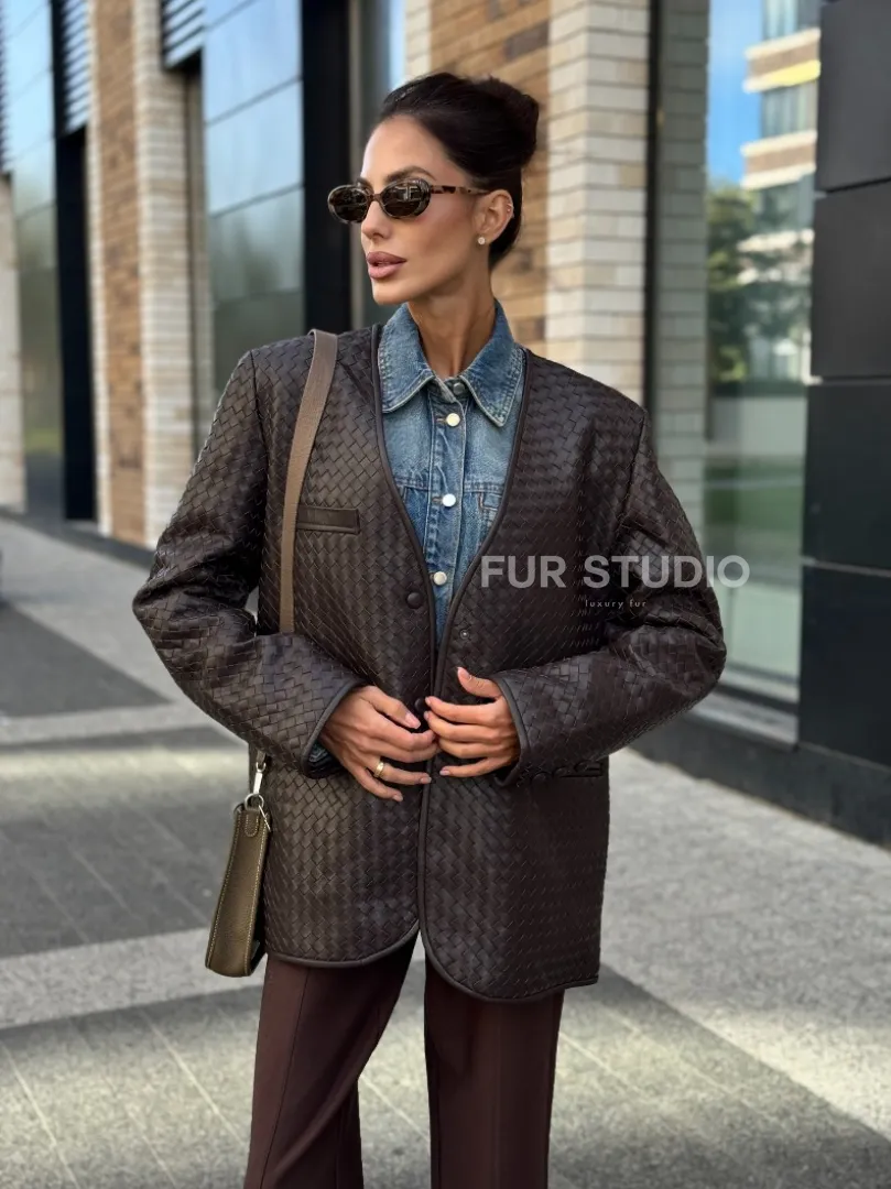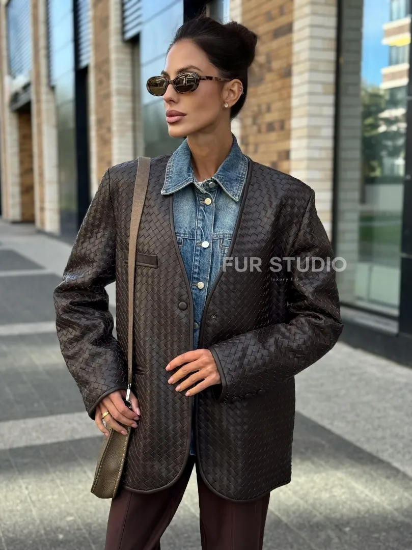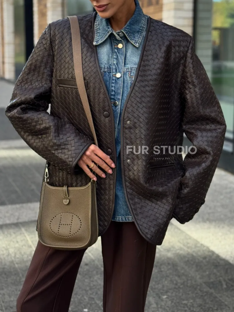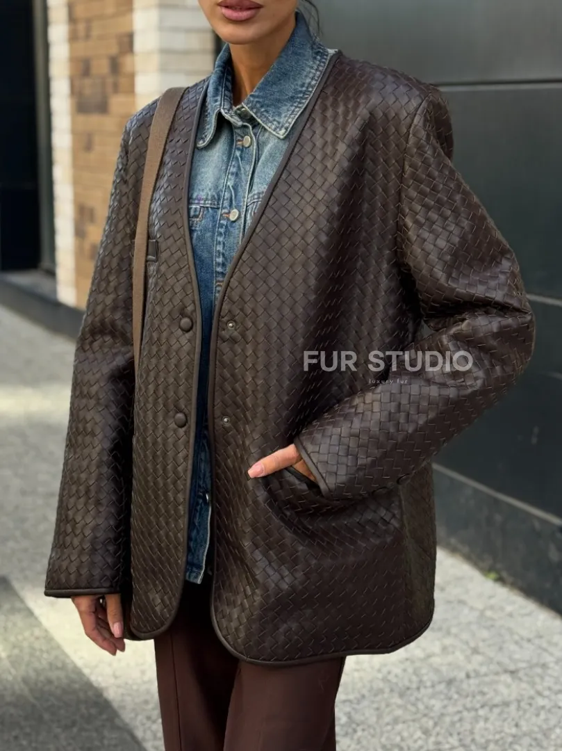 Восхититесь элегантностью и несравненным комфортом с нашей эксклюзивной коллекцией кожаных изделий. Изготовленная из первоклассной натуральной кожи, Стильный пиджак из натуральной плетеной кожи не только согреет вас в прохладные дни, но и подчеркнет ваш изысканный вкус. Уникальный дизайн и высокое качество делают наши представленные образцы идеальным выбором для утончённых образов.