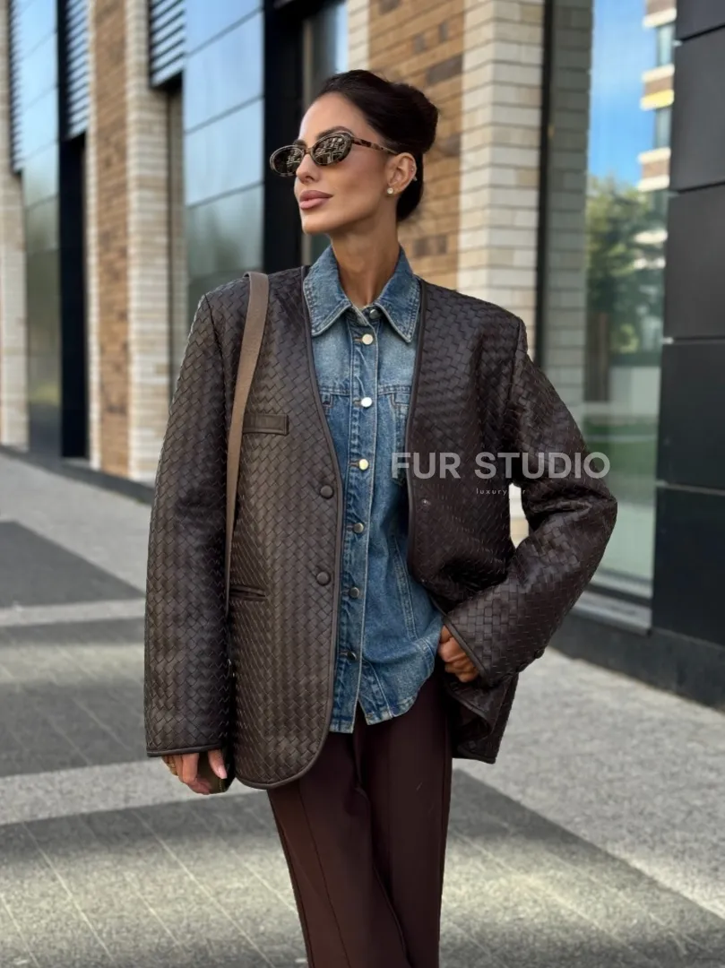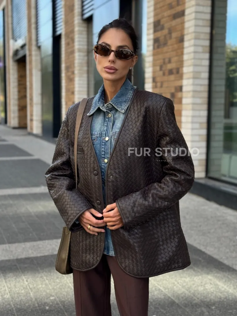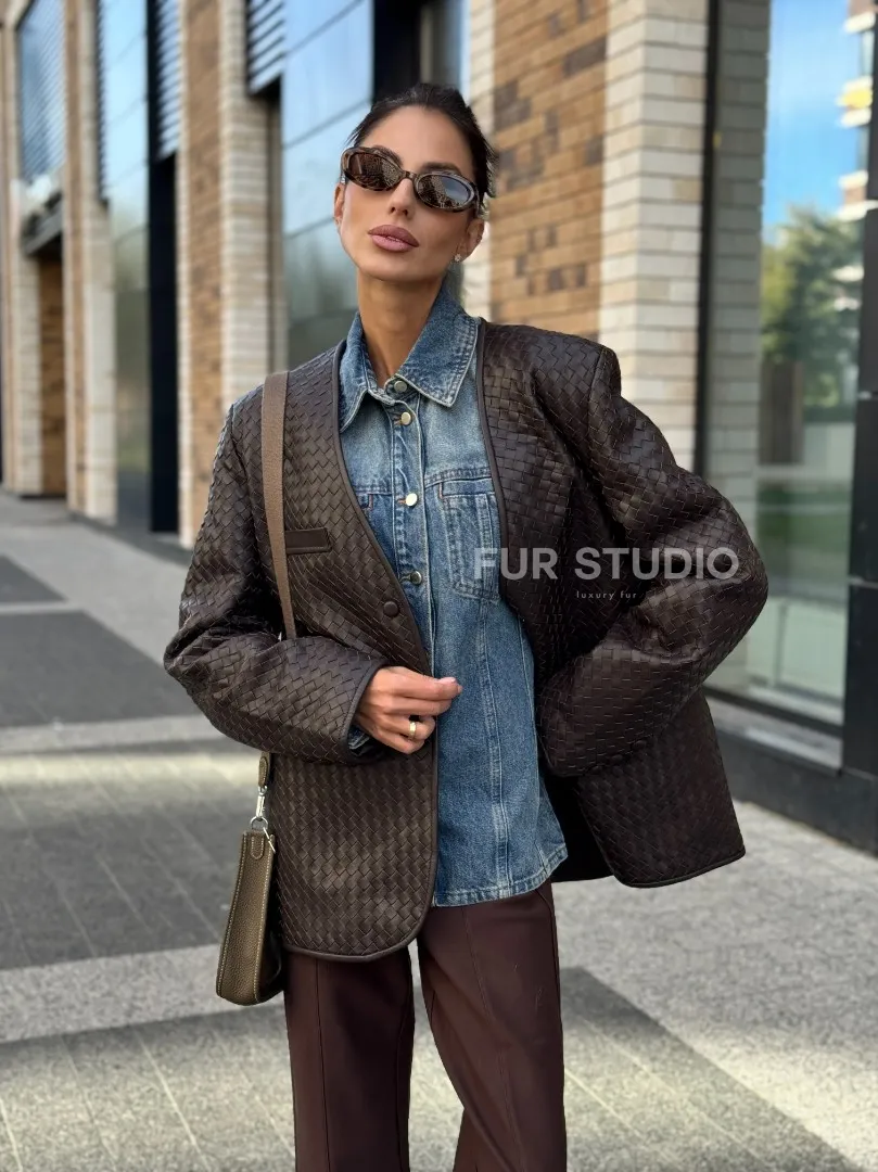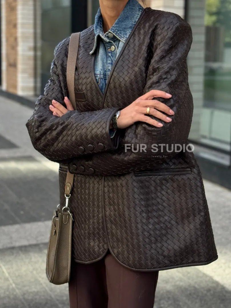Восхититесь элегантностью и несравненным комфортом с нашей эксклюзивной коллекцией кожаных изделий. Изготовленная из первоклассной натуральной кожи, Стильный пиджак из натуральной плетеной кожи не только согреет вас в прохладные дни, но и подчеркнет ваш изысканный вкус. Уникальный дизайн и высокое качество делают наши представленные образцы идеальным выбором для утончённых образов.