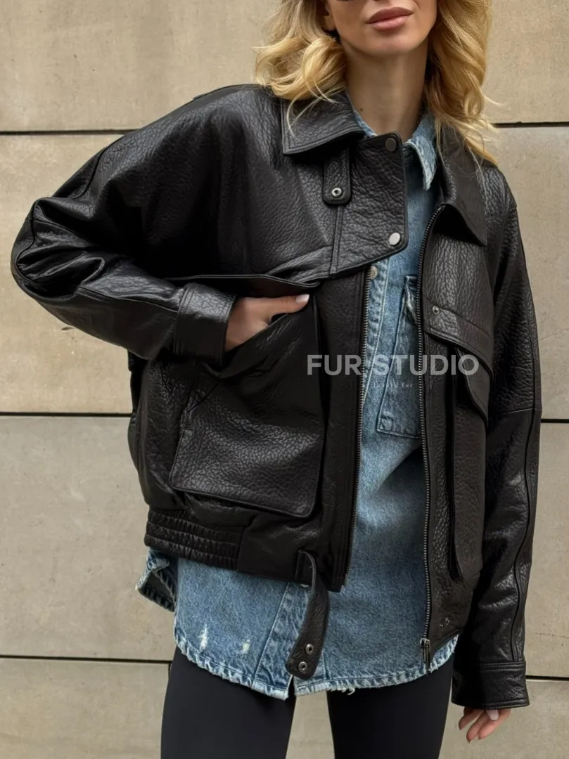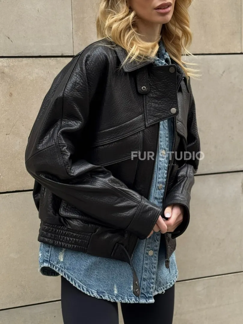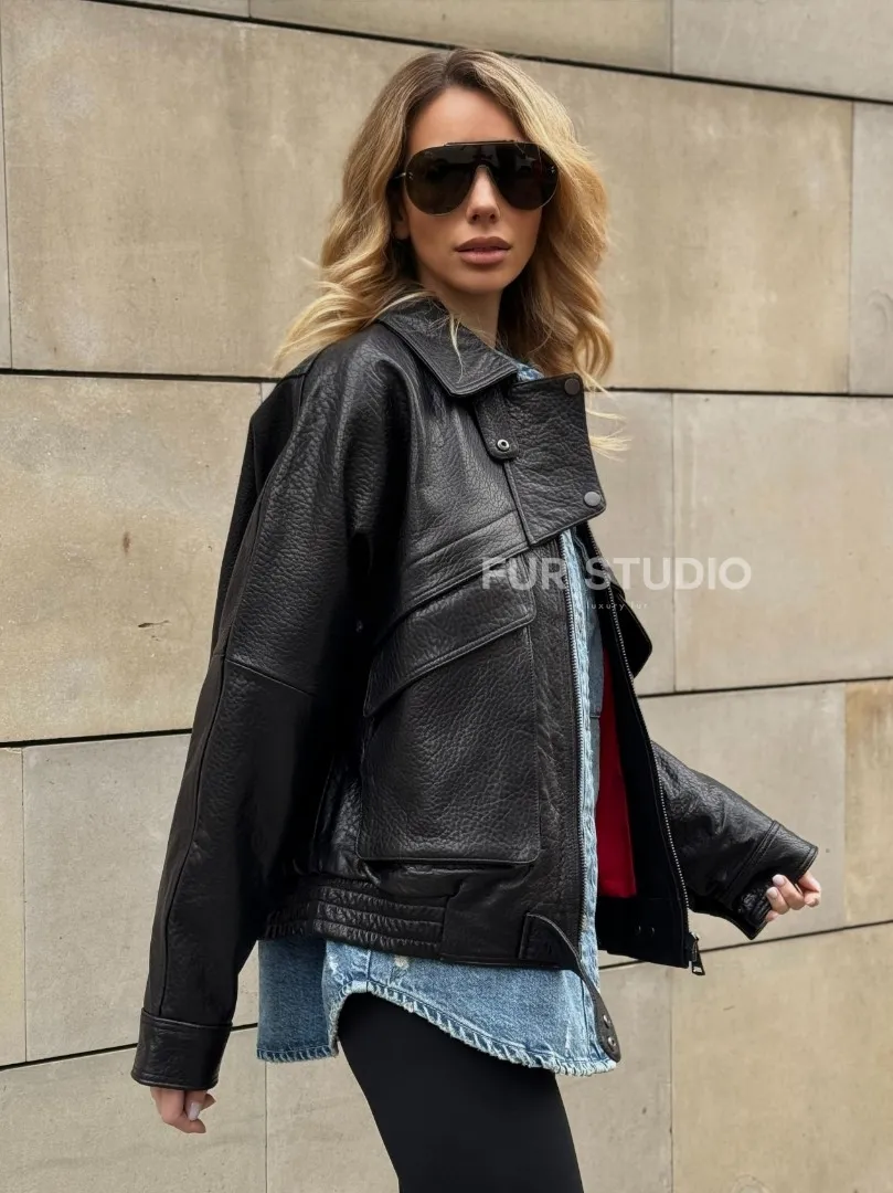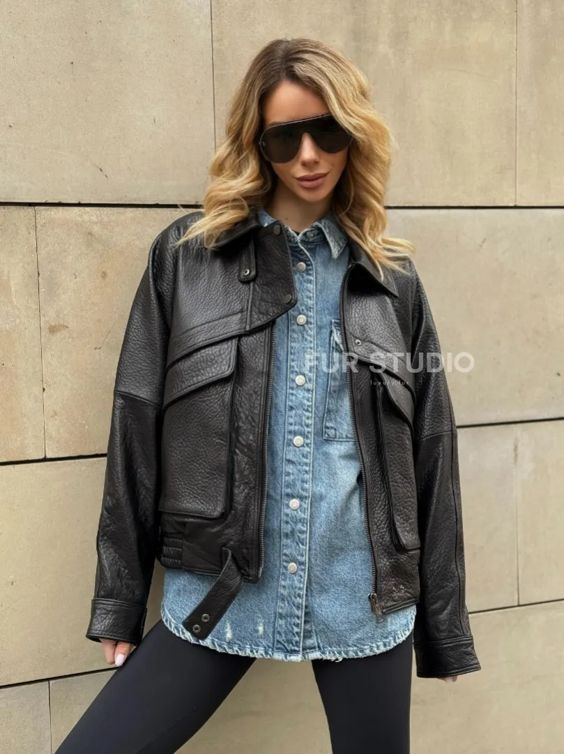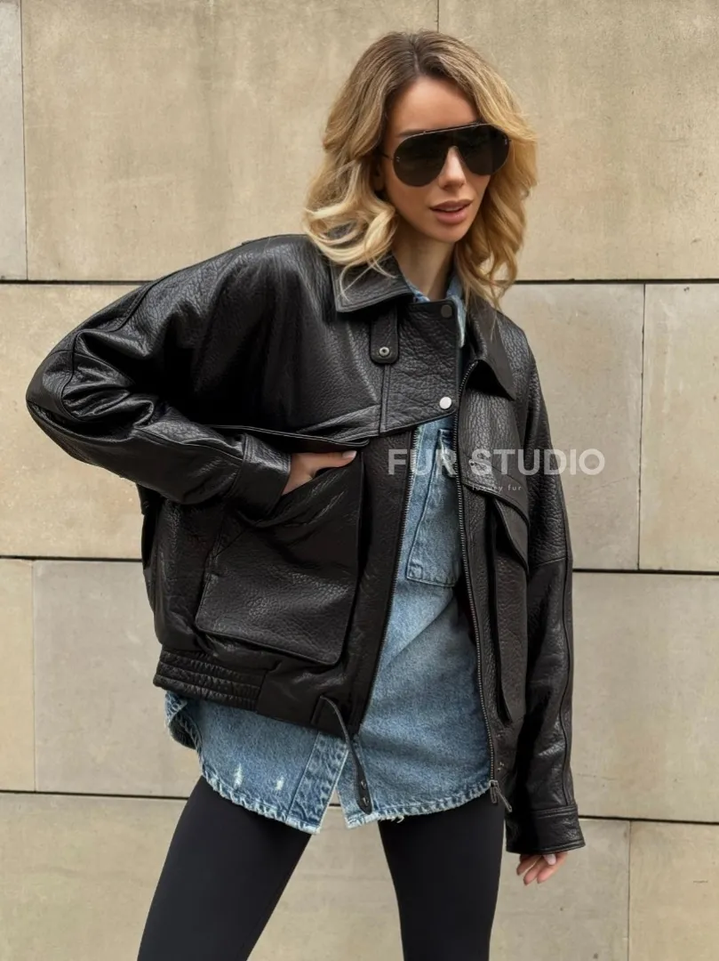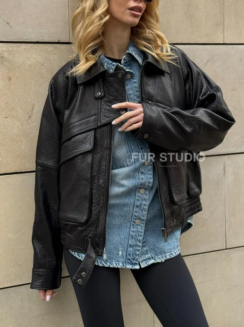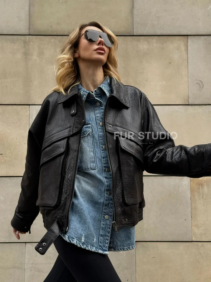 Восхититесь элегантностью и несравненным комфортом с нашей эксклюзивной коллекцией кожаных изделий. Изготовленная из первоклассной натуральной кожи, Трендовая куртка - бомбер oversize из натуральной кожи Joomba не только согреет вас в прохладные дни, но и подчеркнет ваш изысканный вкус. Уникальный дизайн и высокое качество делают наши представленные образцы идеальным выбором для утончённых образов.