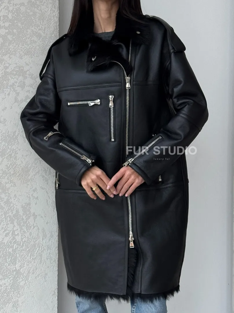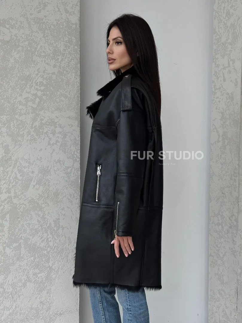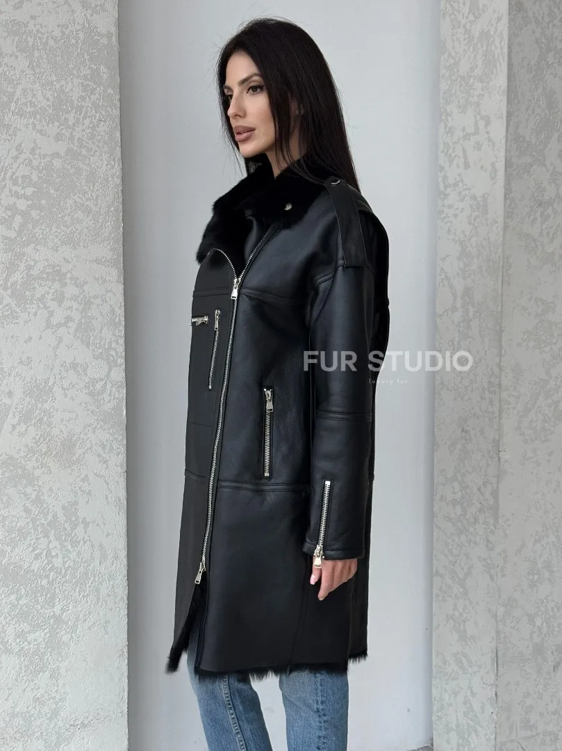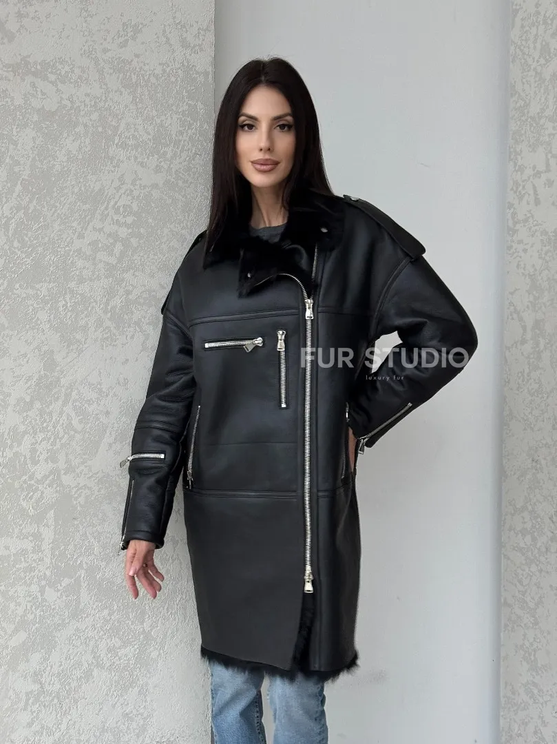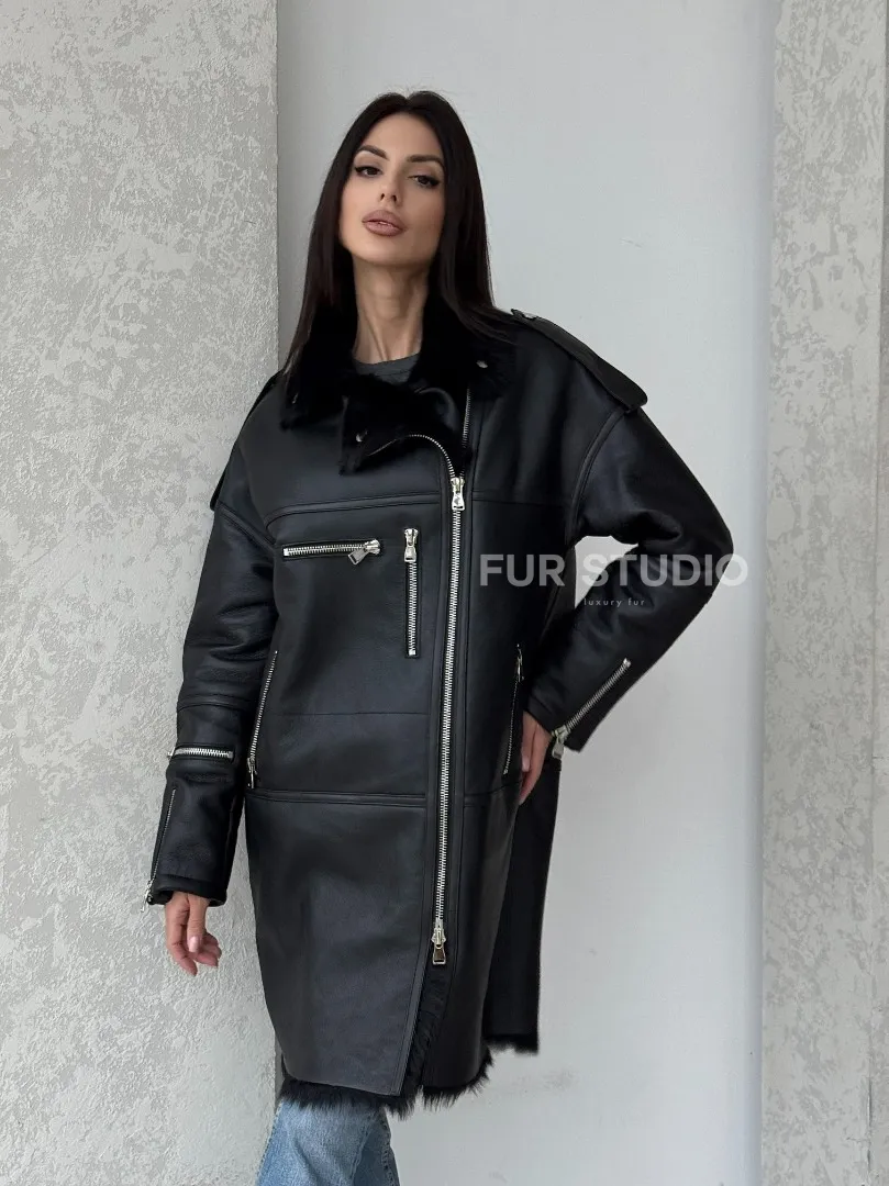 Кожаное изделие выглядит дерзко и экстравагантно. Стильные фермуары придают образу шарм и лаконичность. Несмотря на грубый стиль изделия, вы будете выглядеть женственно. Модель подходит для повседневной носки, но достойна и для вечернего выхода. Купить удлиненную дубленку - авиатор из натуральной овчины с мехом тосканы могут дамы, которые любят выглядеть дерзко и стильно вне зависимости от погоды.