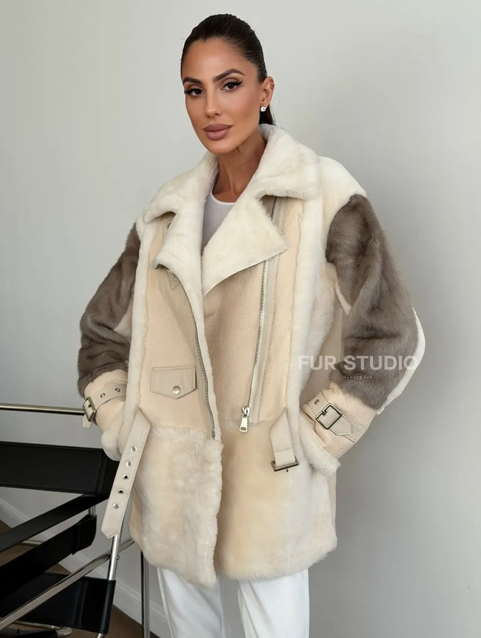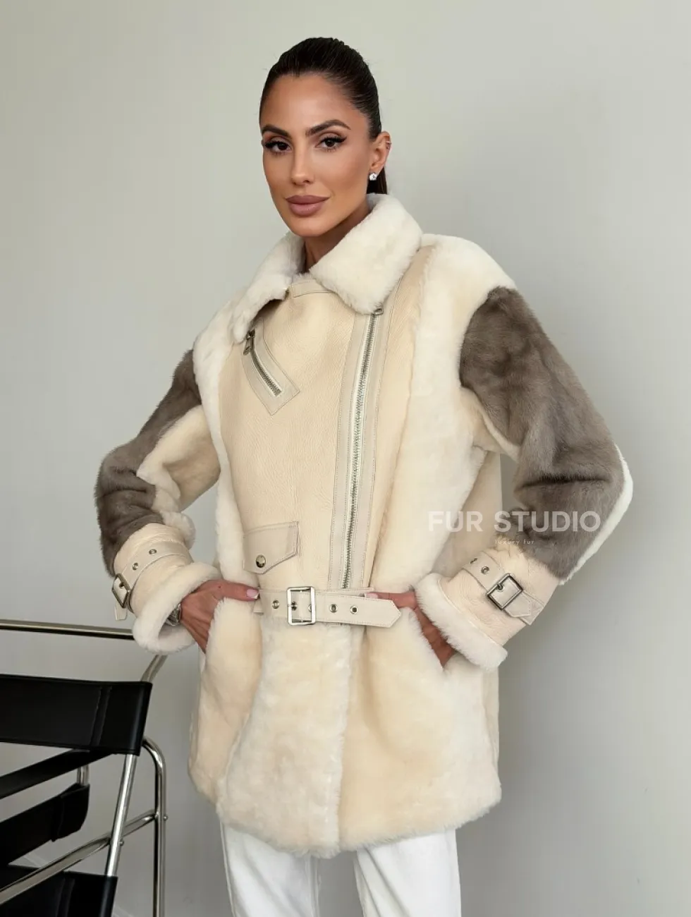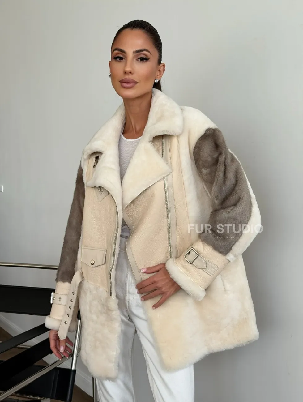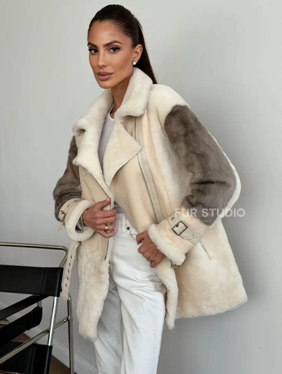 Удлиненная дубленка из натуральной овчины с рукавами из меха норки – молочный доступна для покупки в нашем шоуруме Furs Studio в Москве, а также предлагается удобная доставка во все города России. Обогатите свой гардероб этой дубленкой, которая прослужит вам многие годы, добавив немного роскоши в ваш повседневный образ.