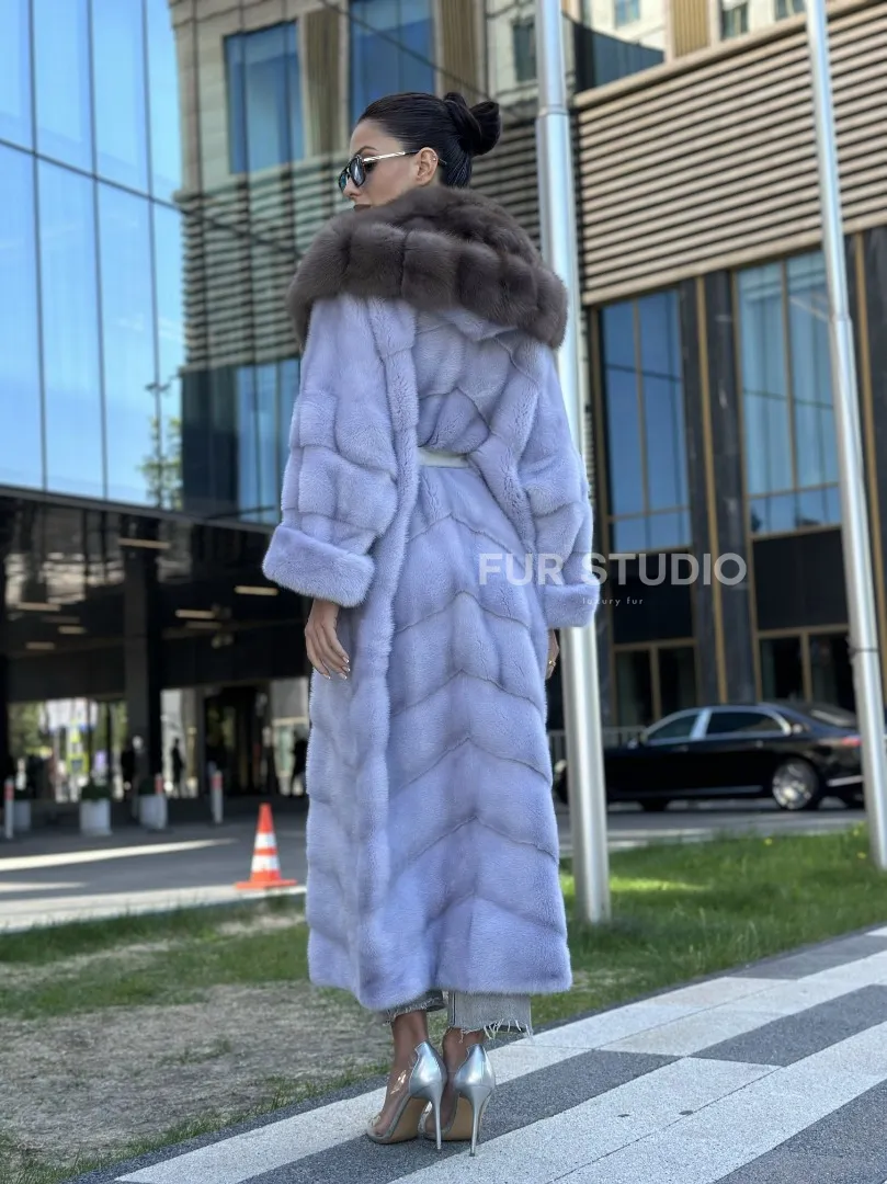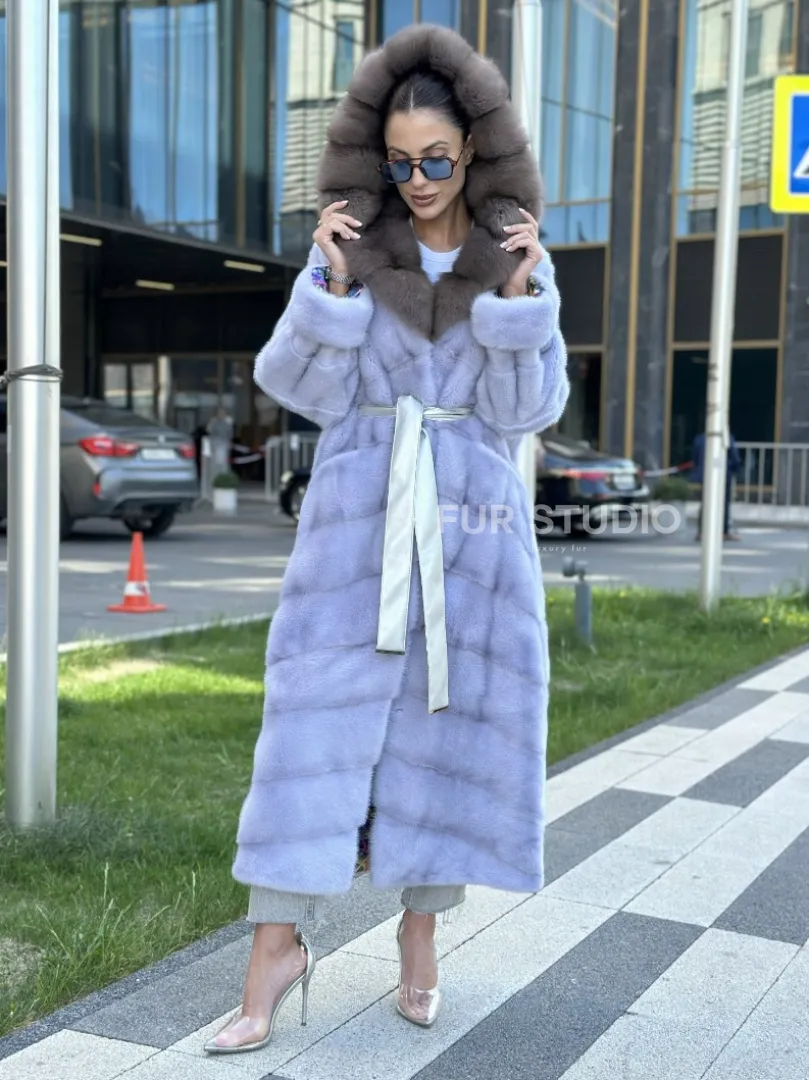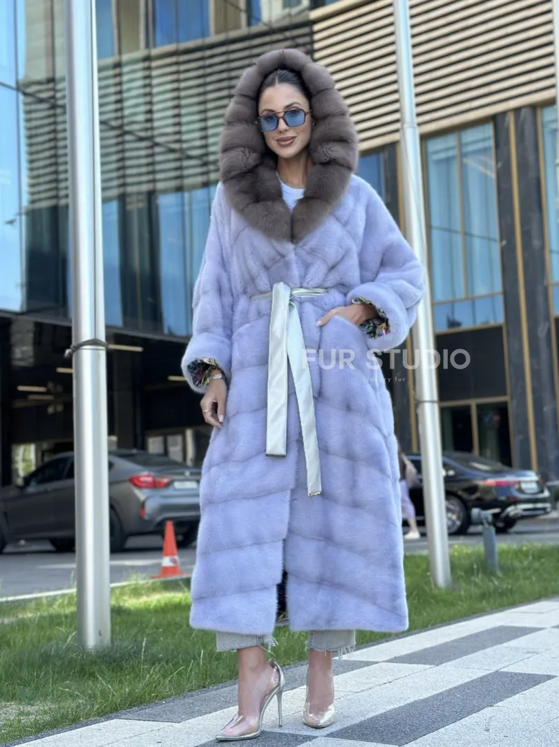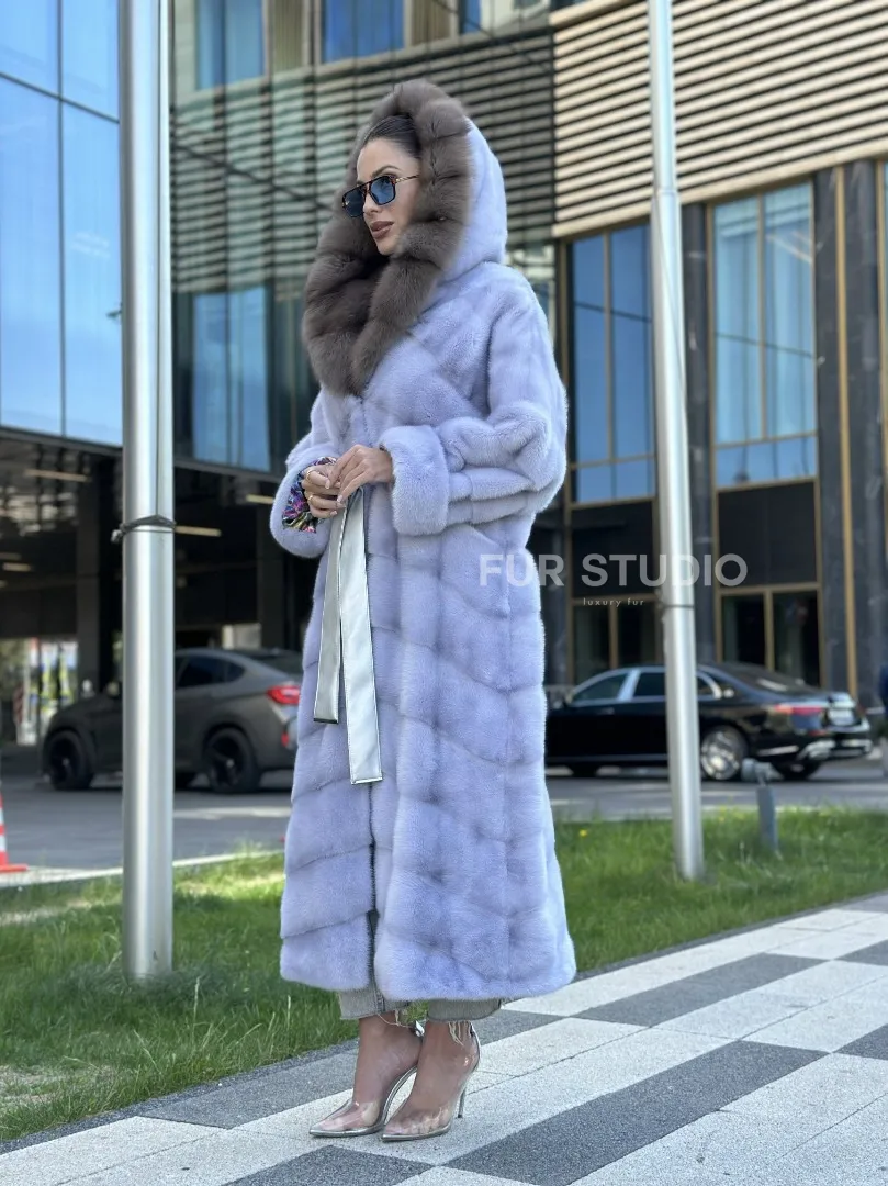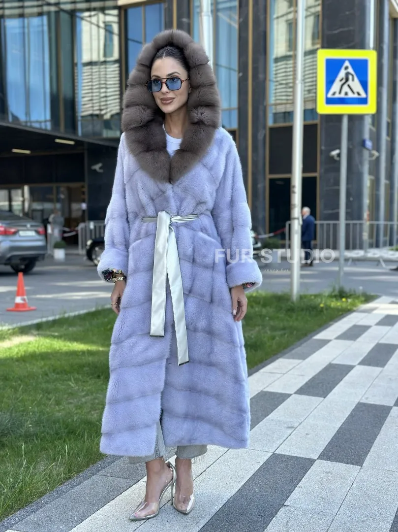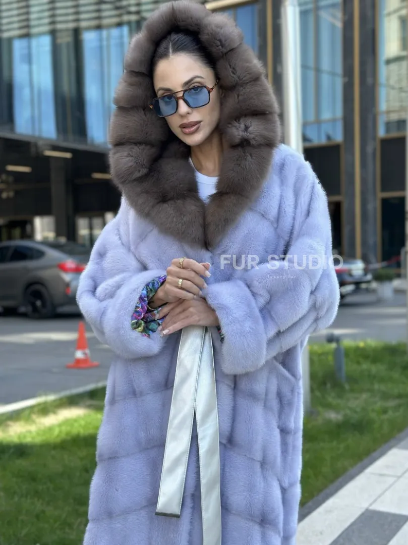 Изделие прекрасно гармонирует с любой одеждой: брюки, юбки и вечерний туалет. Необычный пояс подчеркнет изящную талию. Прямой крой зрительно увеличит рост и скроет недостатки фигуры. Добавьте в образ статусную сумочку, и вы будете выглядеть роскошно. Купить удлиненную норковую шубу с капюшоном из куницы могут девушки, которые любят экспериментировать и не боятся восхищения.