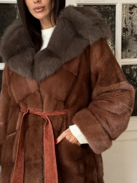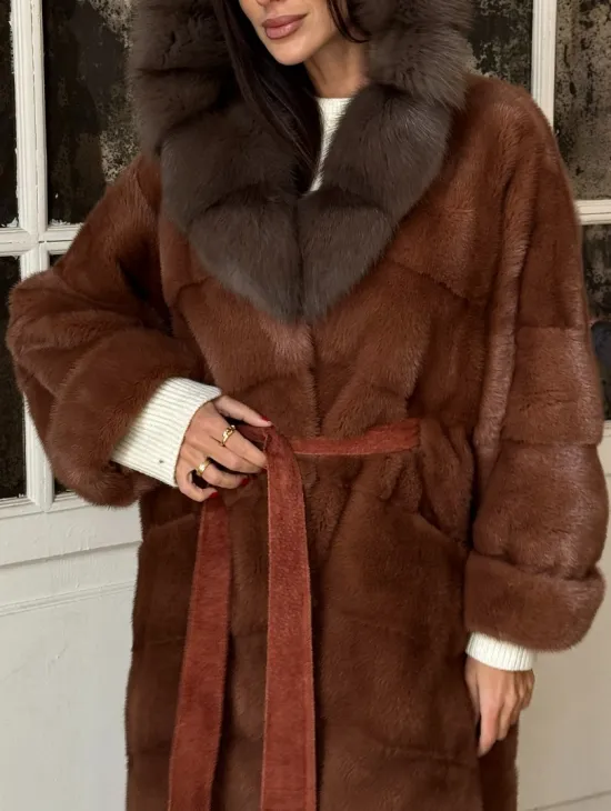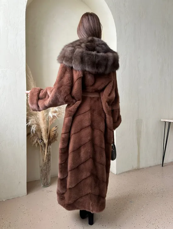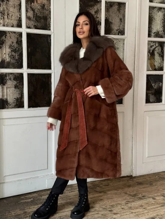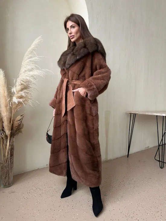 Удлиненная норковая шуба с воротником куница - цвет терракотовый доступна для покупки в нашем шоуруме Furs Studio в Москве. У нас так же есть доставка во все города России. Добавьте немного роскоши в свой гардероб с этой шубой, которая будет служить вам многие годы.
