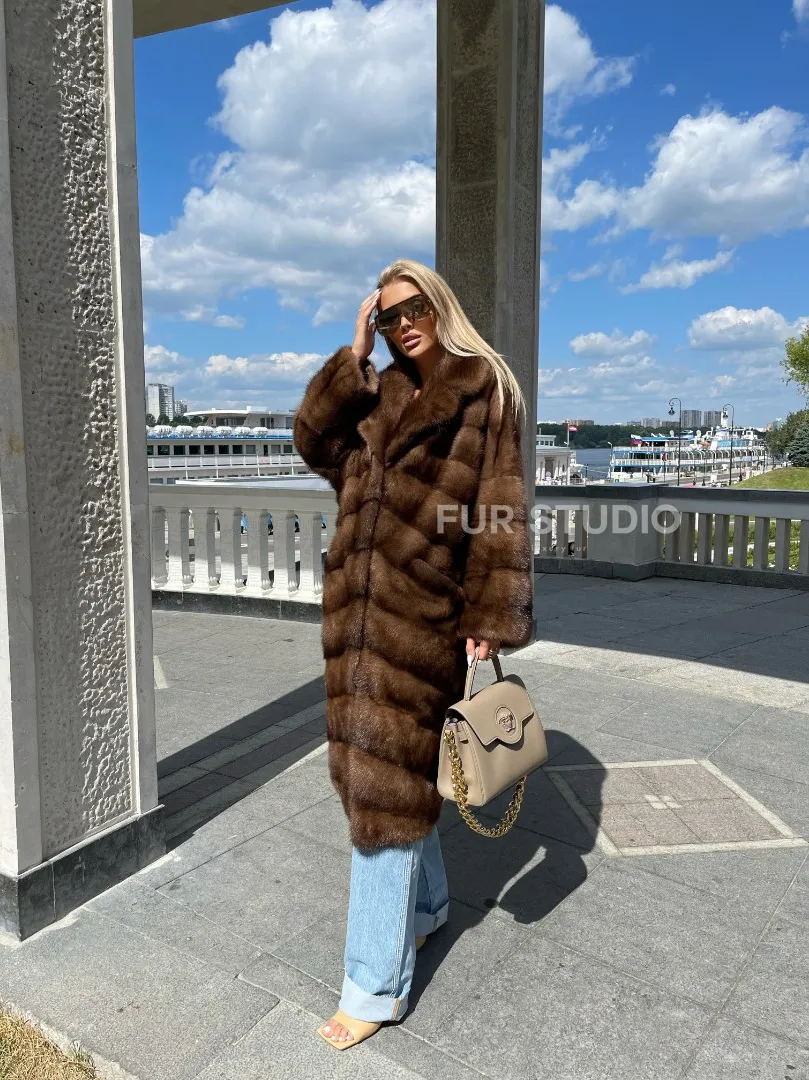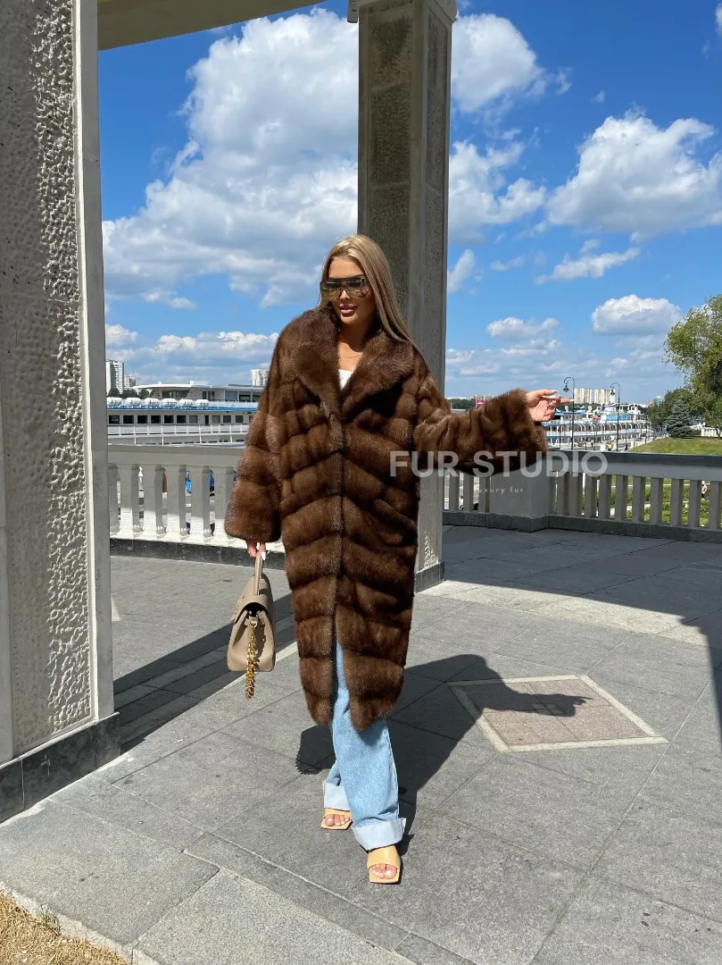 Модель гармонично сочетается с любым гардеробом от базового до вечерних туалетов. Длина изделия позволяет носить короткие вещи, что очень удобно в холодное время года. Прямой крой зрительно увеличит рост и скроет недостатки фигуры. Широкие рукава подчеркнут изящество кистей и не сковывают движение рук. Добавьте в образ статусную сумочку, и вы будете выглядеть дорого и изысканно. Купить удлиненную норковую шубу в цвете соболь могут женщины, которые знают толк в моде.