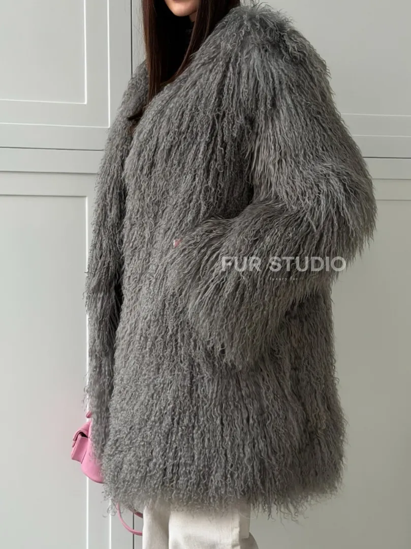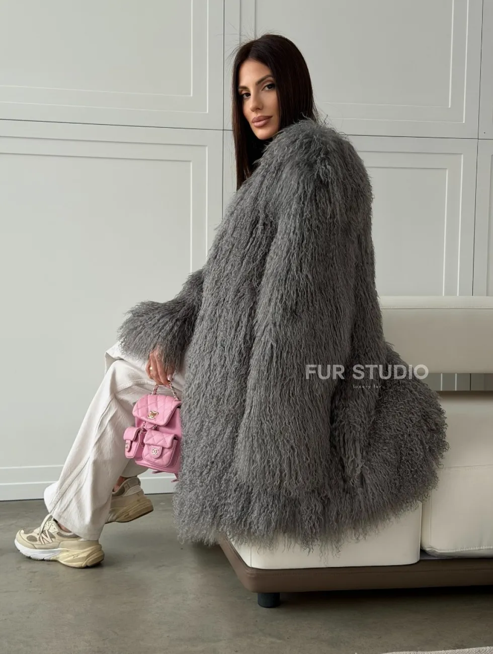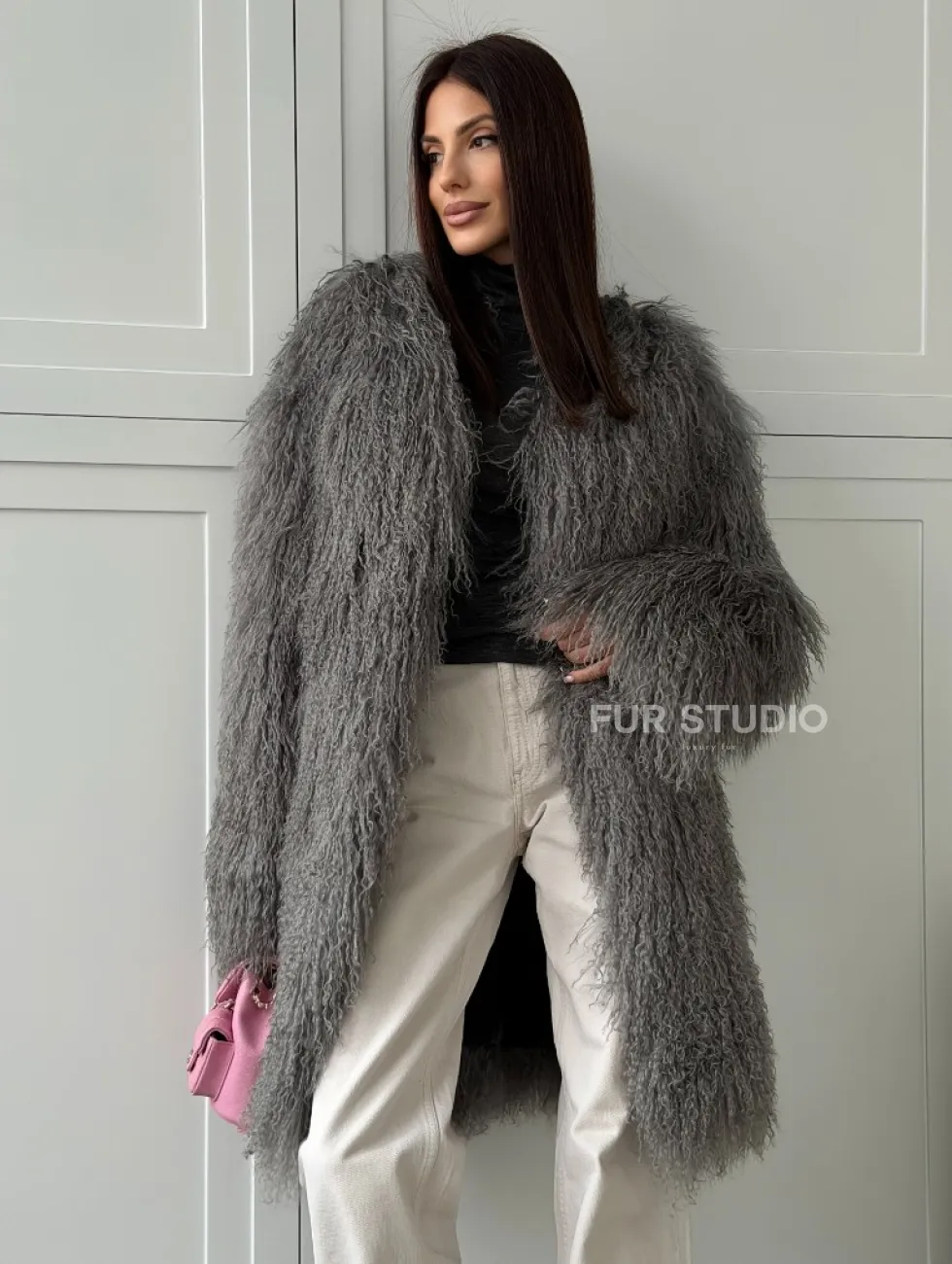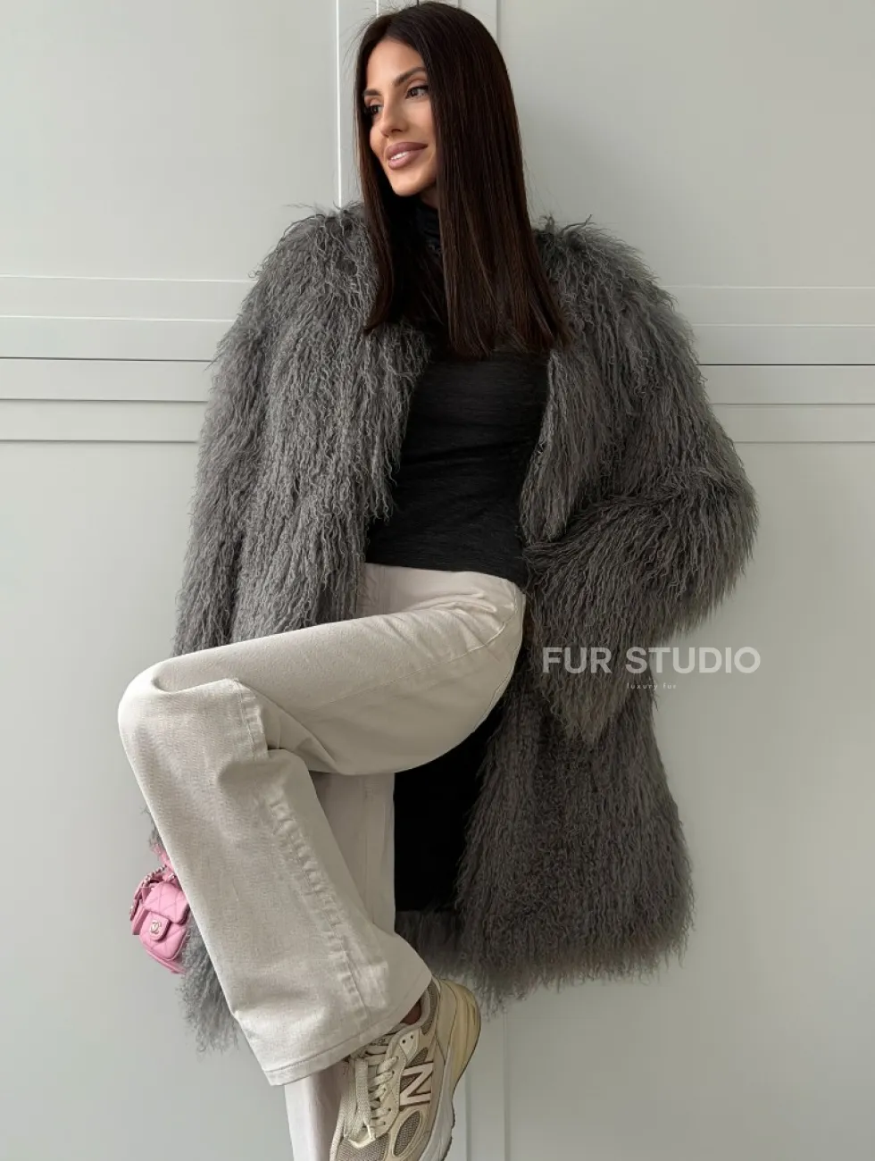 Удлиненная серая шуба из ламы доступна для покупки в нашем шоуруме Furs Studio в Москве. У нас так же есть доставка во все города России. Добавьте немного роскоши в свой гардероб с этой шубой, которая будет служить вам многие годы.