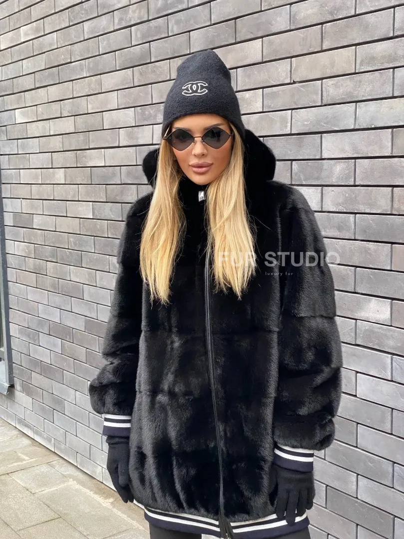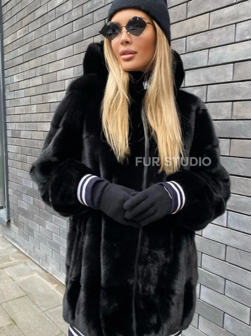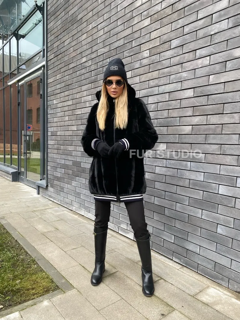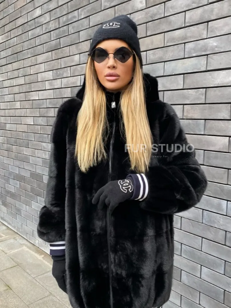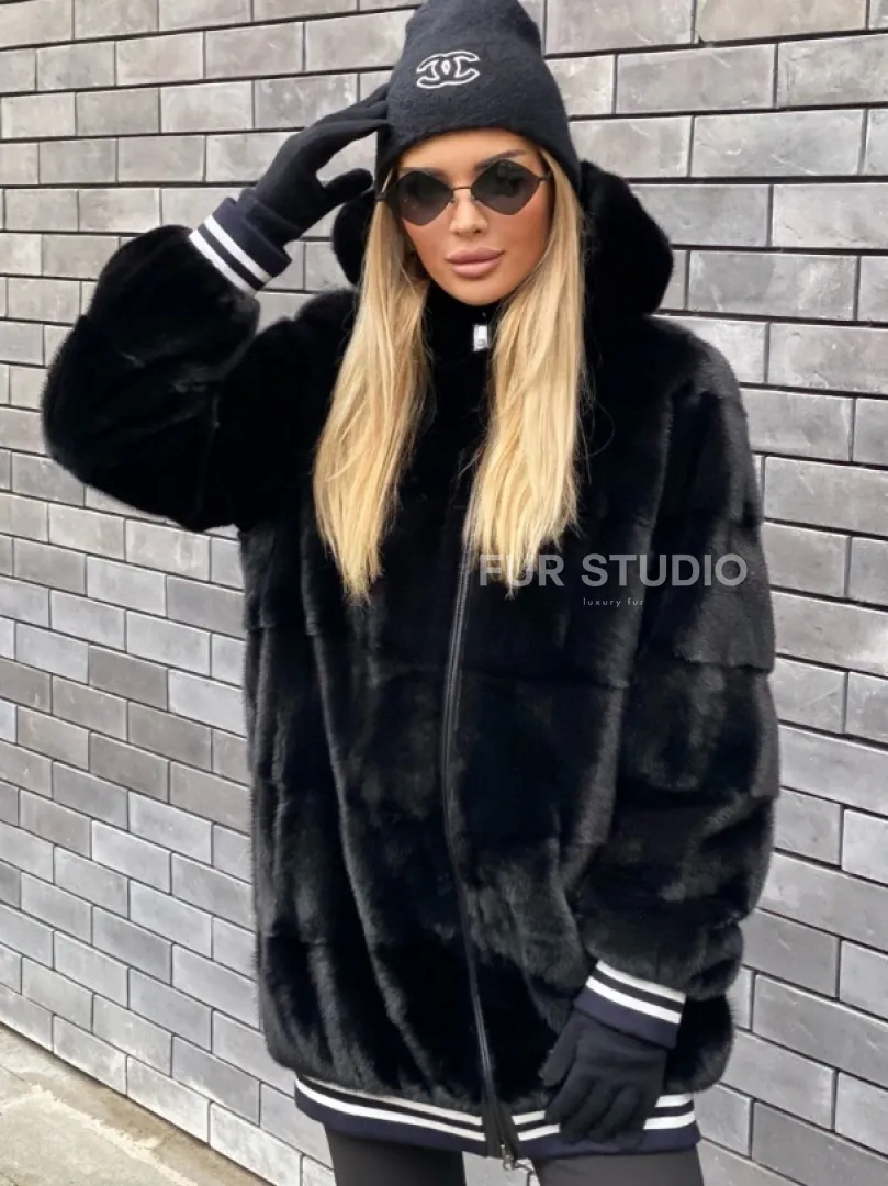 Вставки на манжетах акцентируют внимание на тонких запястьях. Модель прекрасно сочетается с базовым гардеробом, подойдет под брюки и леггинсы. Добавьте к образу стильный рюкзак и оригинальную обувь - вы будете выглядеть, как с обложки журнала. Купить удлиненный бомбер из меха скандинавской норки с капюшоном на молнии могут женщины, которые любят комфорт, при этом хотят выглядеть стильно и со вкусом.