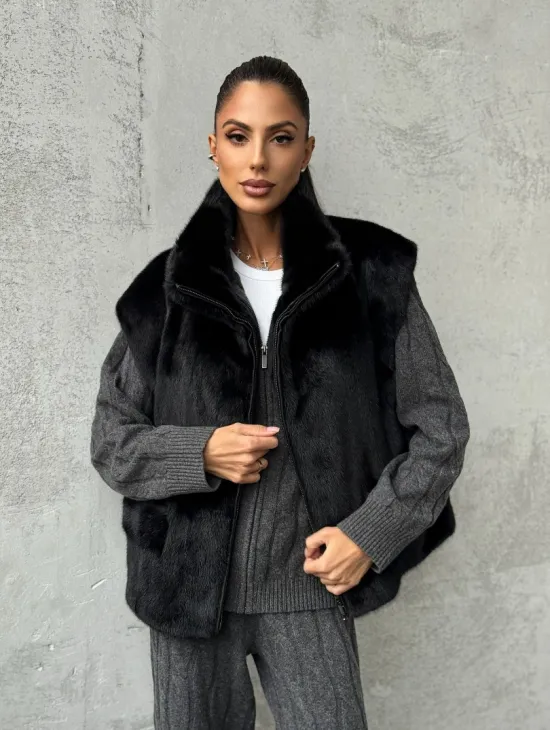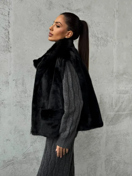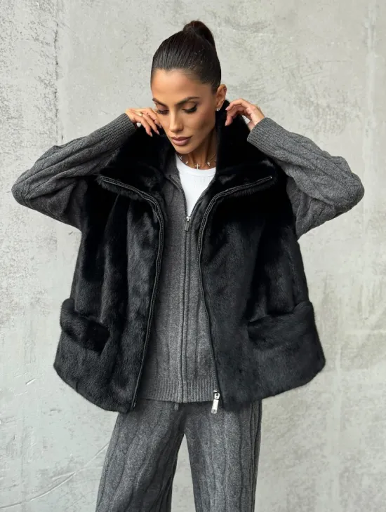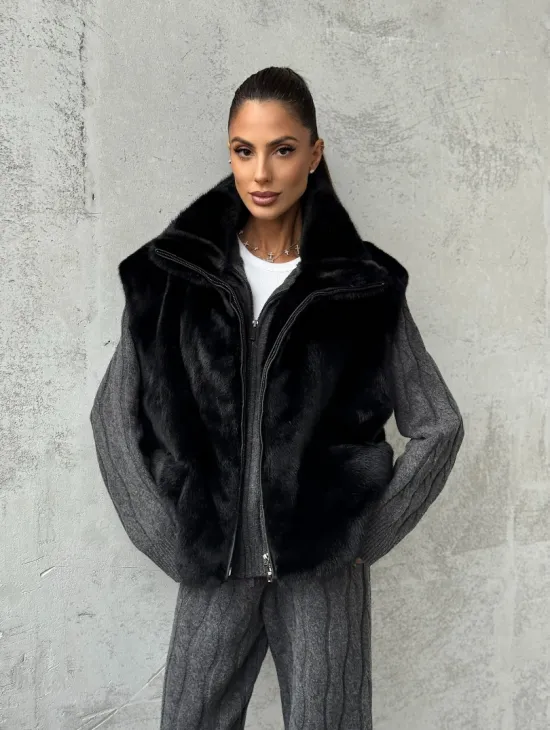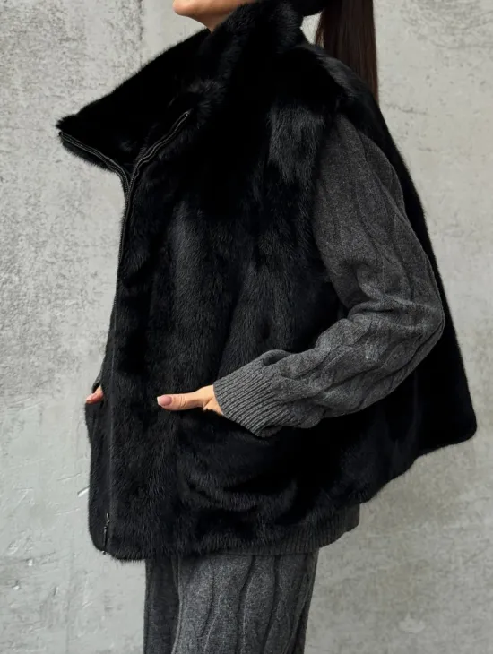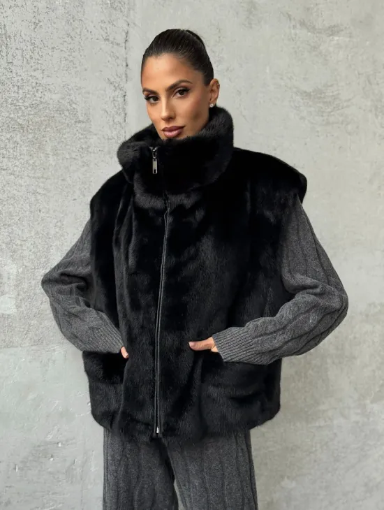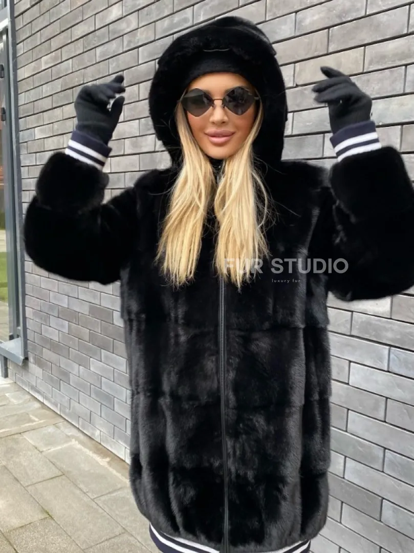Удлиненный бомбер из меха скандинавской норки с капюшоном на молнии – выбор девушек с изысканным вкусом. Свободный крой удлиняет силуэт и скроет недостатки фигуры. Нежный мех скандинавской норки бережно согреет владелицу в лютые морозы. Шикарный капюшон позаботится о прическе в ветреную погоду.