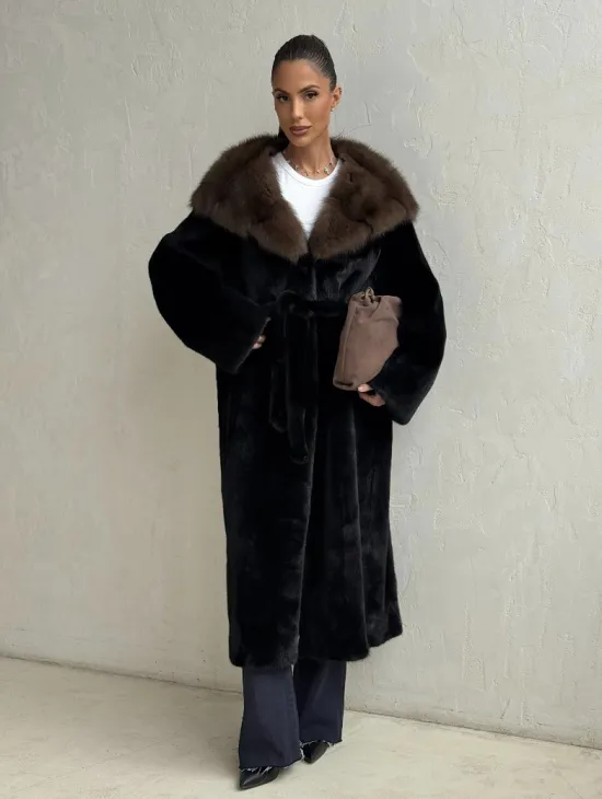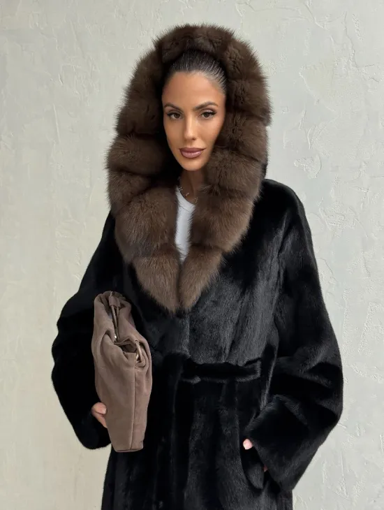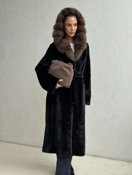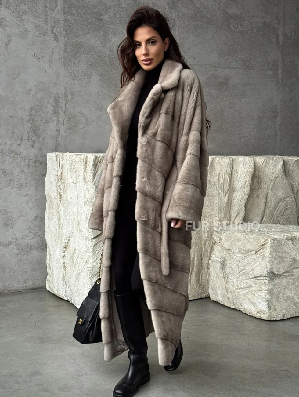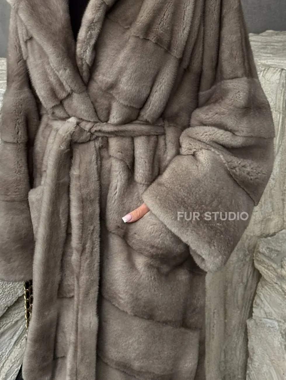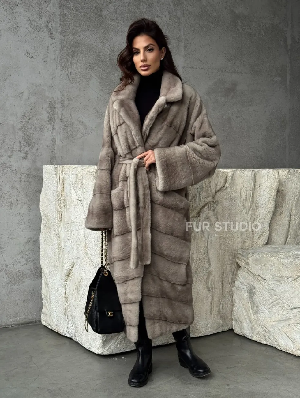 Удлинённая норковая шуба с поясом доступна для покупки в нашем шоуруме Furs Studio в Москве. У нас так же есть доставка во все города России. Добавьте немного роскоши в свой гардероб с этой шубой, которая будет служить вам многие годы.