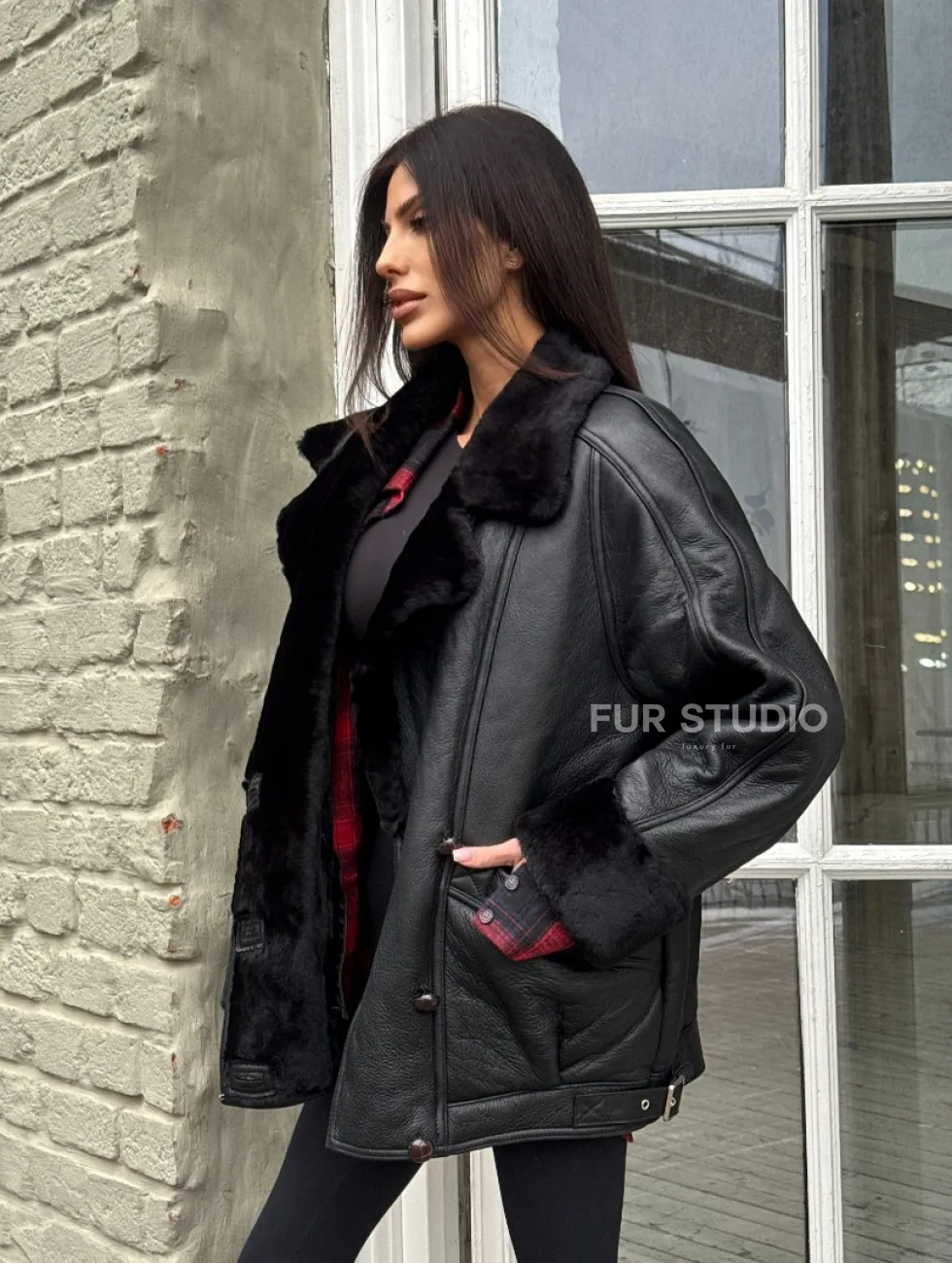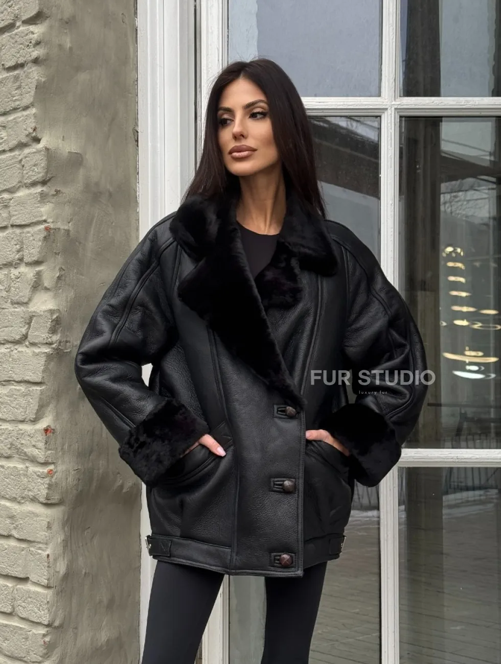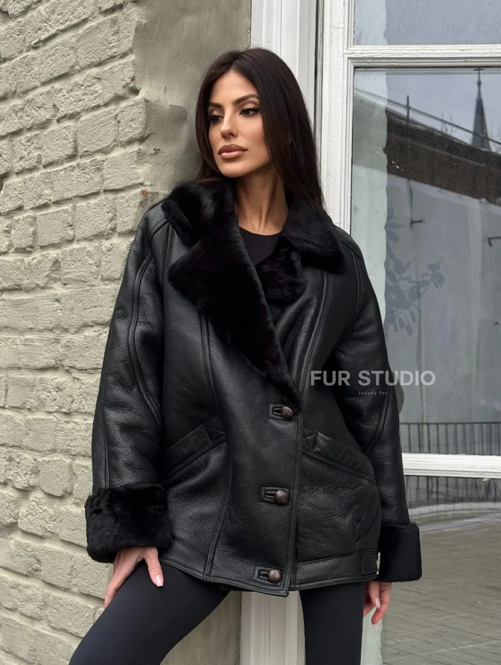 Винтажная куртка - дубленка «Total Black» с английским воротником на пуговицах доступна для покупки в нашем шоуруме Furs Studio в Москве, а также предлагается удобная доставка во все города России. Обогатите свой гардероб этой дубленкой, которая прослужит вам многие годы, добавив немного роскоши в ваш повседневный образ.
